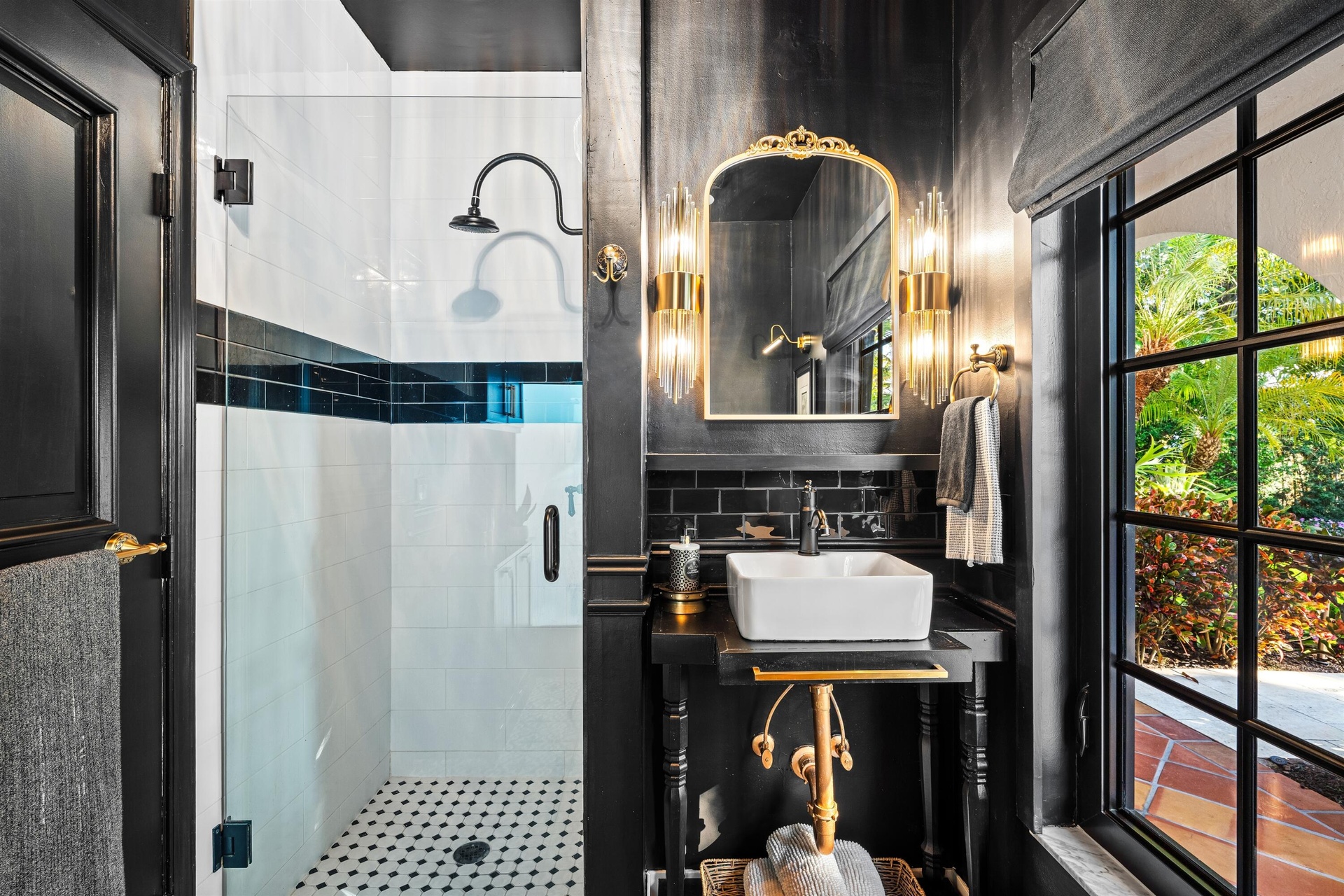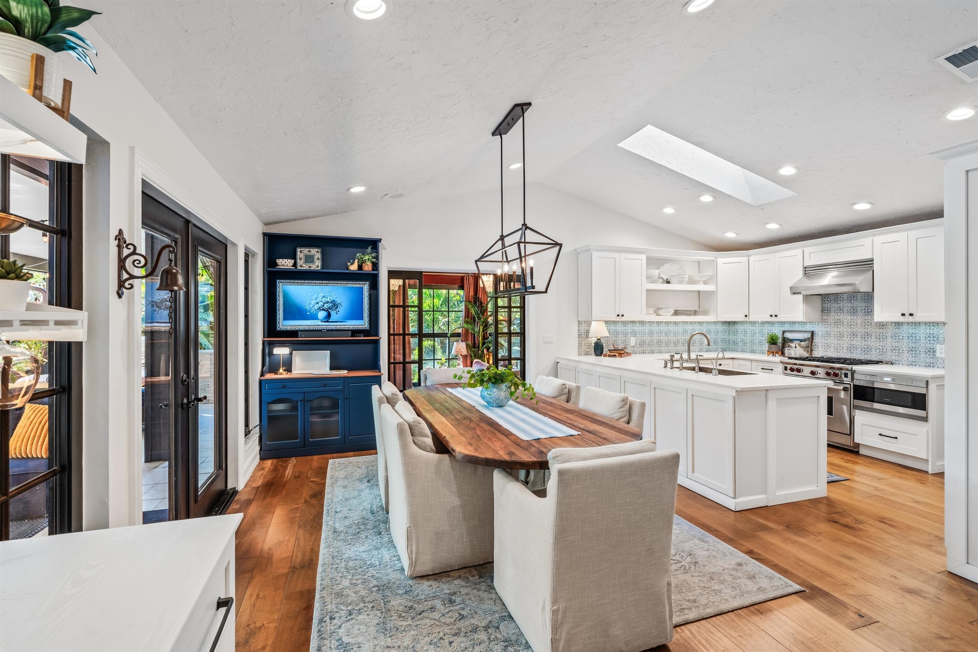 Brimming with curb appeal, a 'storybook' gate leads through high hedges to the beautifully landscaped front yard with up-lighted swaying palms, mango trees and flowering pocket gardens. The hedged frontyard, a mini resort, features a new summer kitchen with a barbecue and a new loggia that flows out to the new pool with an overflow spa.