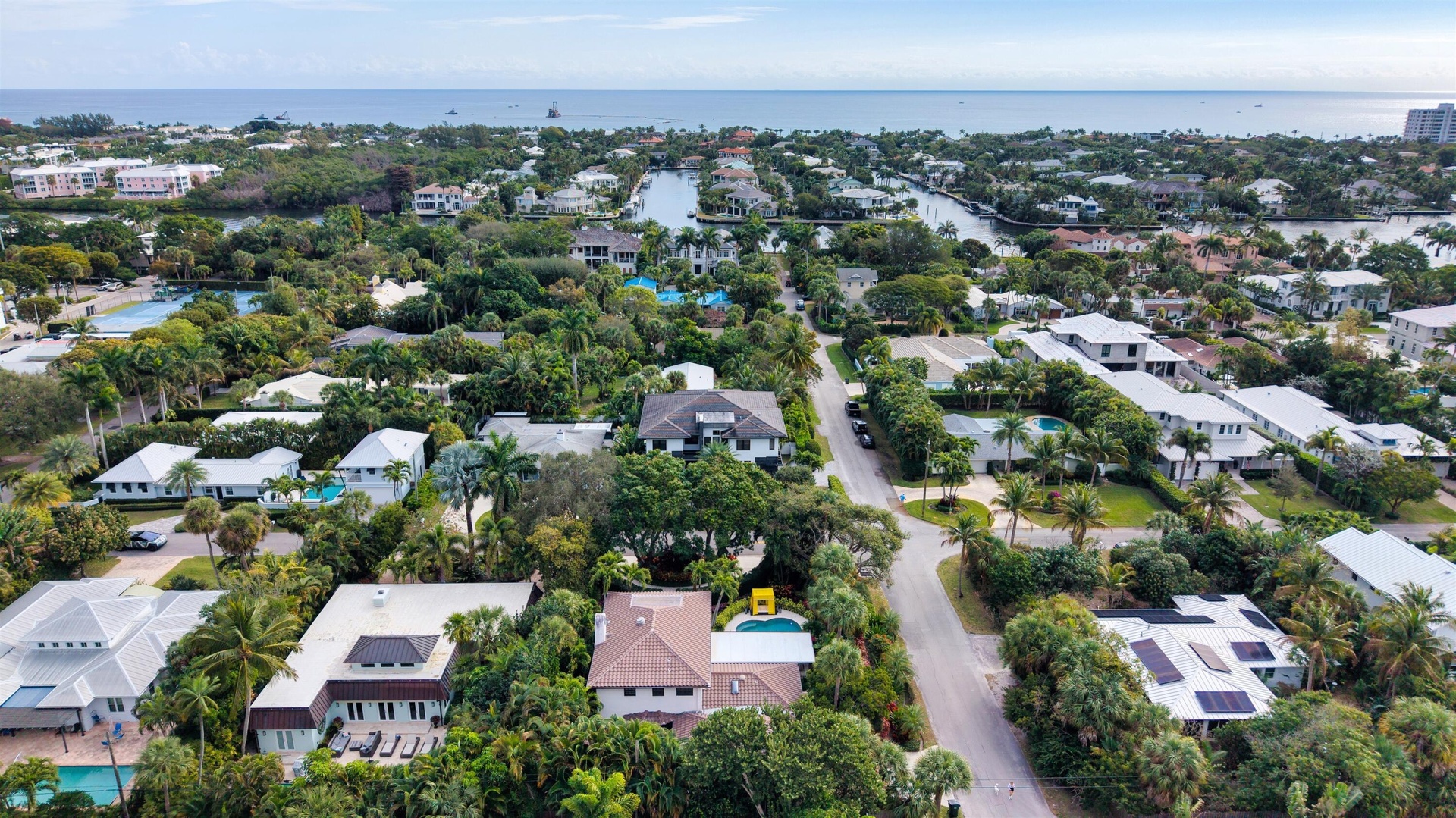 Private, warm and cozy, this elegant villa, set amid mature trees and lush gardens, emanates a European ambience that is ultra-elegant, sumptuous and commodious. Highlights include a foyer with a built-in bench, a ribbon gas fireplace, attractive custom built-in cabinetry, a bar with a wine fridge, wide-plank flooring, bespoke wall coverings, and French doors throughout that reveal garden views. 504 NE 8th Avenue, Delray Beach, Florida: The desirable Palm Trail neighborhood is perfectly located just minutes from Delray Beach's award-winning sugar-sand beaches and vibrant Atlantic Avenue's boutique shopping, dining and nightlife venues.