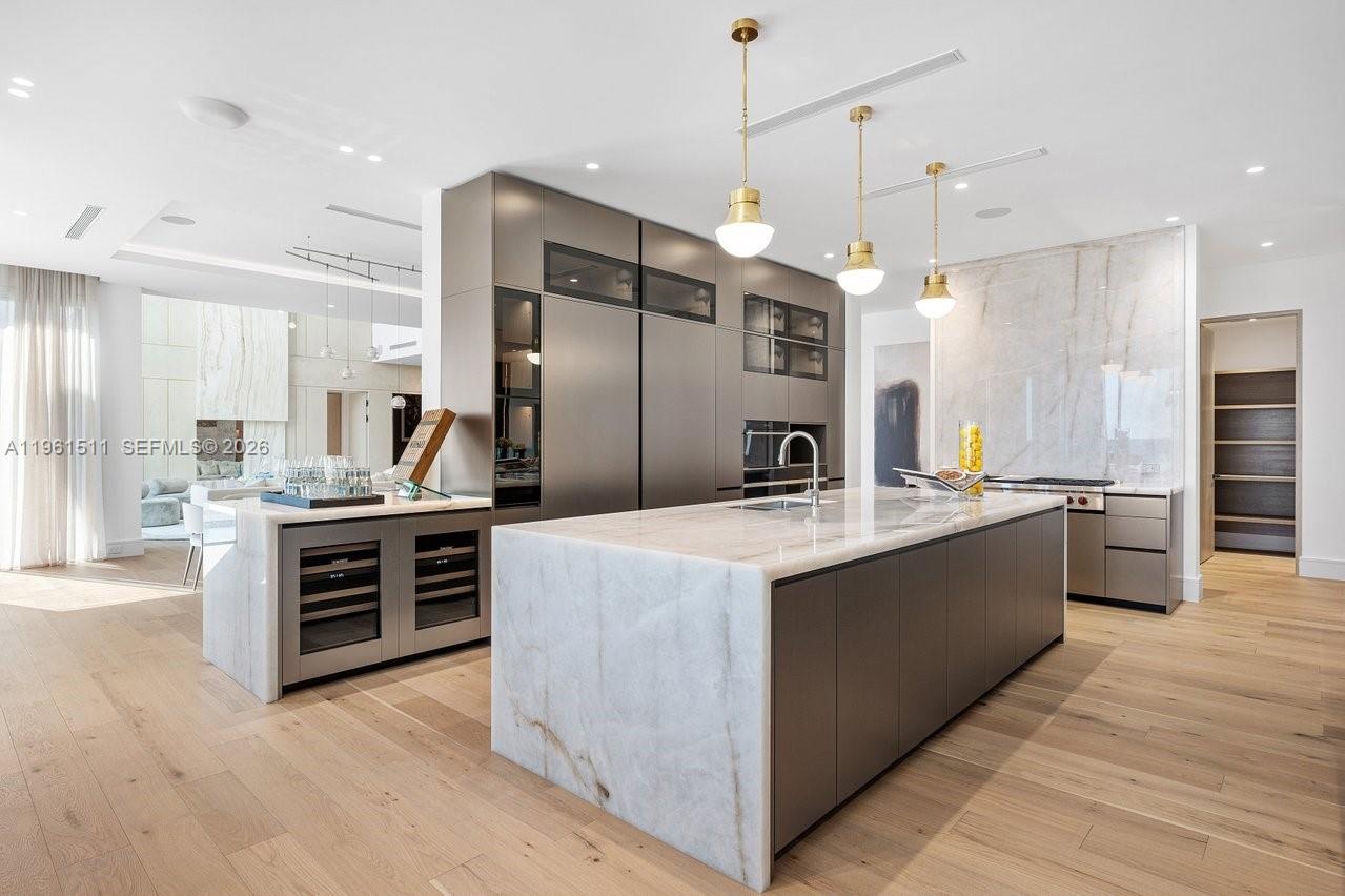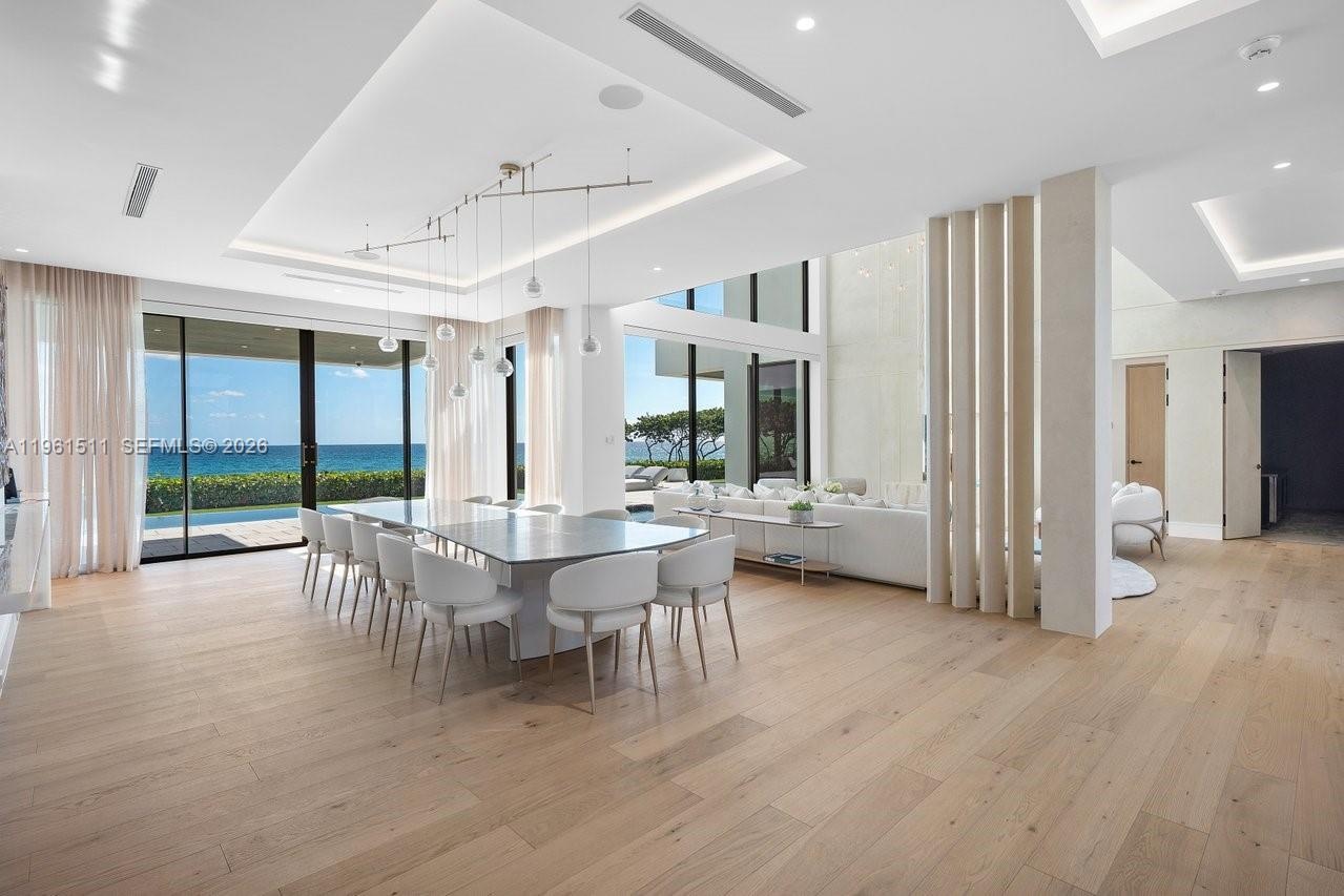 The newly upgraded 10,101 sqft residence reflects uncompromising attention to detail, elevating beachfront living to an exceptional standard. Spanning three curated levels, the home blends timeless elegance & modern craftsmanship. Seven expansive ensuite bedrooms and eight-and-a-half baths showcase refined finishes, including two exceptional primary suites, one a grand retreat with spa-inspired his-and-hers baths & oversized walk-in closets, along with onyx-clad fireplaces, a Crystallo marble powder room, TOTO Neorest suites, dual laundry rooms, & walls of glass framing uninterrupted Atlantic views.