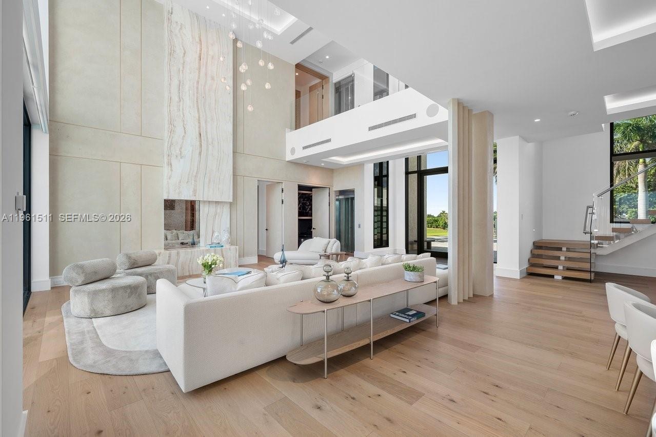 Positioned 16 ft above sea level, the estate pairs architectural beauty with lasting strength. Manicured grounds lead to a resort-style pool and spa, private beach path, & new seawall and dock, providing seamless access to both ocean and protected waterways. Interior amenities include a state-of-the-art theater & an eight-car showroom garage.