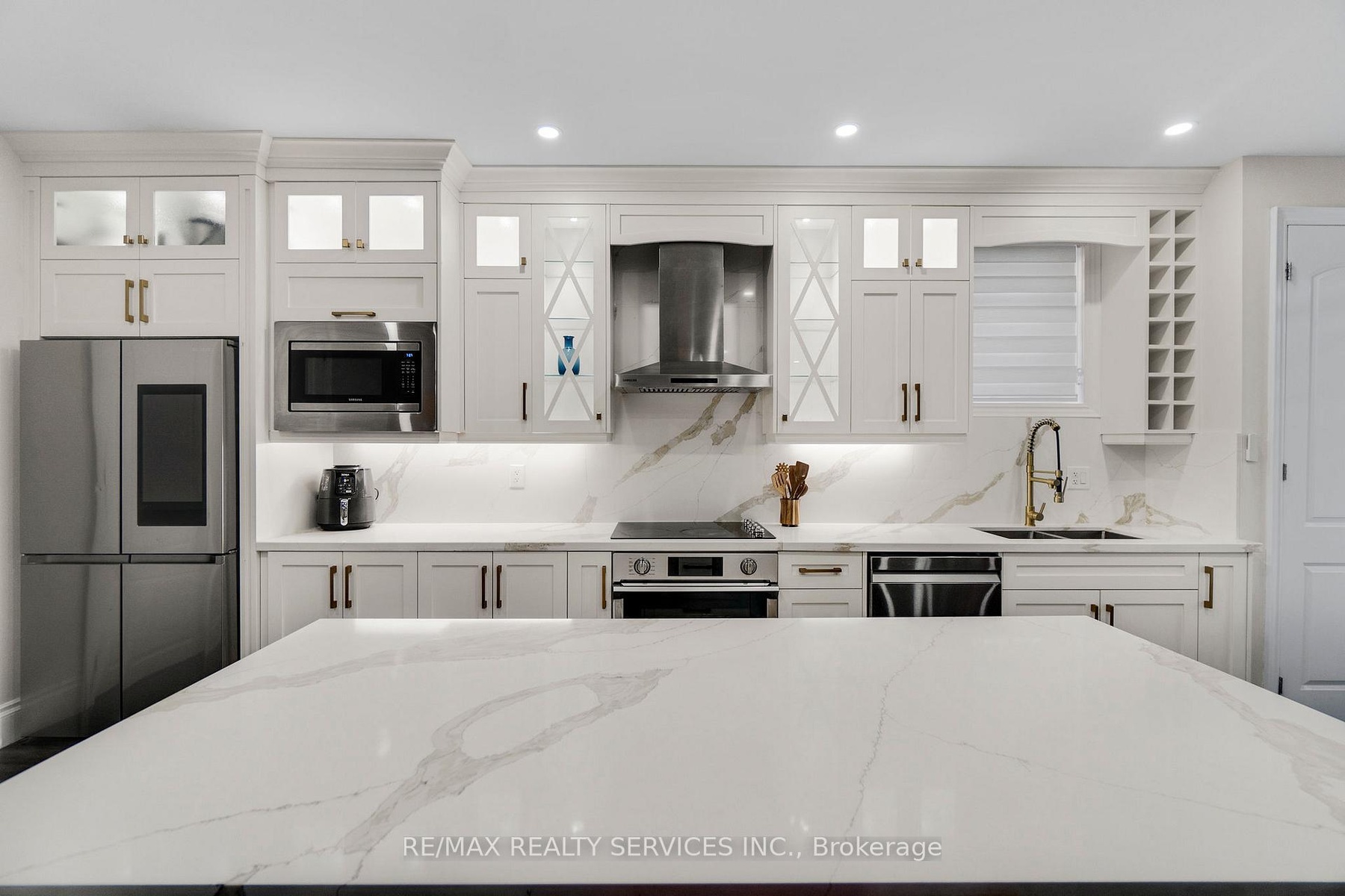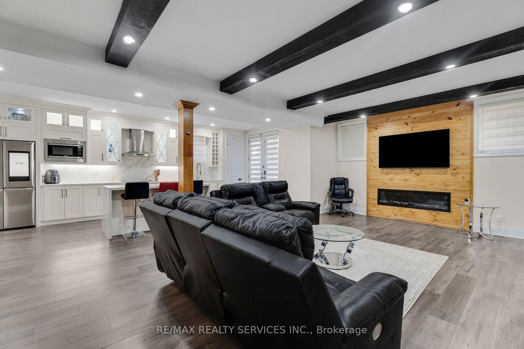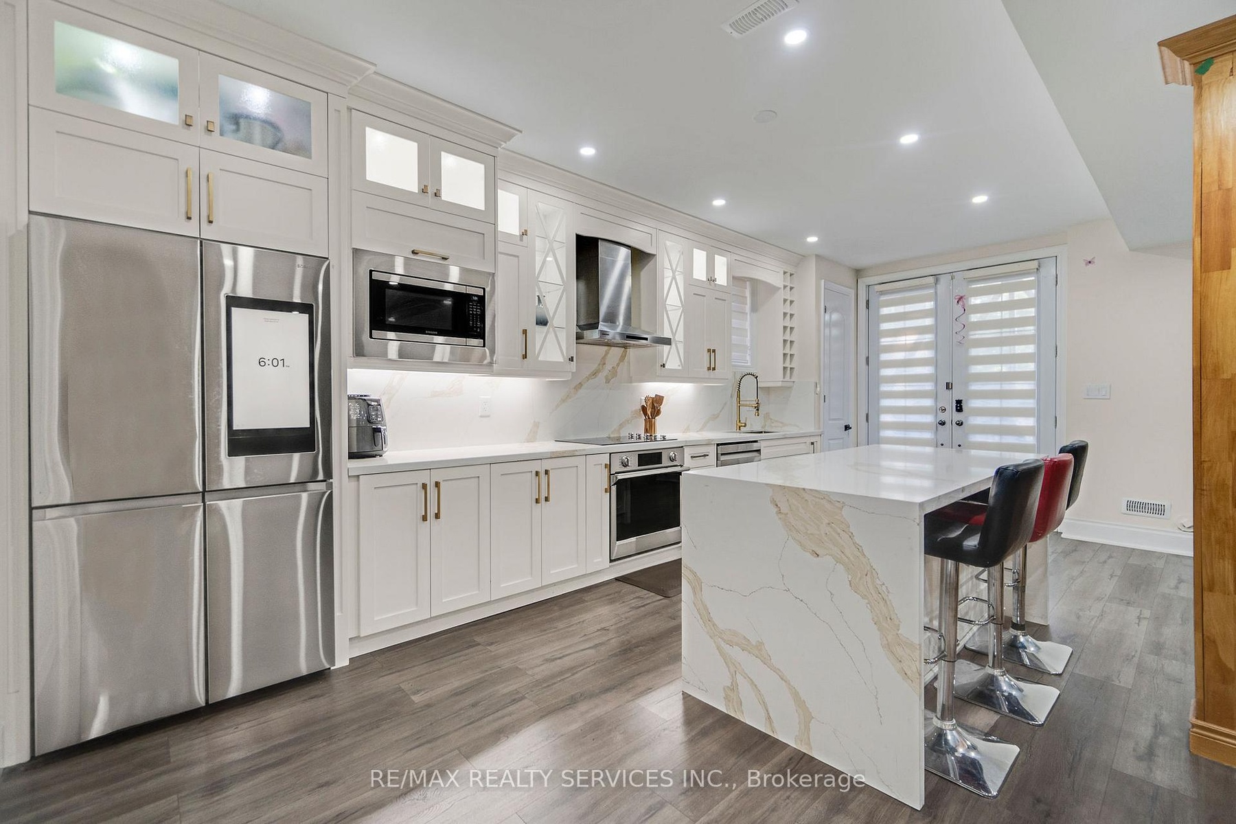 Welcome to this beautifully finished 2 bed, 1 bath basement apartment at 66 Hanbury in Brampton. Featuring a stunning custom kitchen with white cabinetry, quartz counters with a waterfall edge, stylish backsplash, stainless steel appliances, built-in microwave, and a large centre island with seating. The open layout is complemented by custom window coverings and tasteful furnishings, offering both comfort and style. Enjoy the convenience of ensuite laundry and one parking space included. Fully furnished, this home is perfect for those seeking a modern living space in a great location.