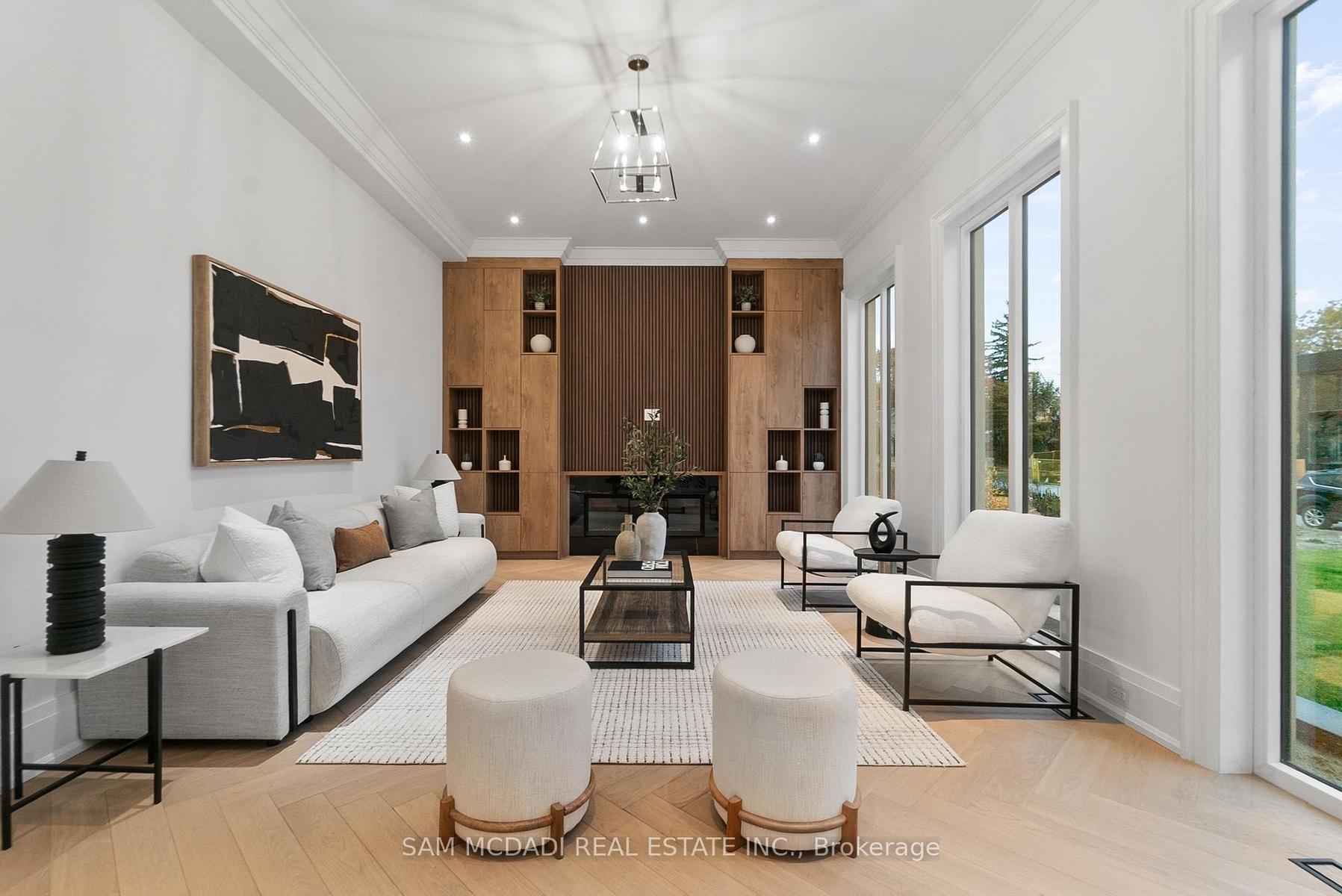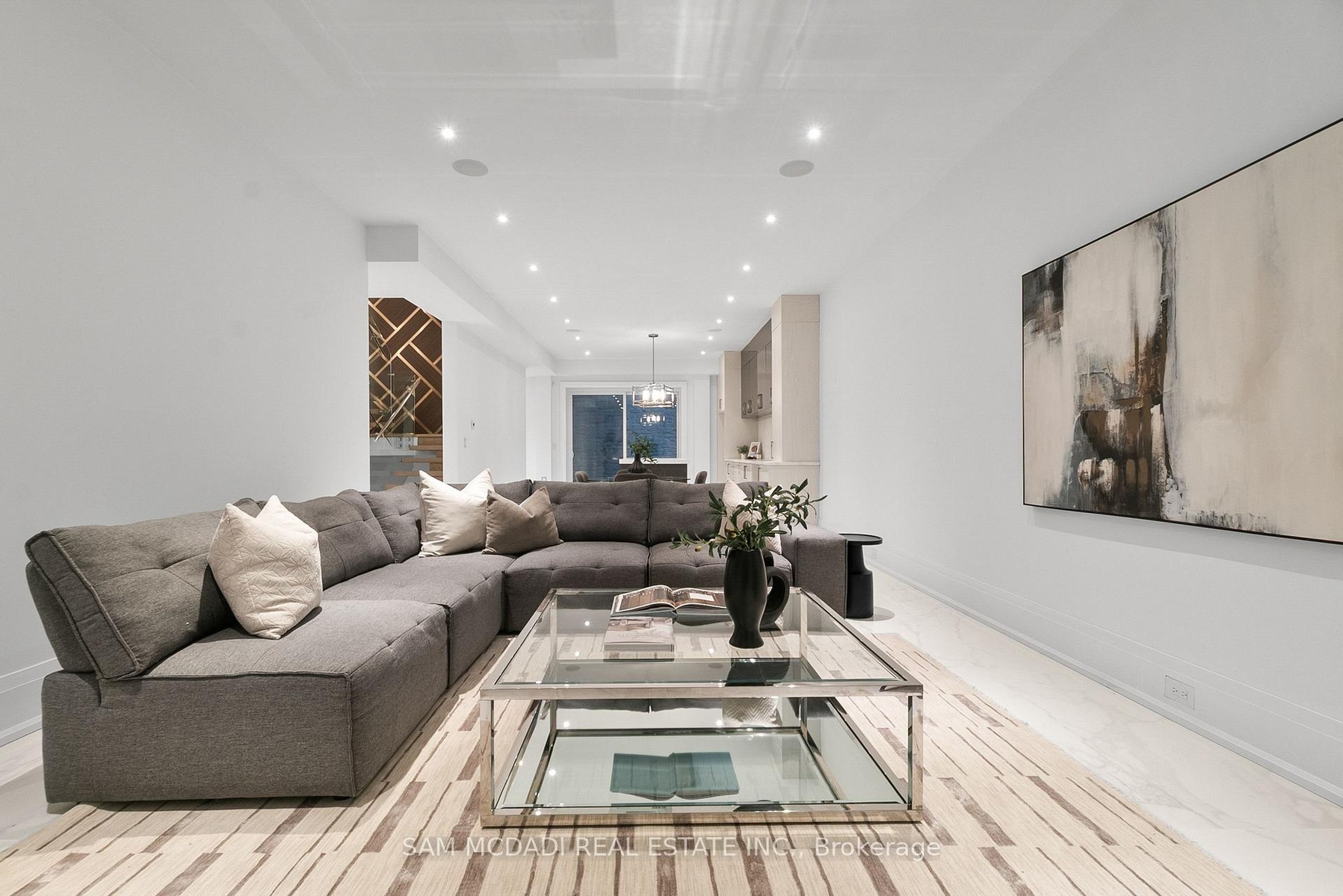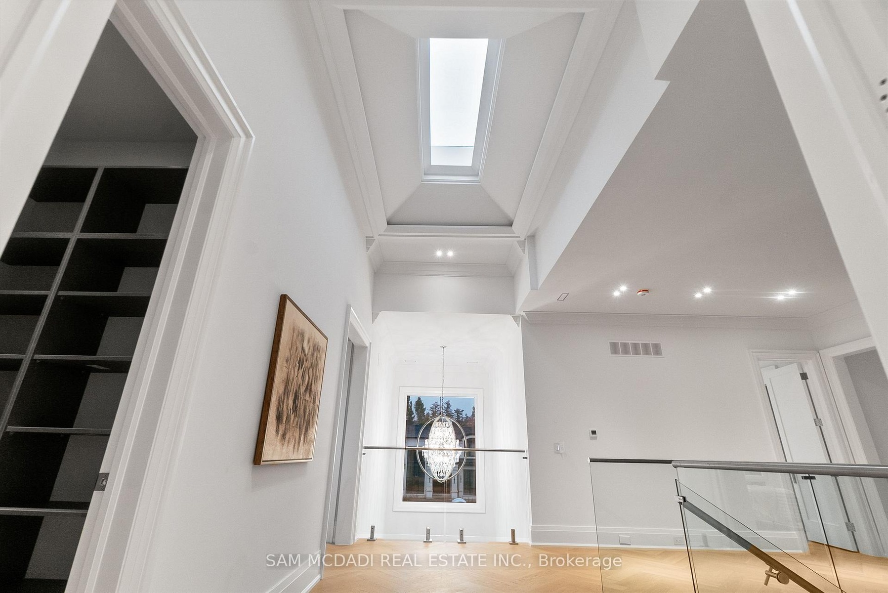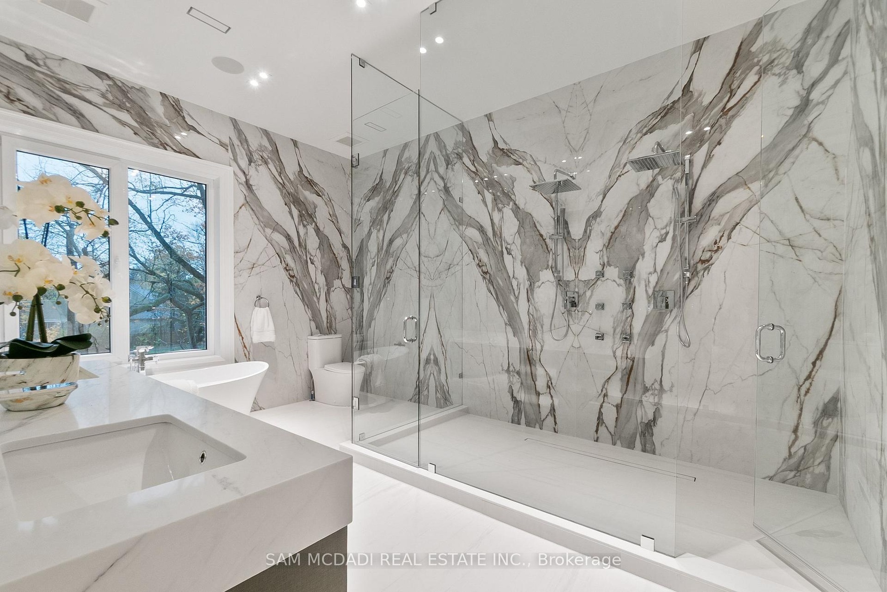 Set within one of Oakville's most distinguished enclaves, 84 Pebbleridge Place is a newly built modern estate that epitomizes architectural artistry and offers over 7,000 SF of refined living space. Poised on a private lot, this residence showcases a brick and limestone exterior, full-height glass walls a curated palette of luxurious finishes for the most discerning buyer. A grand double-height foyer introduces the home w/ polished marble-style porcelain and bespoke detailing. Beyond, herringbone hardwood floors flow through expansive principal rooms to a family room defined by a sleek wood feature wall, gas fireplace, and integrated Control4 automation for effortless entertaining. The designer kitchen is both statement and function, featuring an oversized island, full-height custom cabinetry, and Calacatta-style quartz counters w/ a custom backsplash. It opens directly to a covered deck w/ a gas fireplace, perfect for al fresco dining and evenings. An elevator and striking skylit staircase lead to the upper level, where four bedrooms each feature walk-in closets, tray ceilings, and private ensuites finished to spa-like standards. The primary suite is a serene retreat w/ a boutique-style dressing room and five-piece ensuite boasting a freestanding tub, oversized glass shower, full-height stone surrounds, and heated flooring. The lower level continues the theme of luxury and versatility, offering a heated basement w/ large-format porcelain slab flooring throughout. Designed for both relaxation and entertainment, this level includes a secondary kitchen, dining area, expansive living space, fitness room w/ cushioned flooring, an acoustically designed theatre, and three additional ensuite bedrooms, all enhanced by full-size windows and a separate entrance. Additional highlights include: a rough-in sauna, built-in speakers, and recessed lighting elevate comfort and ambiance, while upper-level laundry & a tandem garage w/ epoxy flooring complete this modern masterpiece.