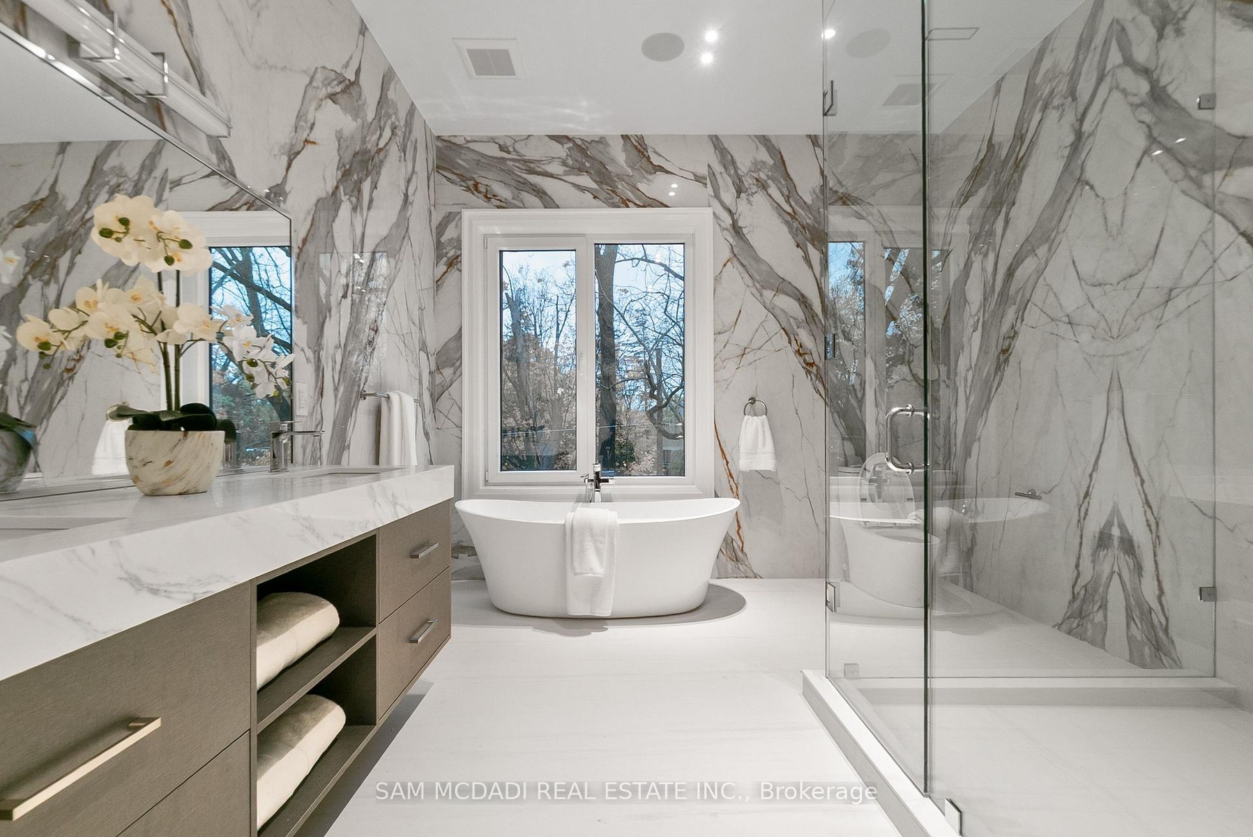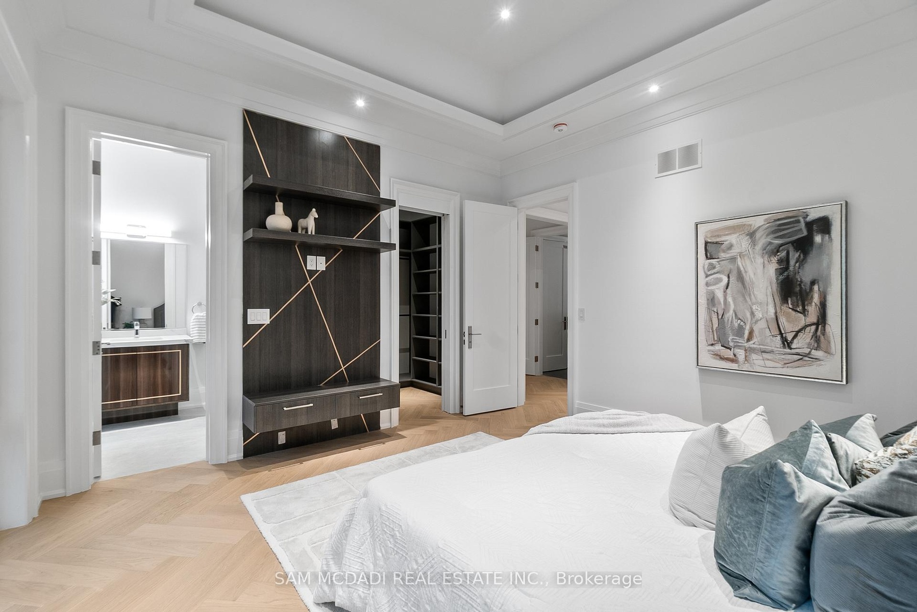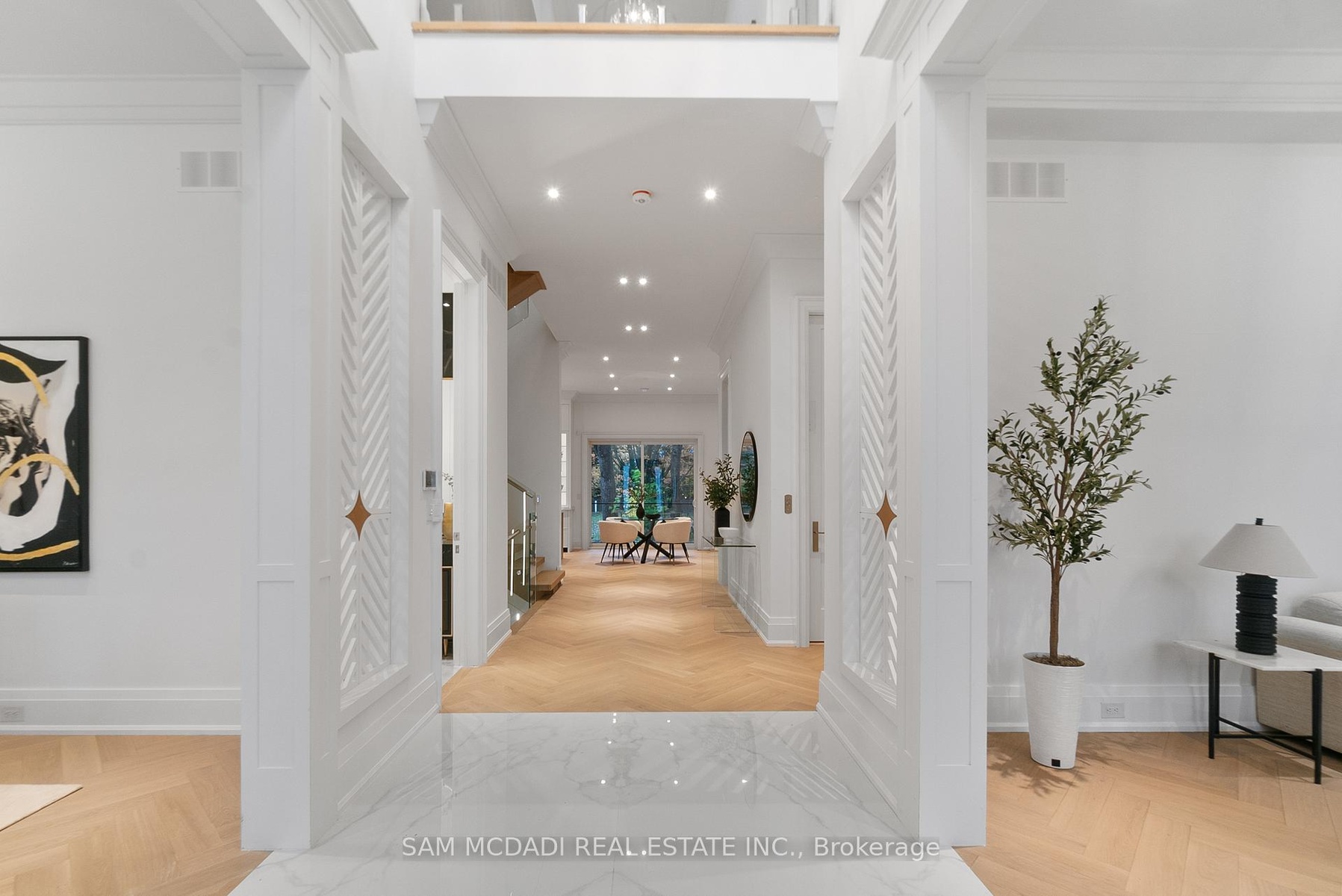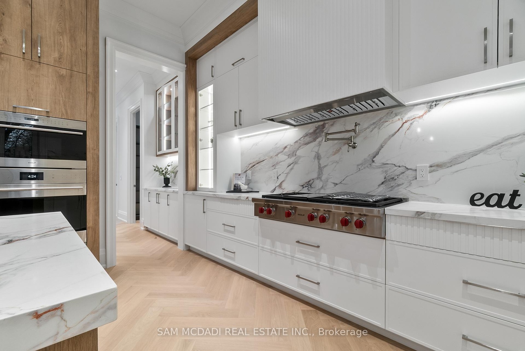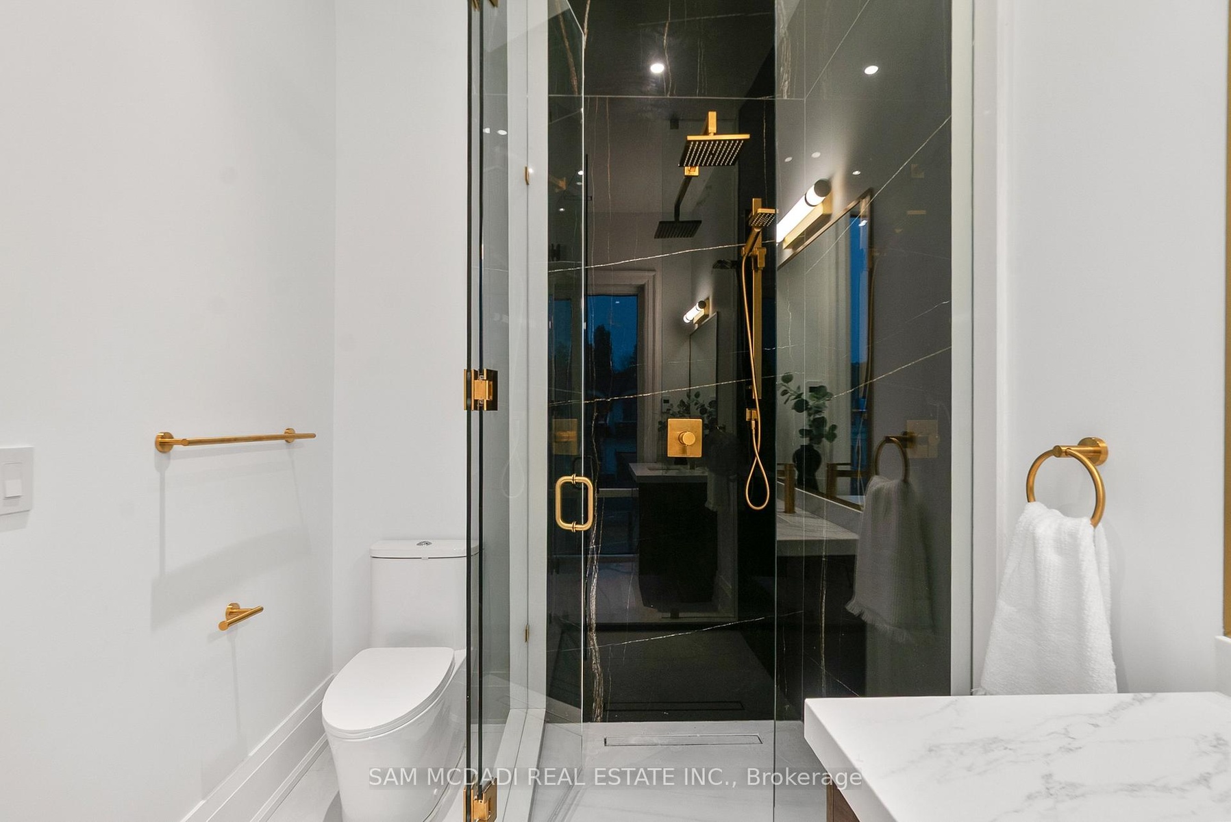 Set within one of Oakville's most distinguished enclaves, 84 Pebbleridge Place is a newly built modern estate that epitomizes architectural artistry and offers over 7,000 SF of refined living space. Poised on a private lot, this residence showcases a brick and limestone exterior, full-height glass walls a curated palette of luxurious finishes for the most discerning buyer. A grand double-height foyer introduces the home w/ polished marble-style porcelain and bespoke detailing. Beyond, herringbone hardwood floors flow through expansive principal rooms to a family room defined by a sleek wood feature wall, gas fireplace, and integrated Control4 automation for effortless entertaining. The designer kitchen is both statement and function, featuring an oversized island, full-height custom cabinetry, and Calacatta-style quartz counters w/ a custom backsplash. It opens directly to a covered deck w/ a gas fireplace, perfect for al fresco dining and evenings. An elevator and striking skylit staircase lead to the upper level, where four bedrooms each feature walk-in closets, tray ceilings, and private ensuites finished to spa-like standards. The primary suite is a serene retreat w/ a boutique-style dressing room and five-piece ensuite boasting a freestanding tub, oversized glass shower, full-height stone surrounds, and heated flooring. The lower level continues the theme of luxury and versatility, offering a heated basement w/ large-format porcelain slab flooring throughout. Designed for both relaxation and entertainment, this level includes a secondary kitchen, dining area, expansive living space, fitness room w/ cushioned flooring, an acoustically designed theatre, and three additional ensuite bedrooms, all enhanced by full-size windows and a separate entrance. Additional highlights include: a rough-in sauna, built-in speakers, and recessed lighting elevate comfort and ambiance, while upper-level laundry & a tandem garage w/ epoxy flooring complete this modern masterpiece.