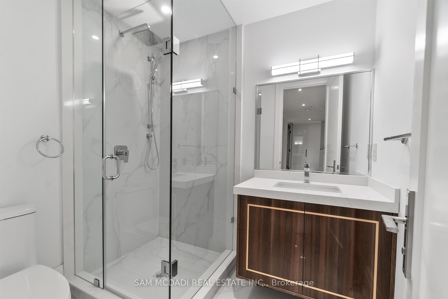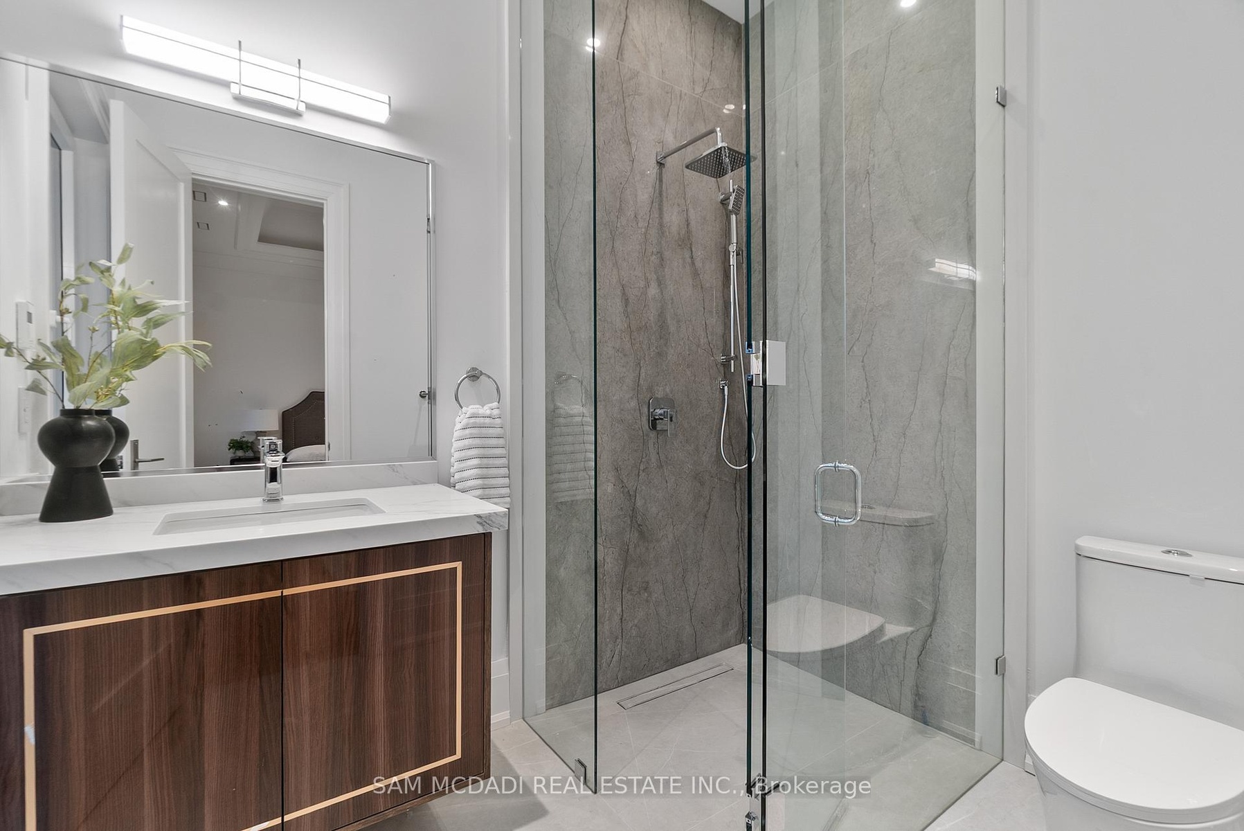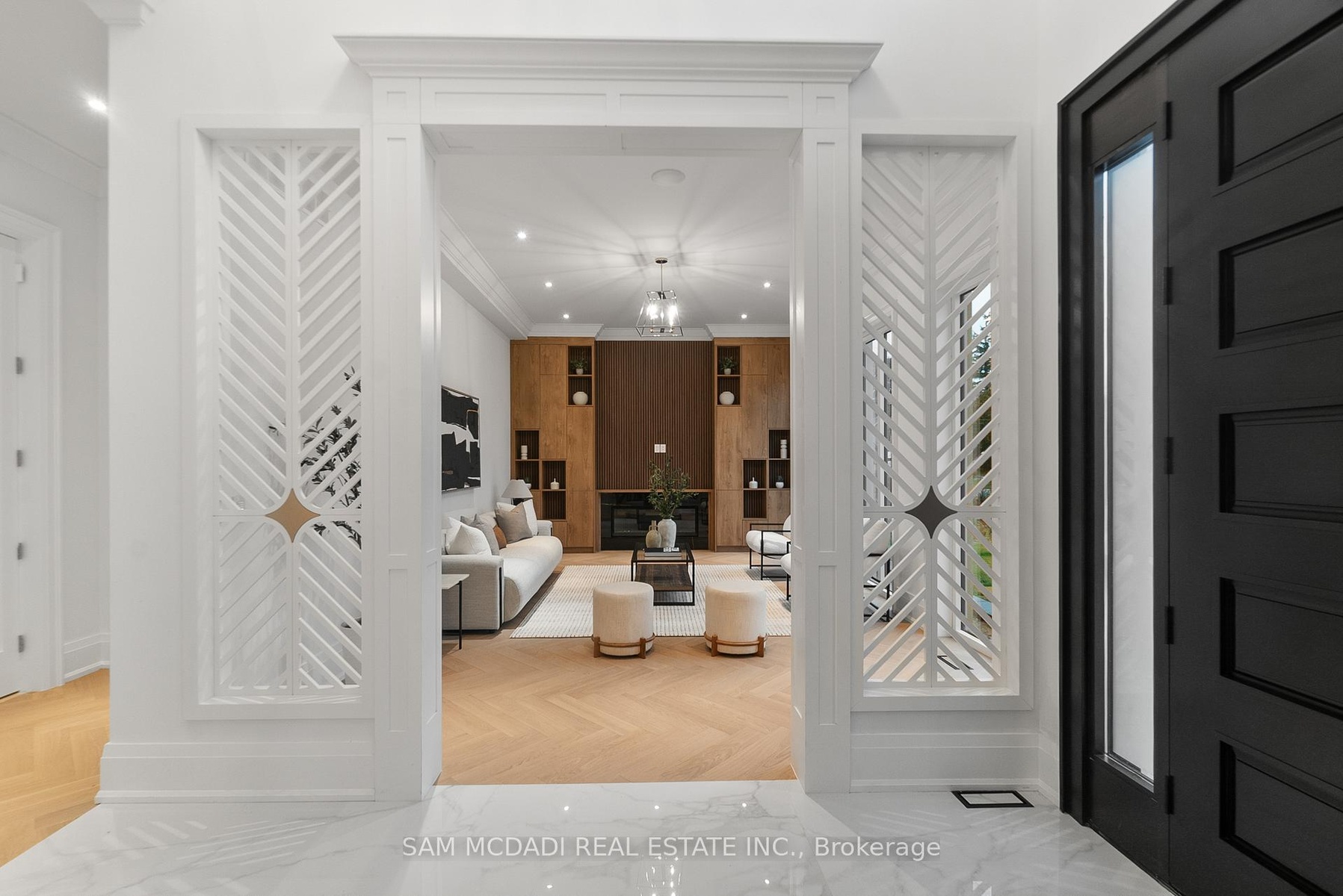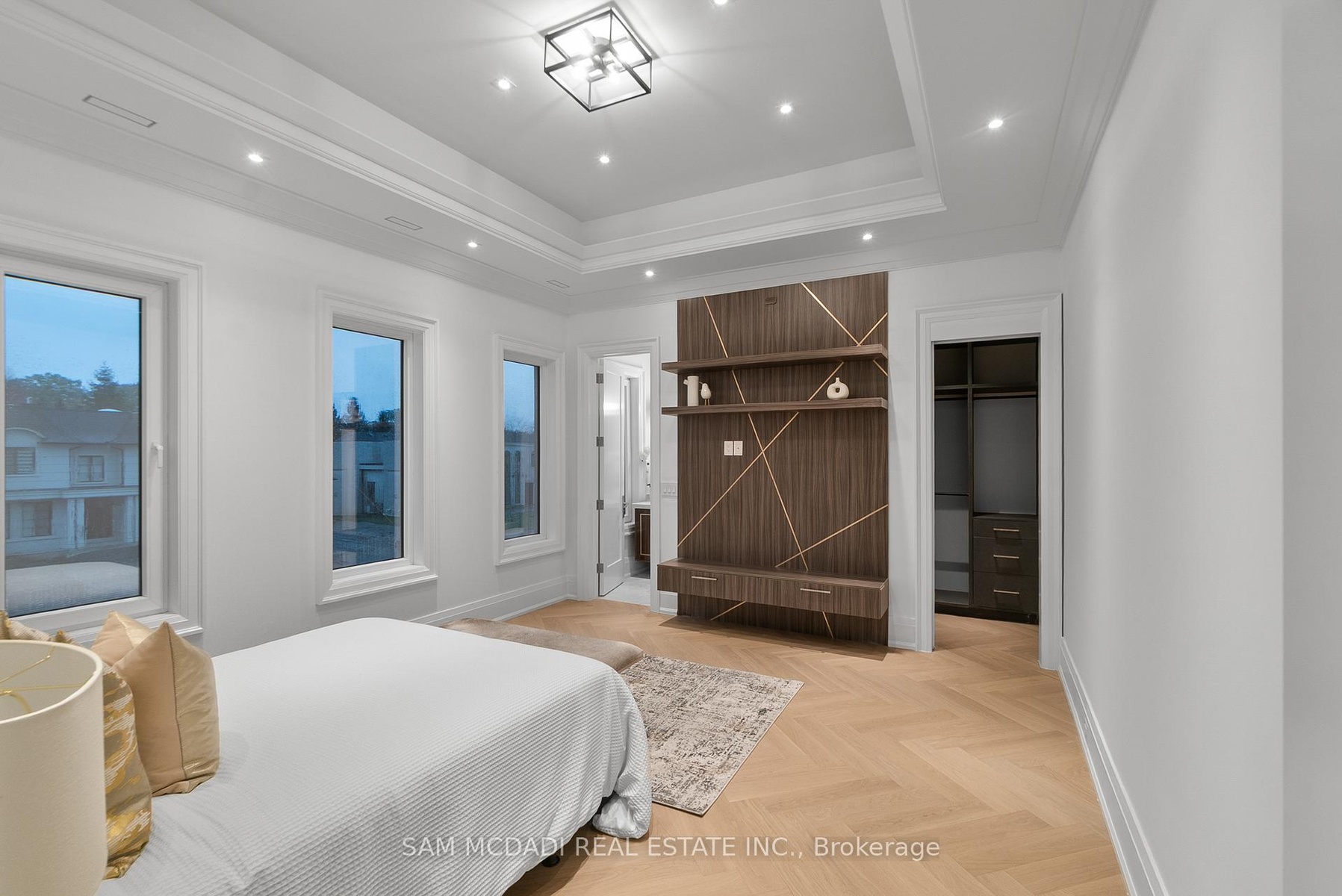 Set within one of Oakville's most distinguished enclaves, 84 Pebbleridge Place is a newly built modern estate that epitomizes architectural artistry and offers over 7,000 SF of refined living space. Poised on a private lot, this residence showcases a brick and limestone exterior, full-height glass walls a curated palette of luxurious finishes for the most discerning buyer. A grand double-height foyer introduces the home w/ polished marble-style porcelain and bespoke detailing. Beyond, herringbone hardwood floors flow through expansive principal rooms to a family room defined by a sleek wood feature wall, gas fireplace, and integrated Control4 automation for effortless entertaining. The designer kitchen is both statement and function, featuring an oversized island, full-height custom cabinetry, and Calacatta-style quartz counters w/ a custom backsplash. It opens directly to a covered deck w/ a gas fireplace, perfect for al fresco dining and evenings. An elevator and striking skylit staircase lead to the upper level, where four bedrooms each feature walk-in closets, tray ceilings, and private ensuites finished to spa-like standards. The primary suite is a serene retreat w/ a boutique-style dressing room and five-piece ensuite boasting a freestanding tub, oversized glass shower, full-height stone surrounds, and heated flooring. The lower level continues the theme of luxury and versatility, offering a heated basement w/ large-format porcelain slab flooring throughout. Designed for both relaxation and entertainment, this level includes a secondary kitchen, dining area, expansive living space, fitness room w/ cushioned flooring, an acoustically designed theatre, and three additional ensuite bedrooms, all enhanced by full-size windows and a separate entrance. Additional highlights include: a rough-in sauna, built-in speakers, and recessed lighting elevate comfort and ambiance, while upper-level laundry & a tandem garage w/ epoxy flooring complete this modern masterpiece.