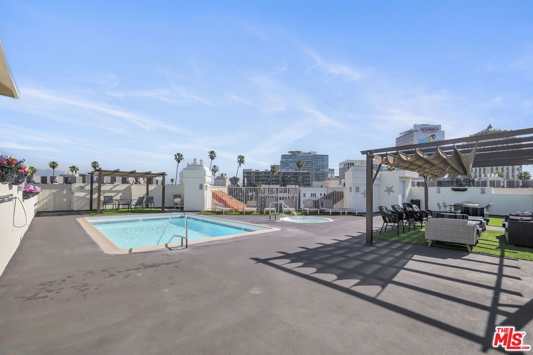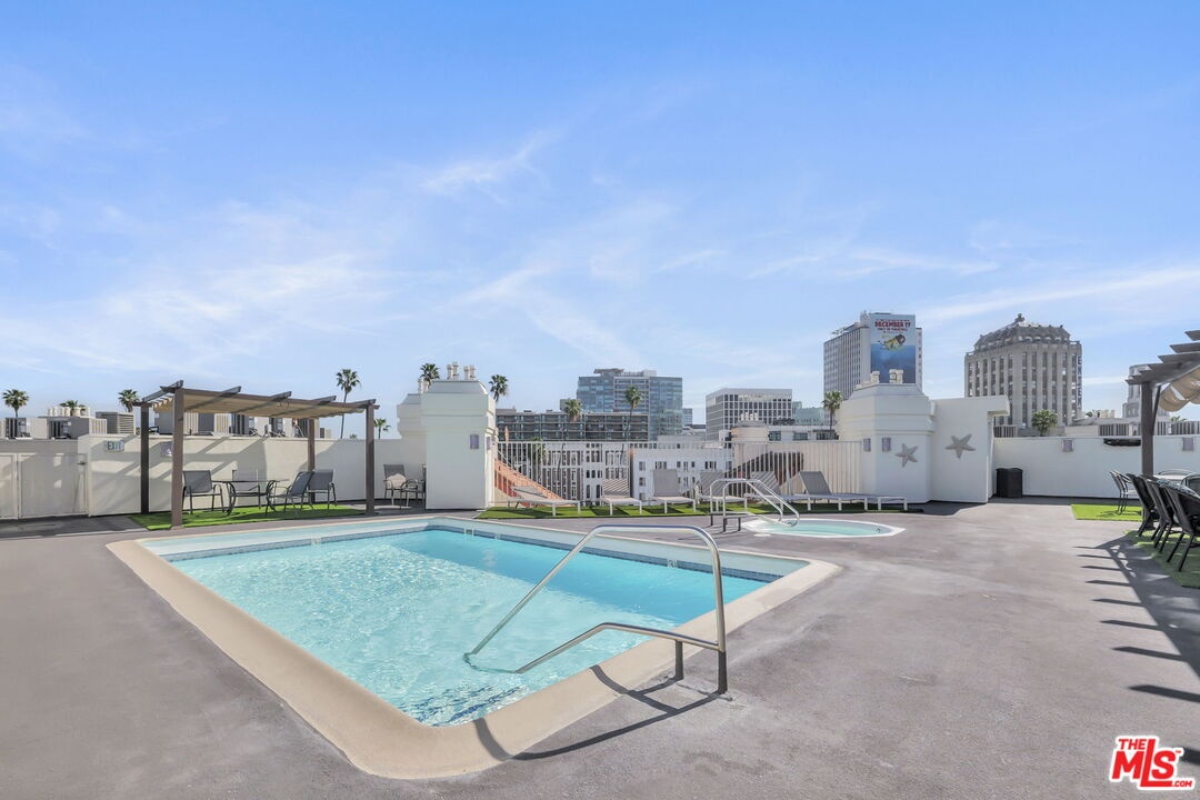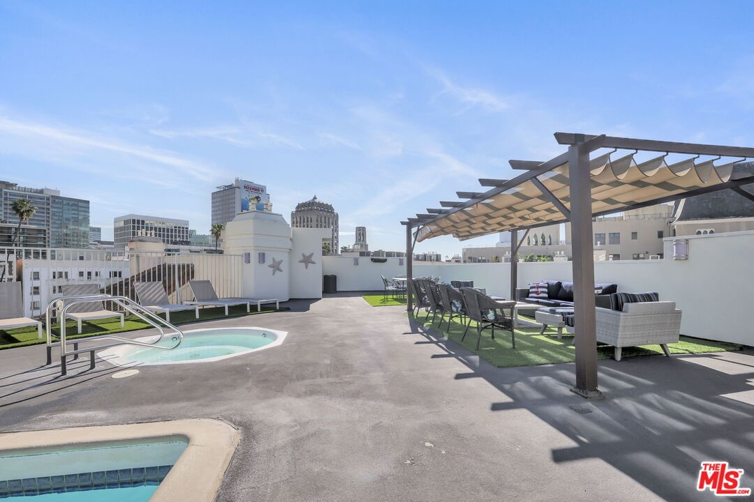 Welcome to 620 S. Gramercy Place #135, a freshly painted 2 BR / 2 BA / 2-car parking (w/ EV charger) end unit in the heart of Koreatown. This corner residence sits well above street level, overlooking a neighborhood play park with treetop views that create a natural buffer from the city below. More light, more privacy, less noise, exactly what you want in K-Town living. Positioned directly above the community garage, this home enjoys hardwood flooring throughout the main living areas, with brand-new carpet in both bedrooms for a softer finish where it counts. The smart split-bedroom layout offers ideal separation for guests, roommates, or a dedicated home office. A private balcony extends the living space, offering a quiet perch above it all. Recently refreshed throughout, the interior features new paint, updated fixtures, refreshed bathrooms, and a brand-new stainless steel refrigerator and range, all completed in 2025. It is clean, crisp, and completely move-in ready. Gramercy Place is a pet-friendly, amenity-rich community with on-site management, security, controlled-access parking, guest parking, a fitness center, and a rooftop pool and spa with sweeping city views. Low HOA dues add to the appeal. Within minutes of The Wiltern, LA LIVE, The Line Hotel, Cafe Mak, Alchemist Coffee Project, H Mart, Ralphs, and Koreatown's dynamic dining and nightlife, this home delivers the balance buyers are seeking: calm amid the energy and convenience without compromise.