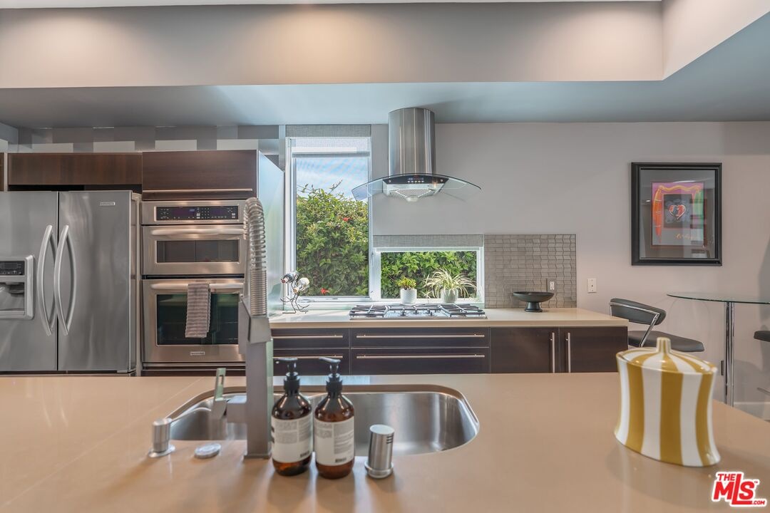 Welcome to the prestigious Harper West Hollywood Condominiums (Historically known as the Ramona Courtyards), where the elegance of 1920s Old Hollywood meets refined modern living. Nestled within beautifully landscaped courtyards featuring tranquil fountains and inviting gathering spaces, this sophisticated corner unit offers an unparalleled residential experience. Impeccably designed, this turn-key home boasts designer finishes and premium amenities, ensuring effortless luxury. Step into the sunlit living area, where tall windows, a stately fireplace, and exquisite stone-like flooring create an atmosphere of warmth and sophistication. The open-concept layout flows seamlessly into the gourmet kitchen, a chef's dream equipped with top-tier appliances and elegant finishes. The adjacent dining area overlooks a private outdoor patio, complete with stylish seating and a BBQ, an ideal setting for refined entertaining. The primary suite is a sanctuary of elegance, featuring a spa-inspired en-suite bath and expansive closet space. A versatile second bedroom or office and an additional beautifully appointed bathroom complete this remarkable condo. Additional features include two secure underground tandem parking spaces and an unbeatable location on a picturesque tree-lined street, just moments from renowned restaurants, gourmet markets, and upscale shopping. Also available for lease at $7,000.00 per month fully furnished.