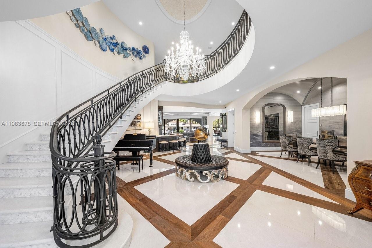 A masterfully crafted Mediterranean estate of scale, presence, and charm, this custom three-story residence commands 100 feet of prime waterfront in the heart of Las Olas Isles. Designed for grand living and entertaining alike, the home is enriched by meticulous detail, generous living areas, and timeless architectural design throughout. A dramatic two-story foyer opens to expansive formal living and dining rooms with a custom wine cellar and built-in saltwater aquarium, while the gourmet chef’s kitchen centers around a one-of-a-kind statement island.