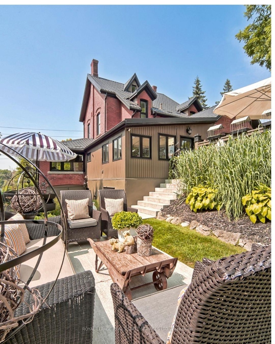 Renovated Mixed-Use Gem on Main Street. This stunning circa 1890 build blends historic charm with modern updates and offers mixed-use zoning in the heart of Campbellville across from Conservation Area. All four levels are above grade thanks to the unique topography, providing exceptional natural light and flexibility throughout. The layout is currently configured as separate residential units for multi-generational living. The Street Level features its own entrance off Main Street, a large family room, bedroom/office, full bath and interior access to storage/garage. The Main Floor features 10' ceilings, 8' doorways, windows on all four sides and rich hardwood floors. The beautifully reno'd kitchen incl.: quartz counters, floor to ceiling cabinets, a side-by-side fridge/freezer, Wolf gas stove, s/s dishwasher, views of the outdoors plus large pantry. A welcoming family room with vaulted ceiling walks out to the terrace & backyard. The spacious living room offers a gas fireplace and windows on three sides and the expansive dining room sits at the heart of the home. Two bedrooms, a stylish 4-piece bath and a laundry room with quartz counters complete this level. The Second Floor (with separate access) has pine floors, a full kitchen, living room, bedroom, large closet. The Top Floor Loft/Bedroom is an open space with tin-clad dormer ceilings, north/south views, pine floors and a privacy door. Outside enjoy mature landscaping, a pergola, fire pit, private terraces, a workshop and storage/garage. Private driveway for 2+ cars. Whether you're looking to continue as a multi-generational home, open a professional office or explore other permitted uses, this property offers incredible flexibility and value. Campbellville is a hub for outdoor enthusiasts with access to Hilton Falls, Kelso and cycling routes like the Limehouse Loop, Escarpment View and Heat Map 100. With its unique MIXED USE ZONING, flexible layout and scenic location, this is a rare and exceptional offering!