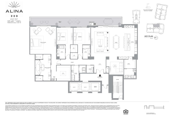 One of the last remaining Developer residences available! On-Site Sales Gallery open seven days a week. Elevated penthouse living at ALINA Residences in the heart of downtown Boca Raton. This exceptional 3-bedroom plus den, 31⁄2-bath residence offers 11-foot ceilings, private elevator entry, and refined modern design throughout. The east-facing layout captures gorgeous ocean views from the primary suite, complete with a private morning bar for effortless starts to the day. Finishes include large-format porcelain tile floors, quartz countertops, and a chef's kitchen with premium Gaggenau appliances. A pet-friendly, full-service 5-star building featuring a dedicated dog park and resort-style amenities, just moments from the beach, dining, and culture.