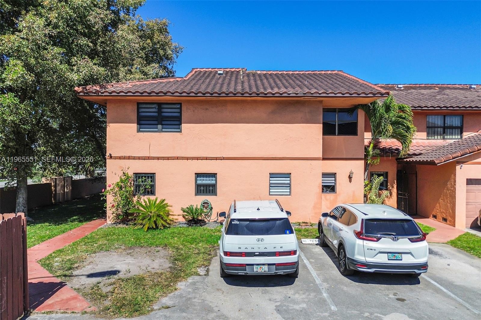 Move-in ready and beautifully remodeled corner townhome in Hialeah featuring 3 bedrooms and 2.5 baths. The recently updated primary bathroom and spacious walk-in closets add comfort and functionality, while porcelain flooring on the first floor and vinyl flooring on the stairs and second level create a modern, cohesive look. This clean, well-maintained home has been freshly painted inside and includes impact windows, two designated parking spaces, and additional guest parking. Enjoy outdoor living in the large private patio with convenient storage space. The A/C has been recently maintained, the roof is approximately 8 years old, and the property is located in Flood Zone X for added peace of mind. The gated community offers 24-hour security, three swimming pools, a playground, and basketball courts. HOA is $372/month and covers exterior insurance, roof, landscaping, and common areas. Owner-occupied—24-hour notice required for showings. Ideally located near shopping, supermarkets, and dining, with easy access to major highways and top nearby schools including Mater Academy Charter School, José Martí MAST Academy, Ernest R. Graham K-8 Center, and West Hialeah Gardens K-12, all within approximately two miles.