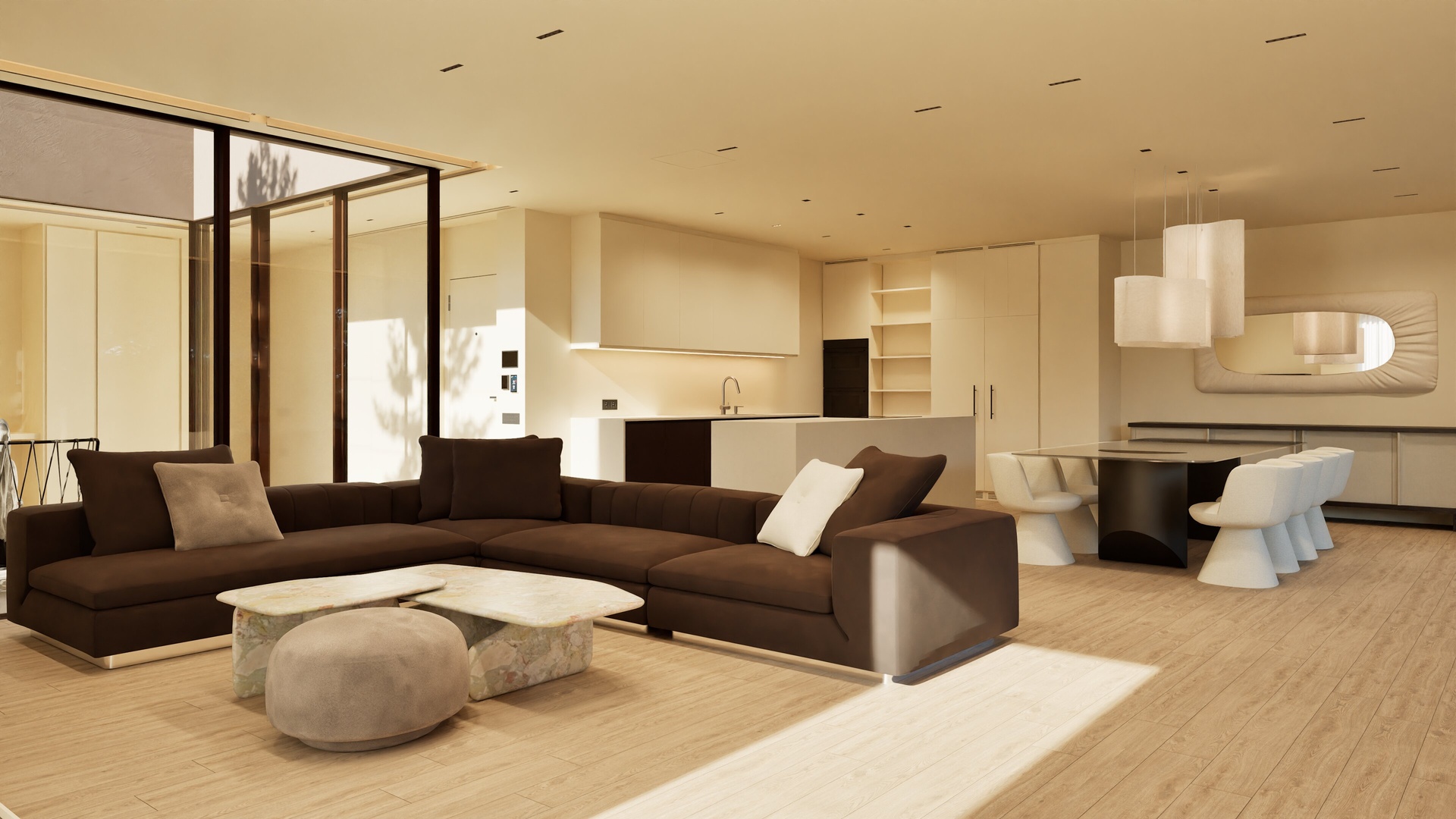 The outdoor space has also been designed with comfort in mind, offering a 50 sq m main balcony and a 14 sq m rear patio, providing flexible spaces for relaxation, dining or entertaining.