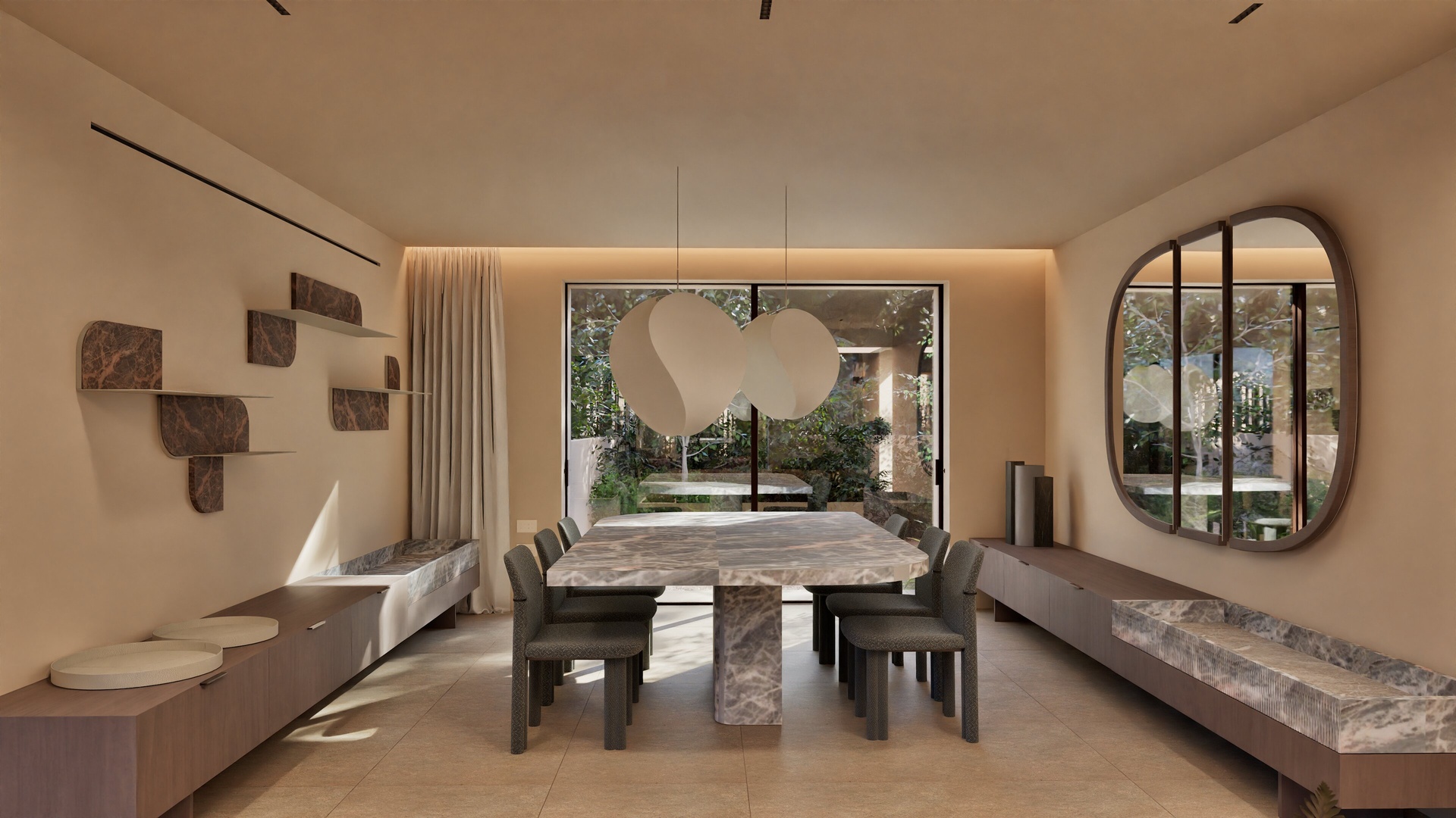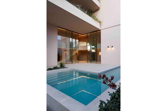 A unique 3-bedroom villa-inspired residence of 252 m2 with a private garden (322.15 m2) & a lap-pool (56.35 m2). The layout offers the absolute privacy as the building's architecture has successfully secluded all of the external living areas making them not visible to the neighbours.