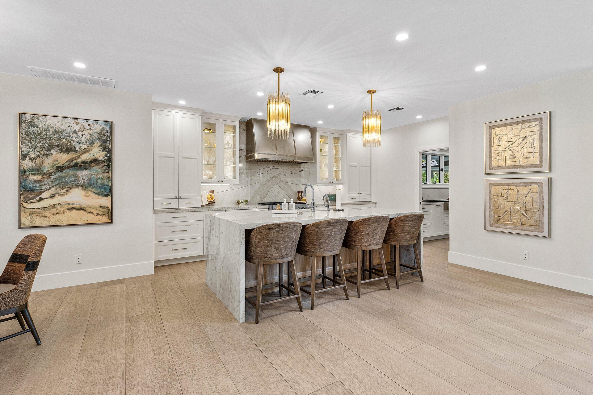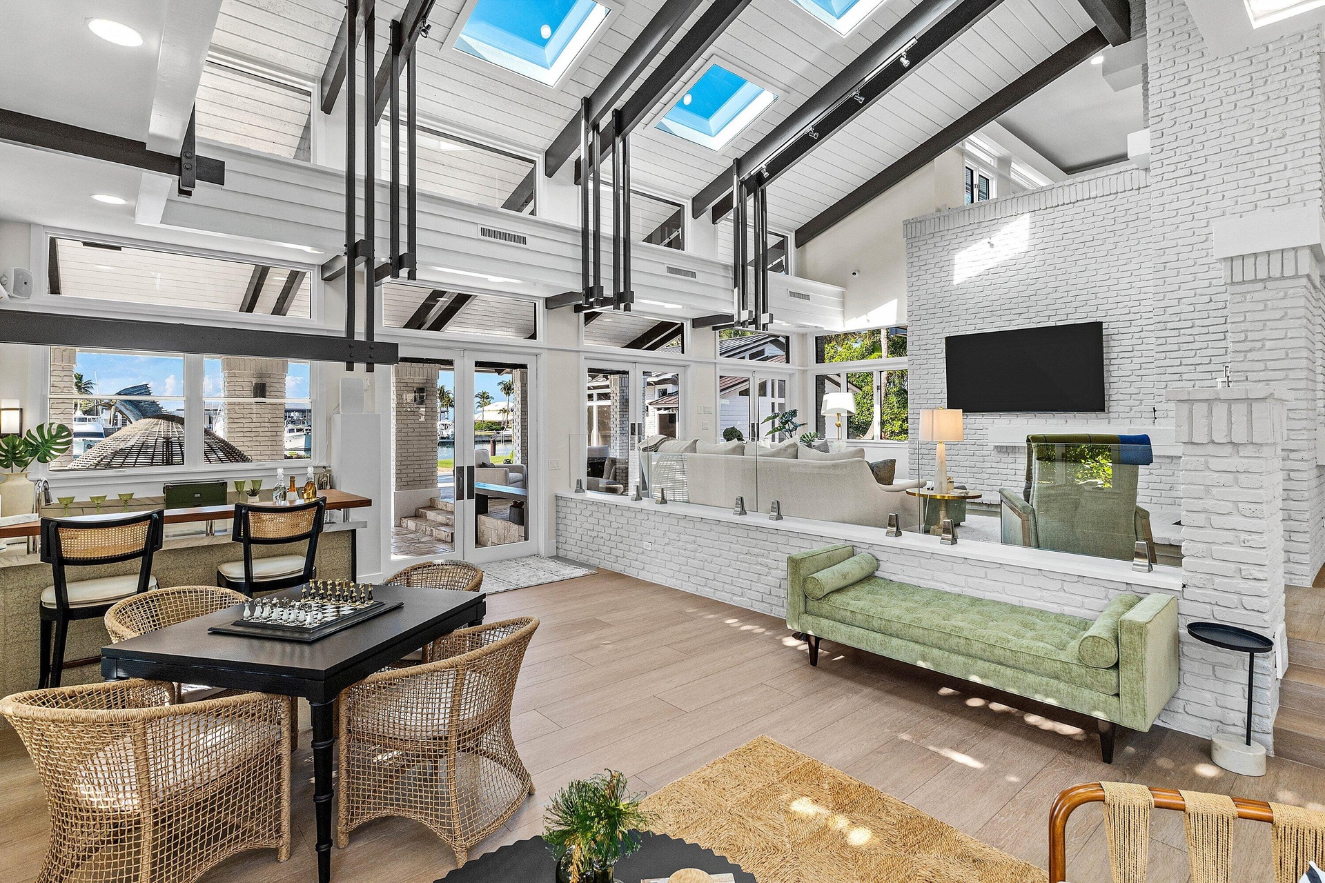 Set along a protected marina, this exceptional waterfront residence features a private bulkheaded dock capable of accommodating a large vessel. Thoughtfully renovated in 2025, the home showcases a new designer kitchen, new roof, new flooring, new A/C systems, and numerous additional upgrades throughout. Offering four bedrooms, five and one-half baths, and a three-car garage, the residence is designed for entertaining, highlighted by a spectacular backyard oasis overlooking the marina.