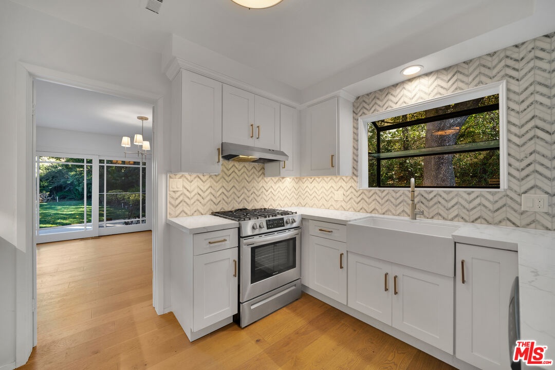 Beautiful hillside home situated at the end of a cul de sac! a green and peaceful spot at the crest of the canyon. This home is a private oasis overlooking Benedict Canyon. Fully renovated In 2020. Open floor plan, lots of natural light with 5 bedrooms and 4 baths.Brand new wide oak floors, stainless appliances, and beautiful stone counters and tiled bathrooms. The home sports leisurely indoor/outdoor living with large french doors opening to the lushly landscaped backyard. A maid's quarters downstairs next to the 2 car garage and three guest bedrooms alongside the master upstairs.