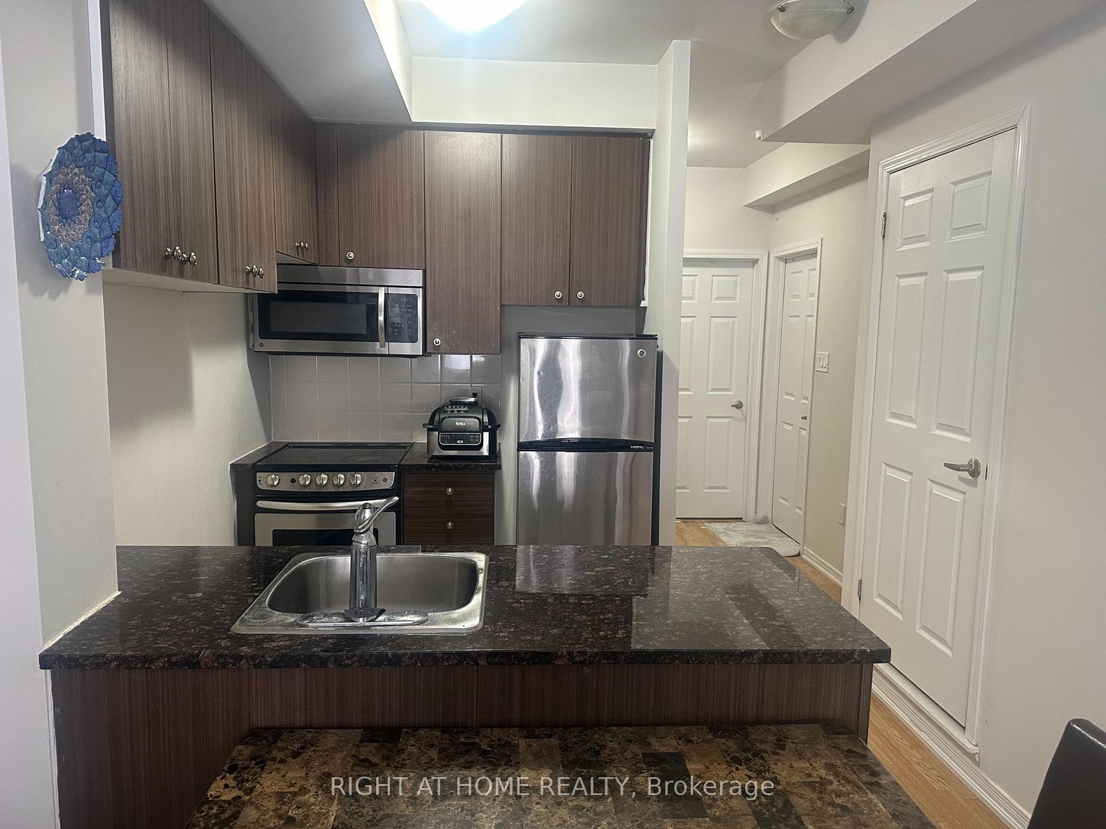 Bright and spacious 2-bedroom condo townhouse featuring 1 bathroom, 1 parking space. Enjoy 9-foot smooth ceilings, abundant natural light from large windows, laminate flooring throughout, and a modern white kitchen with granite countertops and a custom backsplash. Located in a very clean, well-maintained complex. Conveniently close to plazas, shopping, TTC transit, a popular park with walking and jogging trails, sports facilities, and a children's playground. Ideal rental opportunity in a highly desirable neighborhood. Measurements to be verified by tenant and agent.