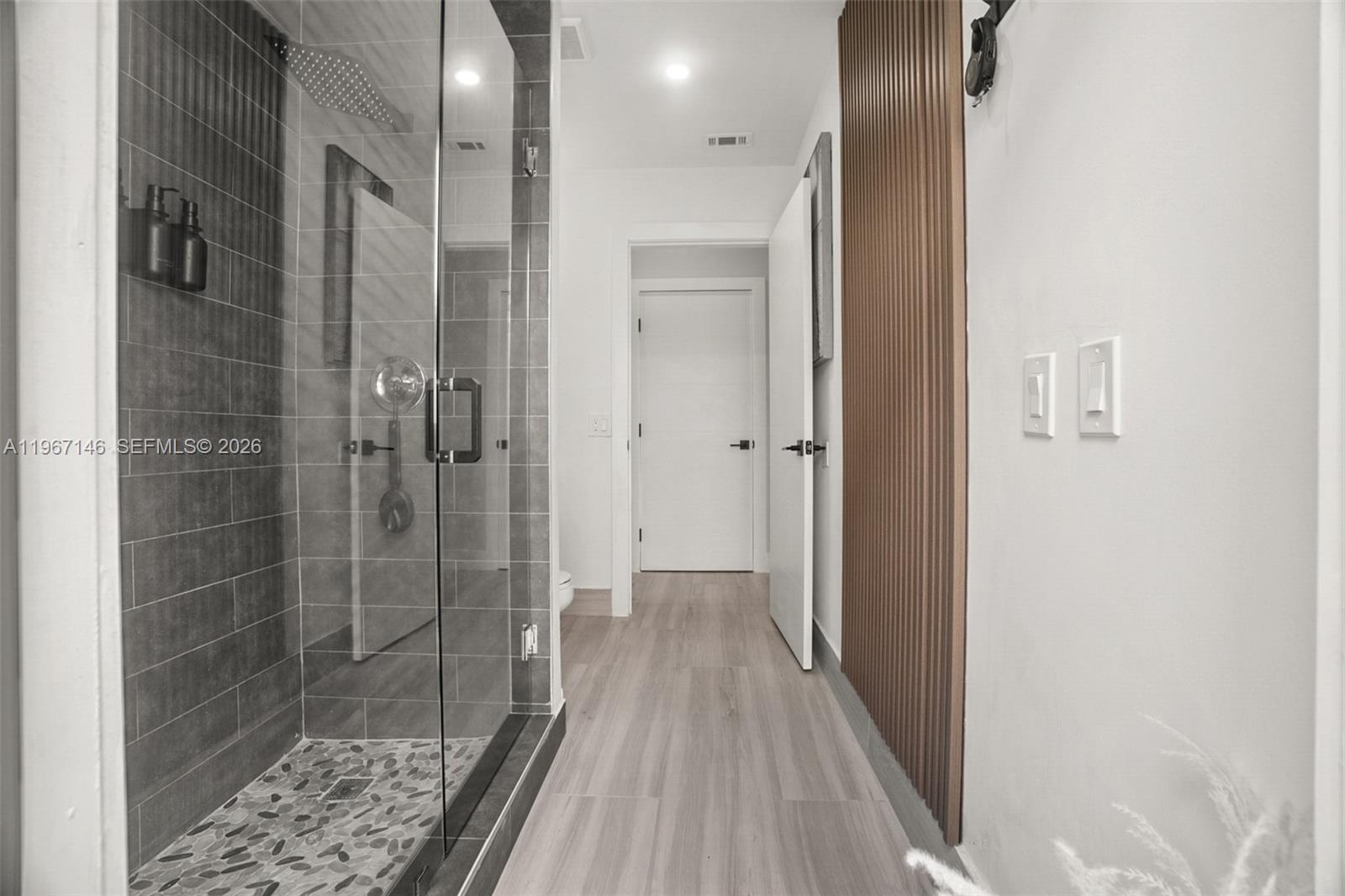 Experience elevated South Florida living in the heart of Pembroke Pines. This impeccably renovated 4-bedroom,3-bath + DEN single-family residence offers a rare wide lake view backdrop paired with a resort-style pool, creating a truly private waterfront retreat. Completely remodeled with exceptional attention to detail, the home showcases brand-new impact windows and doors, a 2025 roof, and a stunning designer kitchen featuring premium finishes and modern elegance. All bathrooms have been fully transformed with sleek glass-enclosed showers and contemporary styling. Porcelain tile floors grace the main living areas, while the second level features sophisticated vinyl plank flooring for warmth and durability. The interior and exterior have been freshly painted, and remote-control zebra blinds throughout the home provide both privacy and modern convenience. Designed for both luxury and functionality, the property includes custom built-in closet cabinetry, recessed lighting throughout, and a professionally installed Tesla/EV charging station. Step outside to your private outdoor oasis—complete with a saltwater pool system and a storm-rated aluminum pergola with a fully integrated entertainment setup, perfect for hosting under the stars. Additional enhancements include permanent app-controlled outdoor EAVE lighting, artificial turf along the side walkway, and a beautifully tiled entertainment area, blending low maintenance with high design. HOA includes high speed internet & cable.