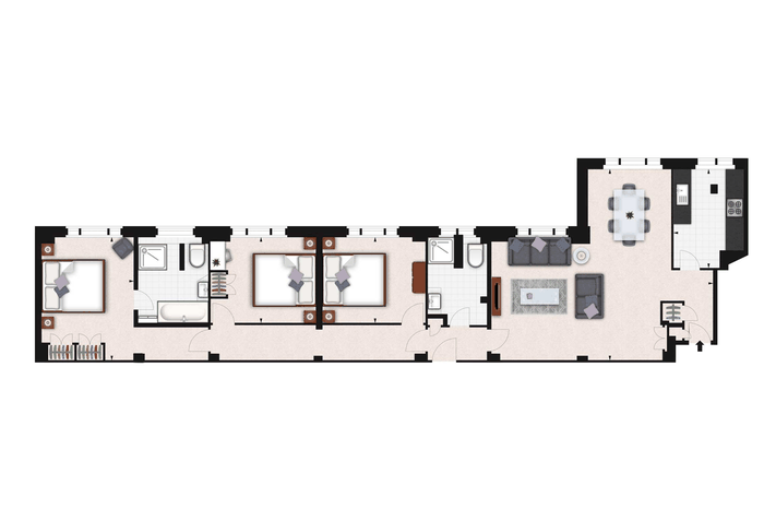 A brand new, interior-designed three-bedroom apartment set on the second floor of an exclusive Hill Street residence, extending to an impressive 1,203 sq ft.