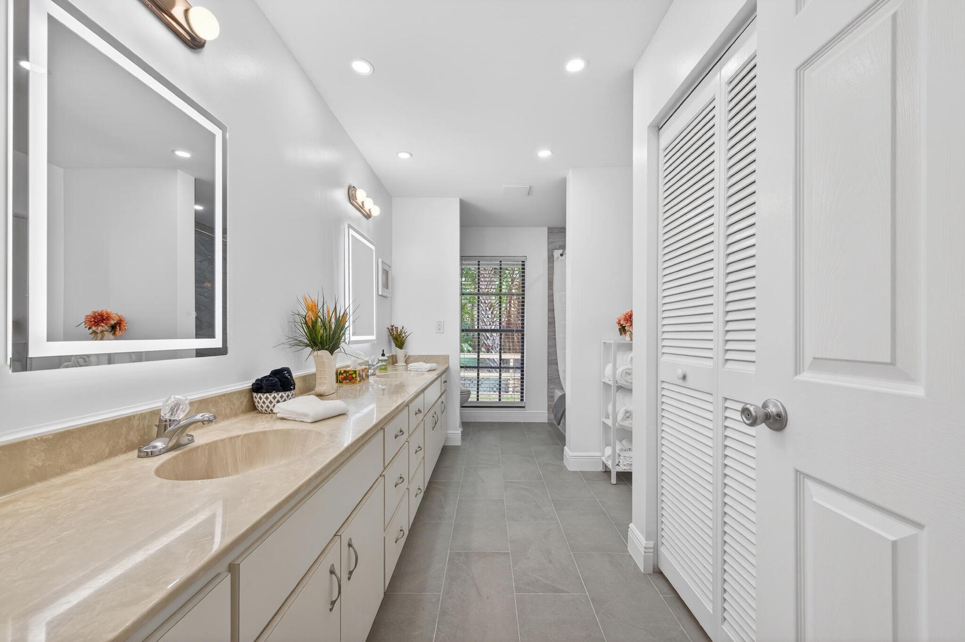 Escape to this secluded Palm Beach Gardens retreat set on over an acre of lush tropical landscaping.