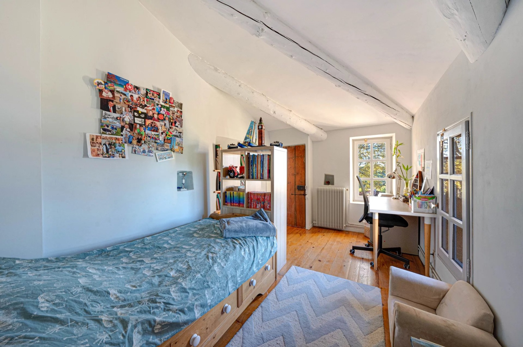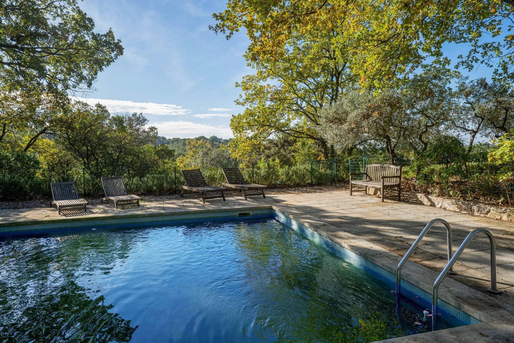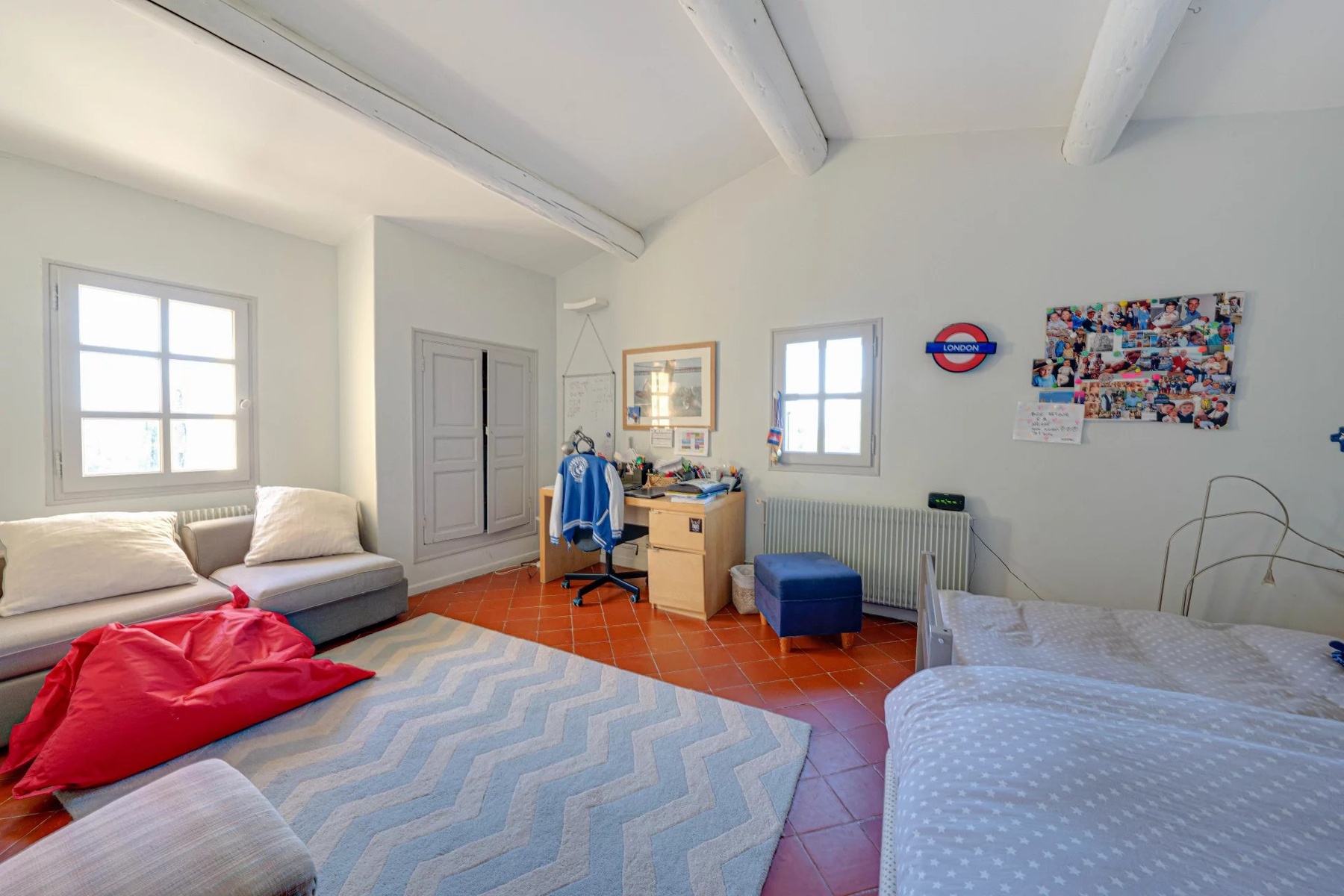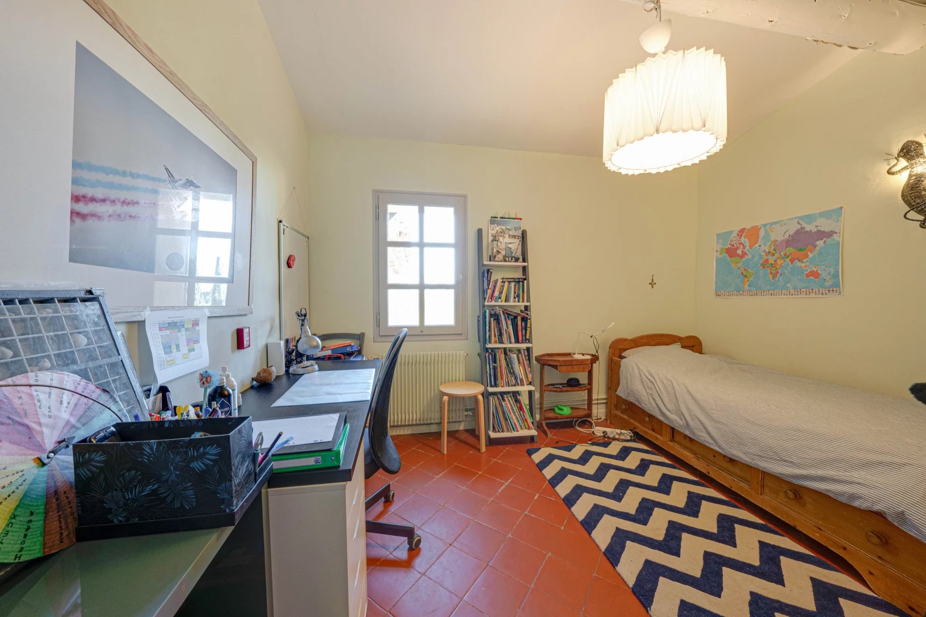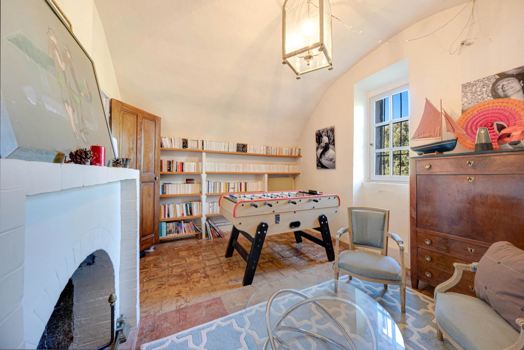 The main residence, a historic 16th-century Provençal mas of 257 m2, has preserved all its charm while offering spacious interiors bathed in natural light. • Ground floor: welcoming entrance hall, warm dining room with fireplace, a vast living room with fireplace opening onto a summer terrace, an independent kitchen extended by a shaded pergola terrace, a study, and a library / playroom. • First floor: a remarkable 50 m2 master suite, four additional bedrooms, and three bathrooms. A vaulted cellar and a laundry room complete this elegant ensemble.