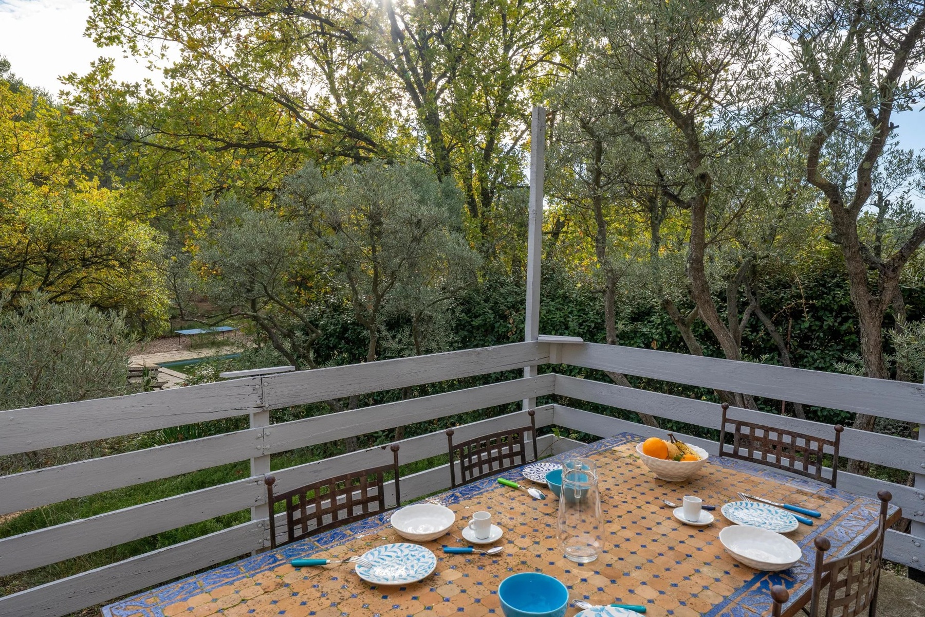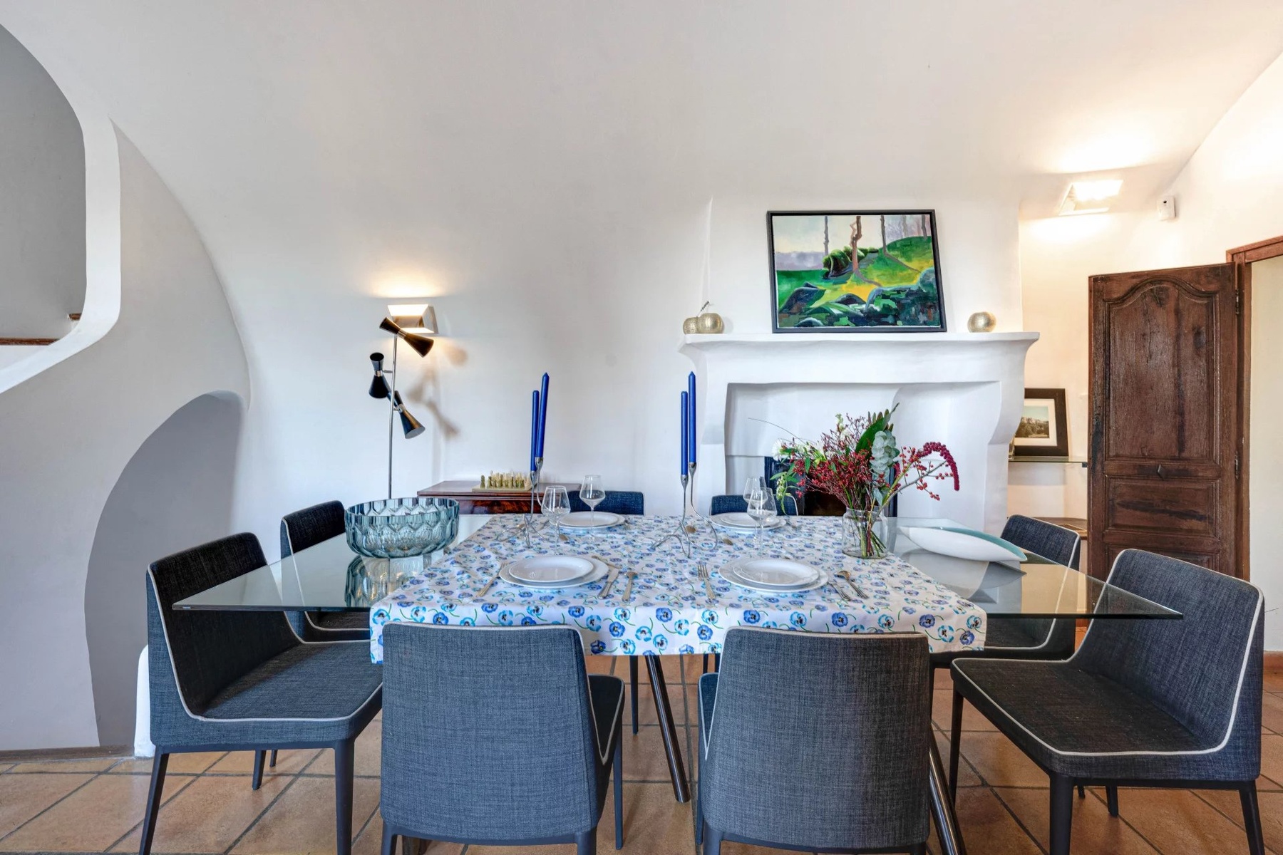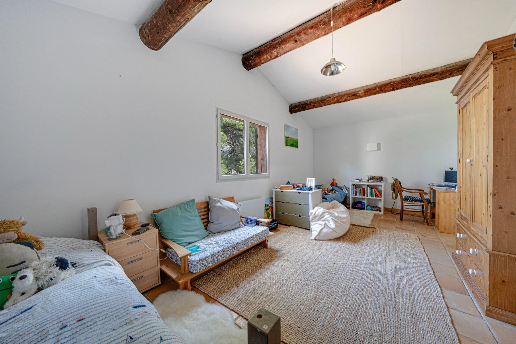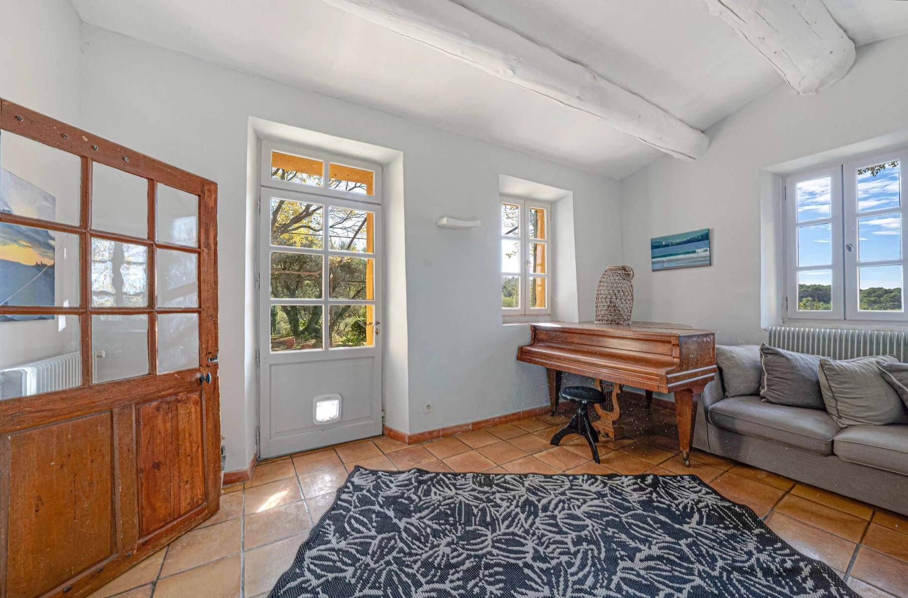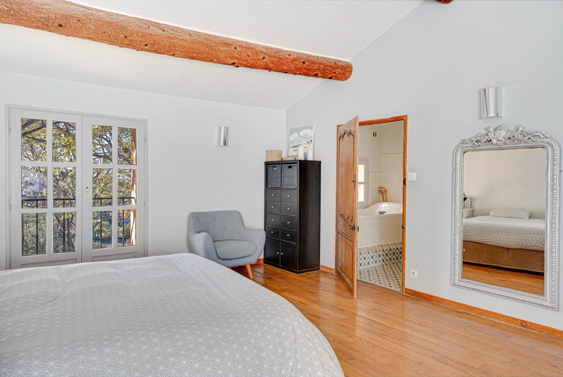 The main residence, a historic 16th-century Provençal mas of 257 m2, has preserved all its charm while offering spacious interiors bathed in natural light. • Ground floor: welcoming entrance hall, warm dining room with fireplace, a vast living room with fireplace opening onto a summer terrace, an independent kitchen extended by a shaded pergola terrace, a study, and a library / playroom. • First floor: a remarkable 50 m2 master suite, four additional bedrooms, and three bathrooms. A vaulted cellar and a laundry room complete this elegant ensemble.