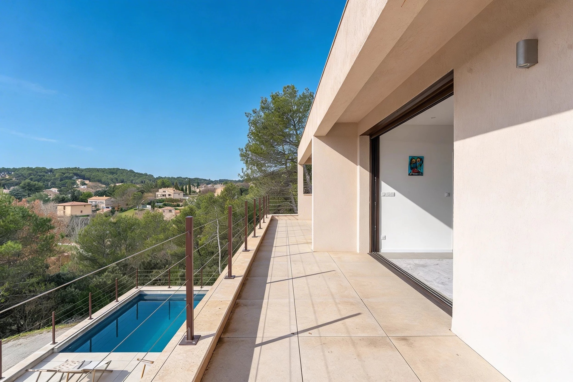 Bathed in natural light, the property enjoys open views over the surrounding landscape, within a preserved environment of terraced hillsides and wooded slopes.