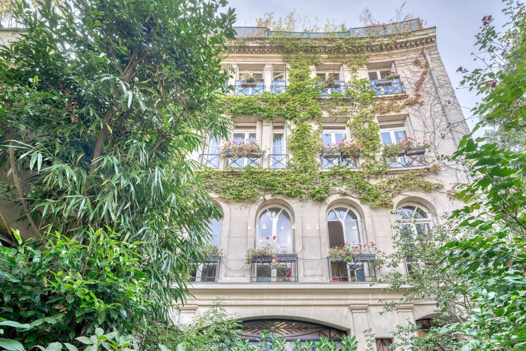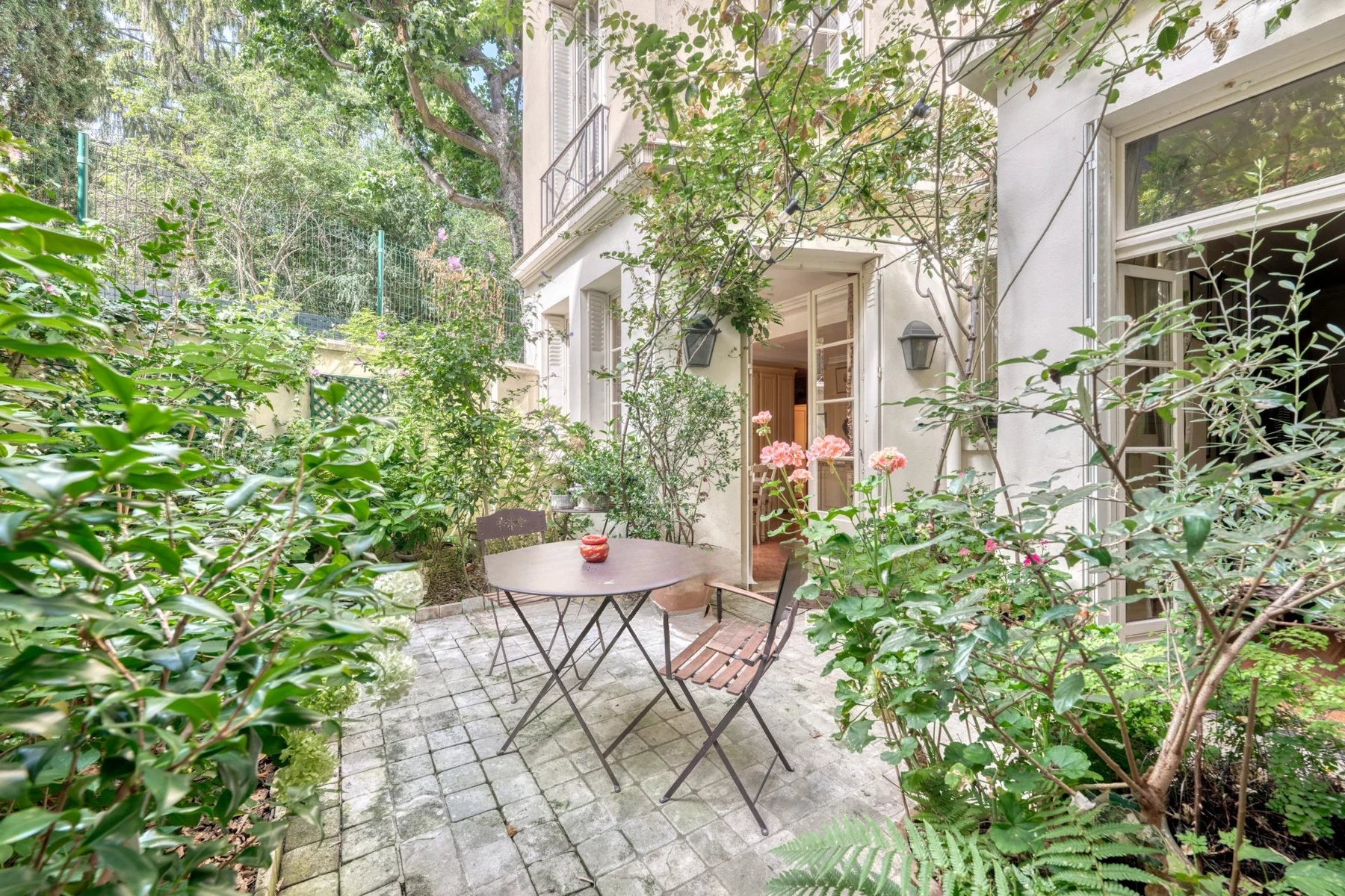 Situated in the heart of a private, secure hamlet, this elegant 1910 townhouse offers almost 485 m2 of charm and character, with spacious rooms and a verdant setting. It opens onto 126 m2 of wooded gardens and a 124 m2 unoverlooked roof terrace.