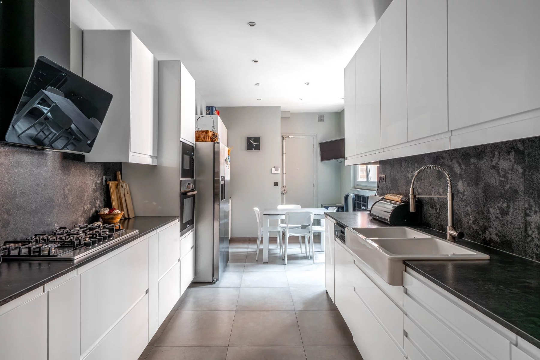 At the foot of the Rue du Bac metro station, in a luxury Art-Deco building on boulevard Raspail, on the 3rd floor with elevator, a 200 m2 loi Carrez family apartment comprising: a vast entrance gallery, a 60 m2 triple reception room facing south-west on boulevard Raspail, a fitted and equipped kitchen/dining room, a separate toilet, a master suite with plenty of storage space and a shower room with toilet, three other bedrooms with storage space, a laundry room (formerly the 5th bedroom) and a second bathroom with toilet. The apartment is in very good condition inside, with large volumes, very bright and with all rooms facing the courtyard. All the charm of the old: parquet flooring, moldings and fireplaces. Ideally located on the border between the 7th and 6th arrondissements, very close to Bon Marché, Lutétia and St Germain des Près. Two cellars complete this property.