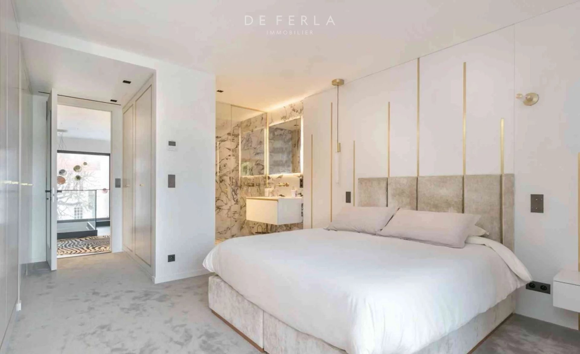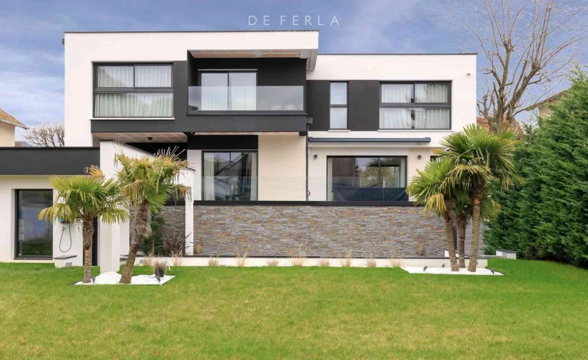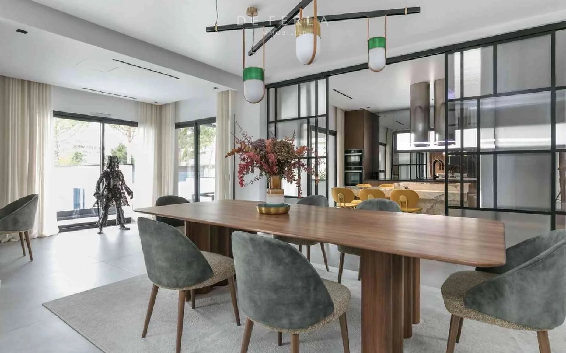 Villa d’architecte de 380 m2, construite en 2019, offrant un double séjour lumineux s’ouvrant sur une vaste terrasse. La cuisine, entièrement aménagée et équipée, est complétée par une arrière-cuisine. Elle dispose de cinq chambres, chacune dotée de sa propre salle de bain, d’un dressing et de WC privatifs. Les prestations incluent également une piscine chauffée et un jardin. Le tout est implanté sur un terrain de 1000 m2 et équipé de matériaux haut de gamme et luxueux. Située à La Varenne Saint-Hilaire, cette villa allie élégance et confort. En annexe : 5 places de parking