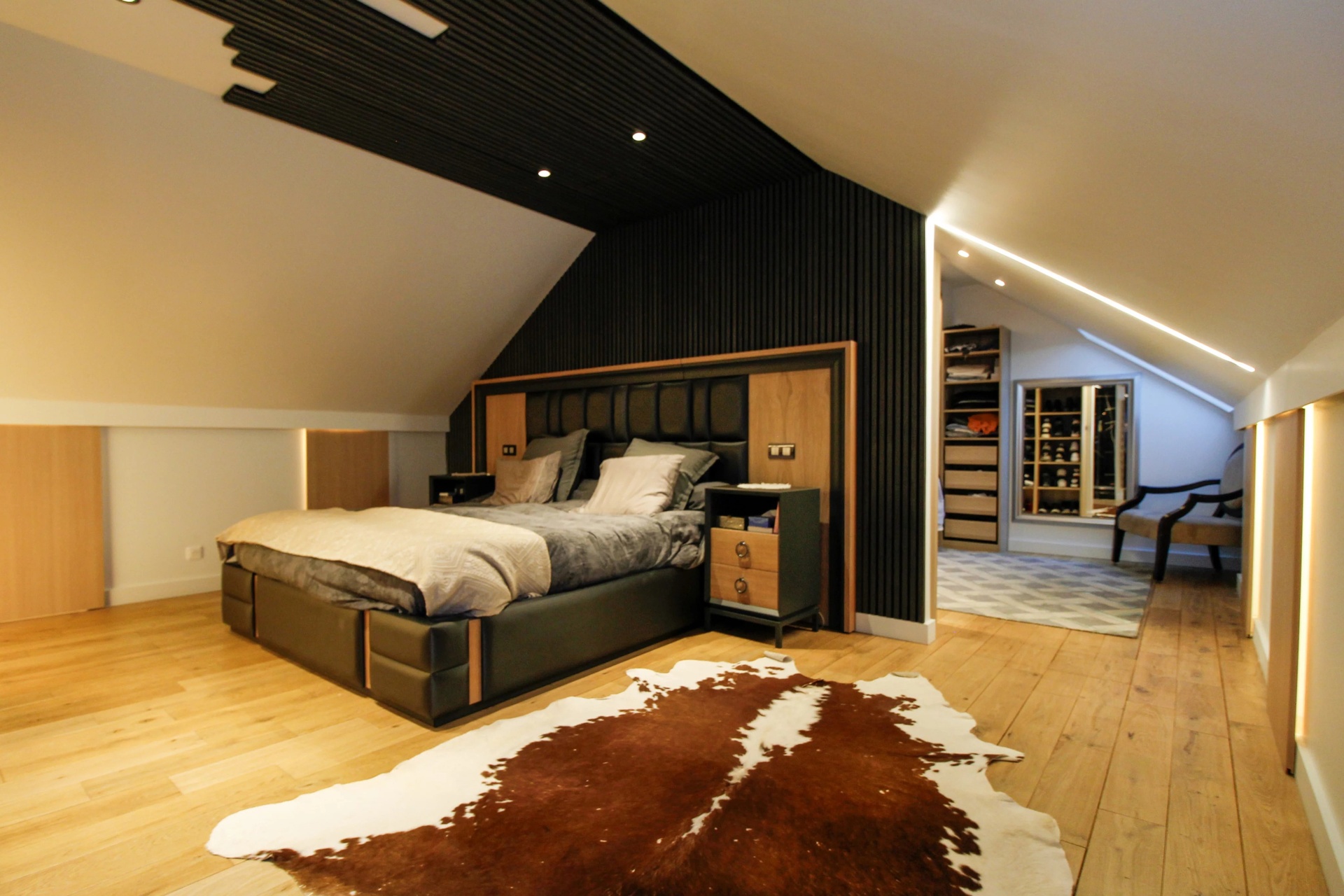 La cuisine, d’environ 20 m2, entièrement aménagée et équipée, conjugue esthétique et fonctionnalité : plan de travail sombre, électroménager intégré, îlot central et espace repas convivial. À l’étage, la suite parentale s’apparente à une véritable master room : volumes confortables, dressing, salle d’eau aux accents minéraux et prestations dignes d’un hôtel particulier. Les chambres bénéficient d’une belle luminosité et d’aménagements sur mesure. L’espace bien-être constitue l’un des points forts de la propriété :