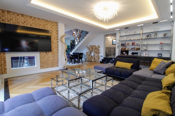 Dans un environnement résidentiel particulièrement recherché de Saint-Brice-sous-Forêt, cette propriété entièrement repensée et rénovée avec exigence développe 403 m2 habitables au cœur d’une parcelle paysagée de 666 m2. Une adresse discrète pour une maison résolument statutaire, où chaque détail a été conçu avec le plus haut niveau de finition. Dès l’entrée, les volumes impressionnent. La pièce de réception, baignée de lumière grâce à son exposition plein sud, s’organise autour de matériaux nobles : parquet en point de Hongrie, marbre, jeux de lumière intégrés et cheminée contemporaine habillée de parements texturés. Les lignes sont épurées, les perspectives ouvertes, créant une atmosphère à la fois chaleureuse et architecturale. La maison propose 9 pièces harmonieusement réparties sur trois niveaux :