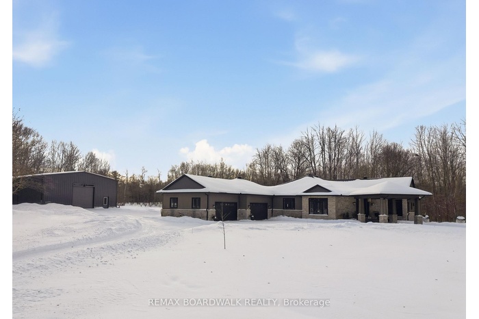 Experience YOUR OWN OASIS on over 40 acres of land. Welcome to this fully custom-built estate home, an extraordinary retreat designed to impress at every turn. As you approach via the private laneway, you're greeted by striking armor stone landscaping and a beautifully designed interlock entrance, setting the tone for the elegance and charm that awaits. The exterior offers everything you need for work, play, and leisure. A heated vaulted 5-car garage with drive-through access, hot/cold water supply, wired for EV charging, very own pickel ball court and direct entry to both the home and basement makes everyday living incredibly functional. A separate 2400sq/ft fully heated detached shop equipped with 200 amp service , water, bathroom, kitchen and a hoist is perfect for all your toys, tools, and ambitious projects. Enjoy a covered, vaulted screened in outdoor dining/lounging area overlooking a saltwater pool accessible from beautiful 12ft patio doors creating seamless indoor-outdoor living. Inside, the home exudes sophistication and craftsmanship. Expansive living spaces offer stunning views of the backyard and pool. The custom kitchen is a true showpiece, featuring high-end millwork, indoor bbq/grill, 2 convection ovens, a large walk-in pantry with a built-in bar and second fridge, full door fridge and freezer, 2 Fisher Paykel dishwasher drawers, coffee center, toaster center & pet center with their very own water tap: a true masterpiece. With 4 bedrooms and beautifully appointed custom his & her bathroom ensuite, every inch of this home has been thoughtfully designed for comfort and style. This is not just a home its a lifestyle. Truly custom. Truly unforgettable. See attachments for a full list of features, they will blow your mind.