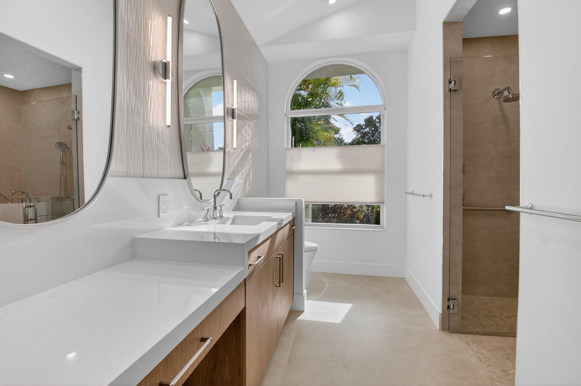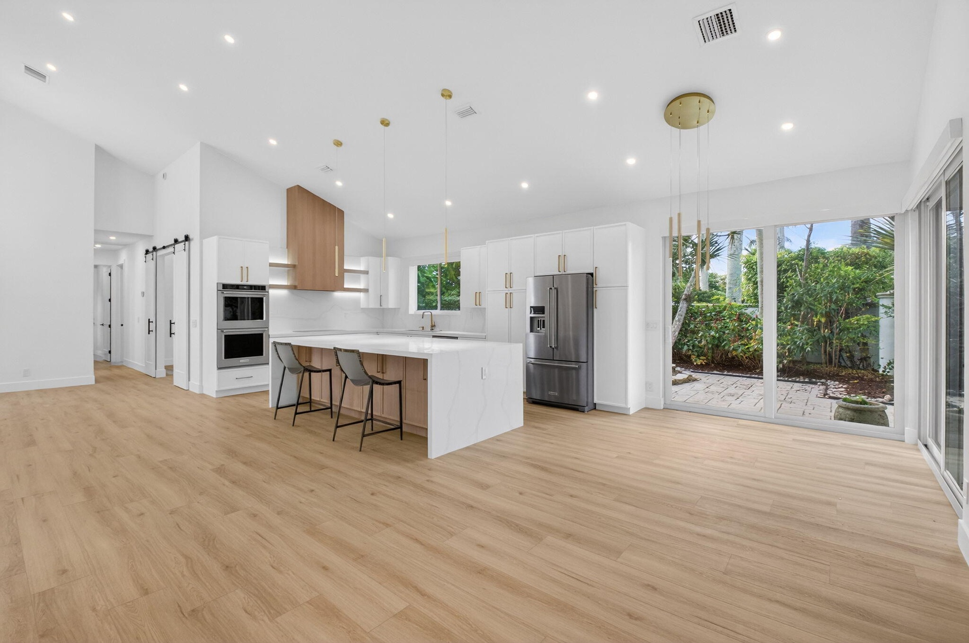 Experience modern luxury and effortless living in this beautifully renovated one-story home located in the desirable Village of Whisper Trace in Broken Sound Country Club. Offering 3 bedrooms, 2 bathrooms, and 1,841 square feet, this residence showcases stylish finishes, sophisticated design, and exceptional comfort. Step inside to soaring volume ceilings and an open great-room floor plan ideal for everyday living and entertaining. The stunning chef-inspired kitchen features a dramatic waterfall island, sleek white cabinetry, elegant gold hardware, double wall ovens, and electric window treatments throughout for convenience and style. The split bedroom layout provides privacy, while the primary suite offers a peaceful retreat with a spacious walk-in closet and a spa-like en suite bath with separate soaking tub and glass-enclosed shower. Enjoy year-round outdoor living with a screened-in covered patio overlooking a serene fully enclosed backyard enhanced by mature tropical landscaping. Additional upgrades include impact windows and doors and a full-house generator, ensuring comfort and peace of mind. Available for annual rental with a Sports Membership, this exceptional home offers the best of South Florida living within the prestigious Broken Sound Country Club community.