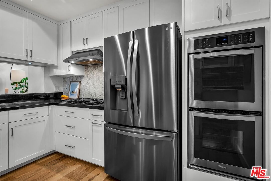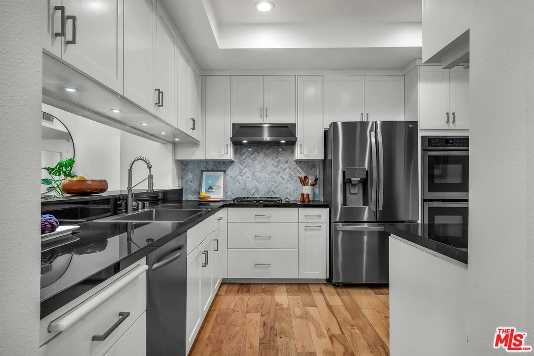 Welcome to this beautifully remodeled condo in one of Brentwood's most desirable locations, boasting a 90 Walk Score to some of the area's best restaurants, cafe's, and markets. Warm, inviting & thoughtfully designed, this home offers gleaming wood floors, recessed lighting, stylish built-ins, & an easy, natural flow throughout. The bright lanai, converted from the original balcony & incorporated into the square footage, creates a lovely bonus living space. Perfect for morning coffee, a home office nook, or winding down at the end of the day. Entertain effortlessly from the breakfast bar, wet bar in kitchen or dedicated dining area. The open chef's kitchen features a 4-burner cooktop, double ovens, granite countertops, stainless steel appliances, wine fridge & ample cabinetry. The layout offers 2 bedroom suites positioned on opposite sides of the unit for optimal privacy. Each bathroom has been beautifully upgraded with floating double vanities, & custom tile. The spacious primary suite opens seamlessly to the lanai & its bathroom features a spa-like bath with a soaking tub, separate shower & generous closet space. Just off the kitchen is your own enclosed laundry room with extra storage. Additional upgrades include a new HVAC system (Fall 2025) & newer water heater, washer/dryer, & refrigerator. The well-run complex offers a newly updated gym with paid Tonal subscription with doors that open directly to the pool for a resort-style workout experience. The elevator received a new operating system in 2023. Two-car covered parking, 6 guest spaces, a large on-site storage unit & a bike room complete this lovely new home.