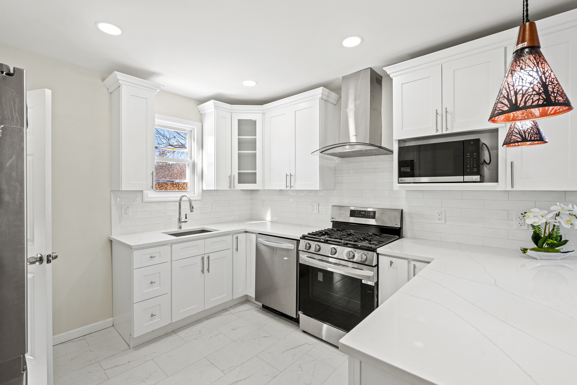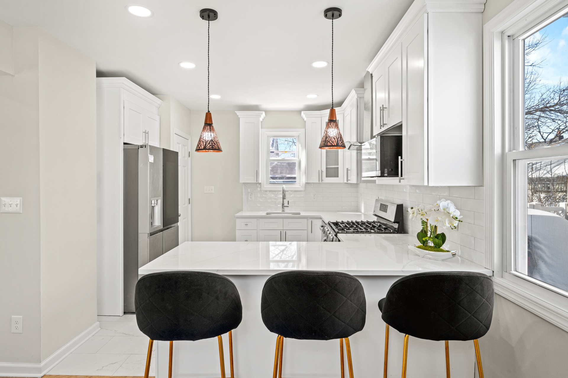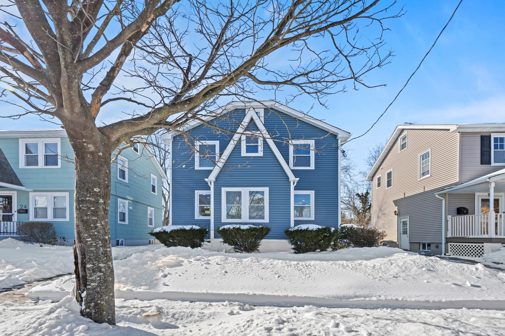 Outside, the property features a private driveway and an impressive three-car garage, providing exceptional parking and storage capacity. The exterior presents a clean and polished curb appeal that mirrors the interior renovation.