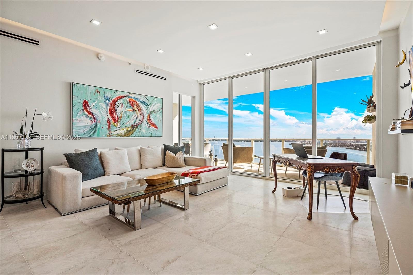 Fully remodeled 2-bed, 2.5-bath residence at Paramount Bay with two private balconies showcasing unobstructed Biscayne Bay and city views. This elevated residence features Calacatta marble floors, custom kitchen with floor to ceiling cabinets, premium appliances and wine cooler, tastefully renovated bathrooms and walk-in closets, custom built-ins, automated shades, as well as new custom doors and balcony flooring. Additional highlights include a large sized den, private foyer, laundry room, 2 parking spaces, and storage space. Residents enjoy resort-style amenities including sunrise and sunset pools, spa, fitness center, theater, BBQ area, game room, club room, and full-service concierge. Situated in Miami's Edgewater, steps from dining, shopping, entertainment, and Margaret Pace Park, with easy access to Miami Beach and Downtown.