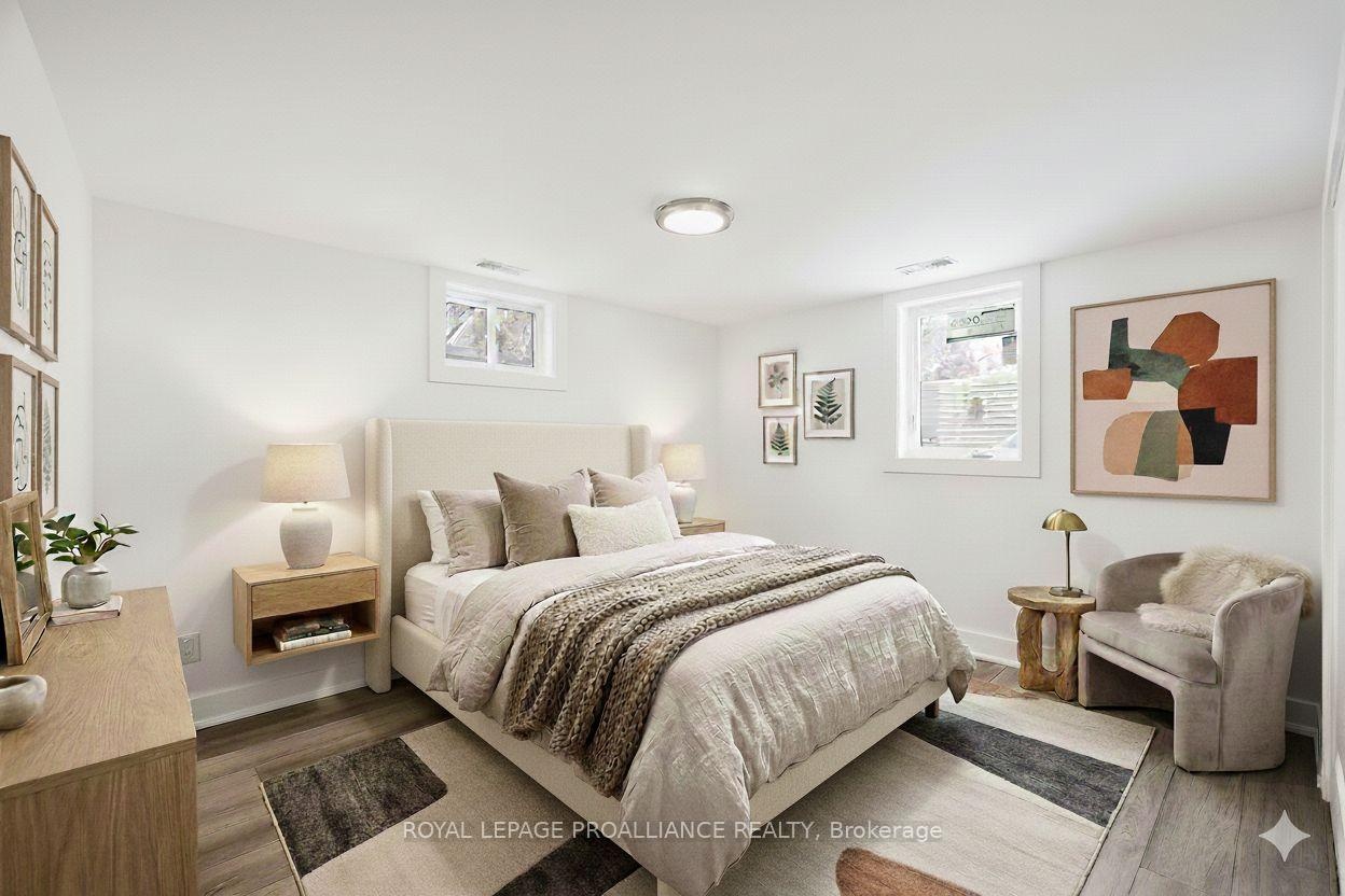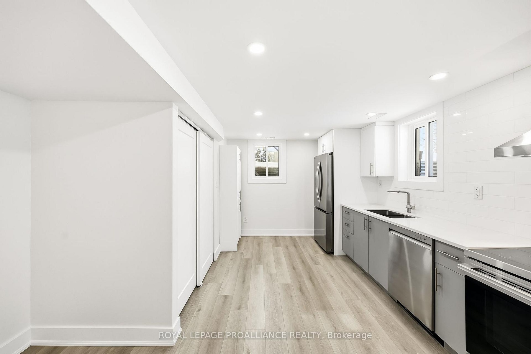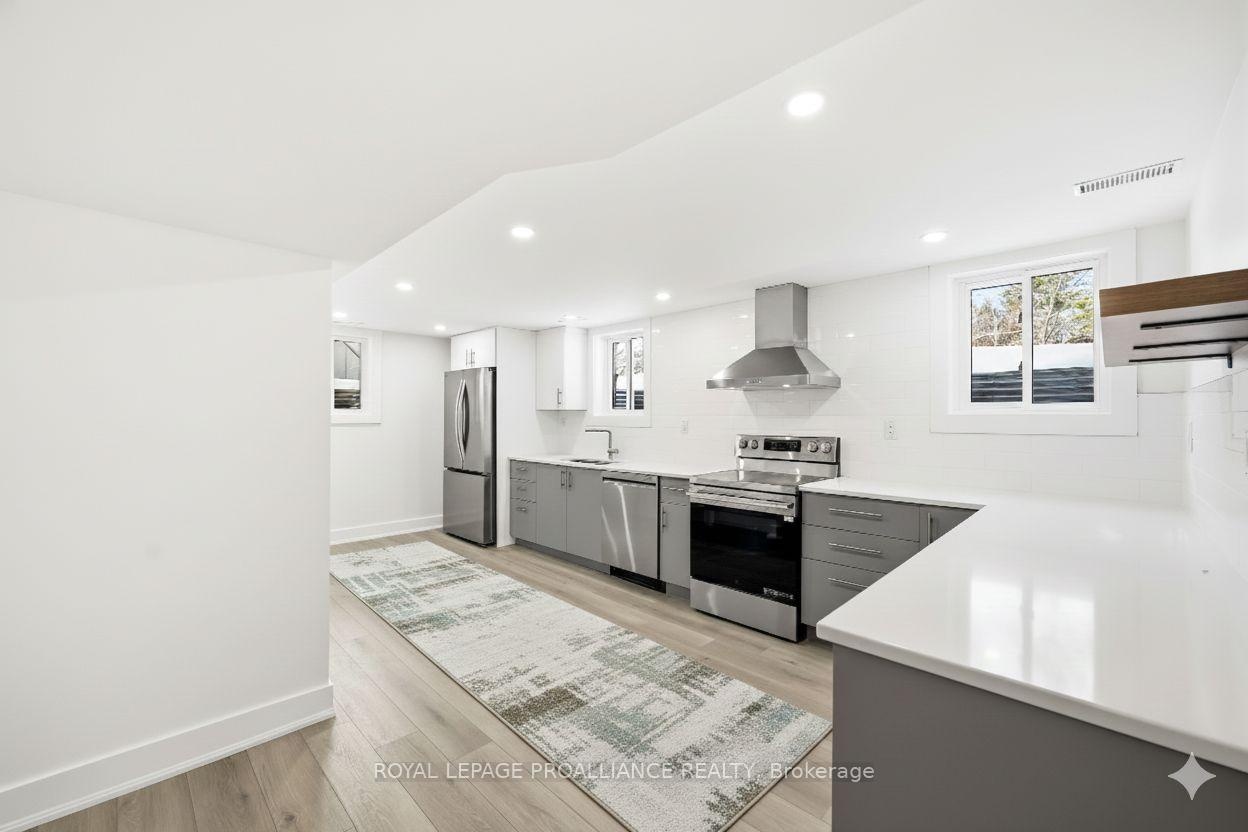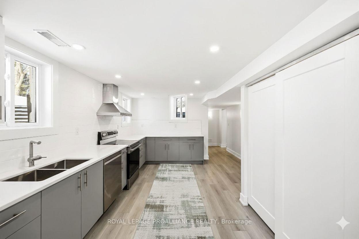 Brand new, completely legal, and all inclusive for $2250! With sound barriers and fire code compliant, this lower level apartment with high-end finishes is what you have been looking for. With great flow, this apartment has in-suite full size laundry, 2 bedrooms, spacious closets, a large 4 piece bathroom with heated floors, and an amazing living area. The huge eat-in kitchen features quartz counter tops, brand new appliances, and tons of natural light. Included is 1 garage parking spot and 1 driveway spot! Completely separate entrance from both the garage and patio, as well as private deck and an expansive back yard. Located on a quiet, tree-lined street just steps from the shores of Lake Ontario, you do not want to miss this opportunity. Welcome home.
