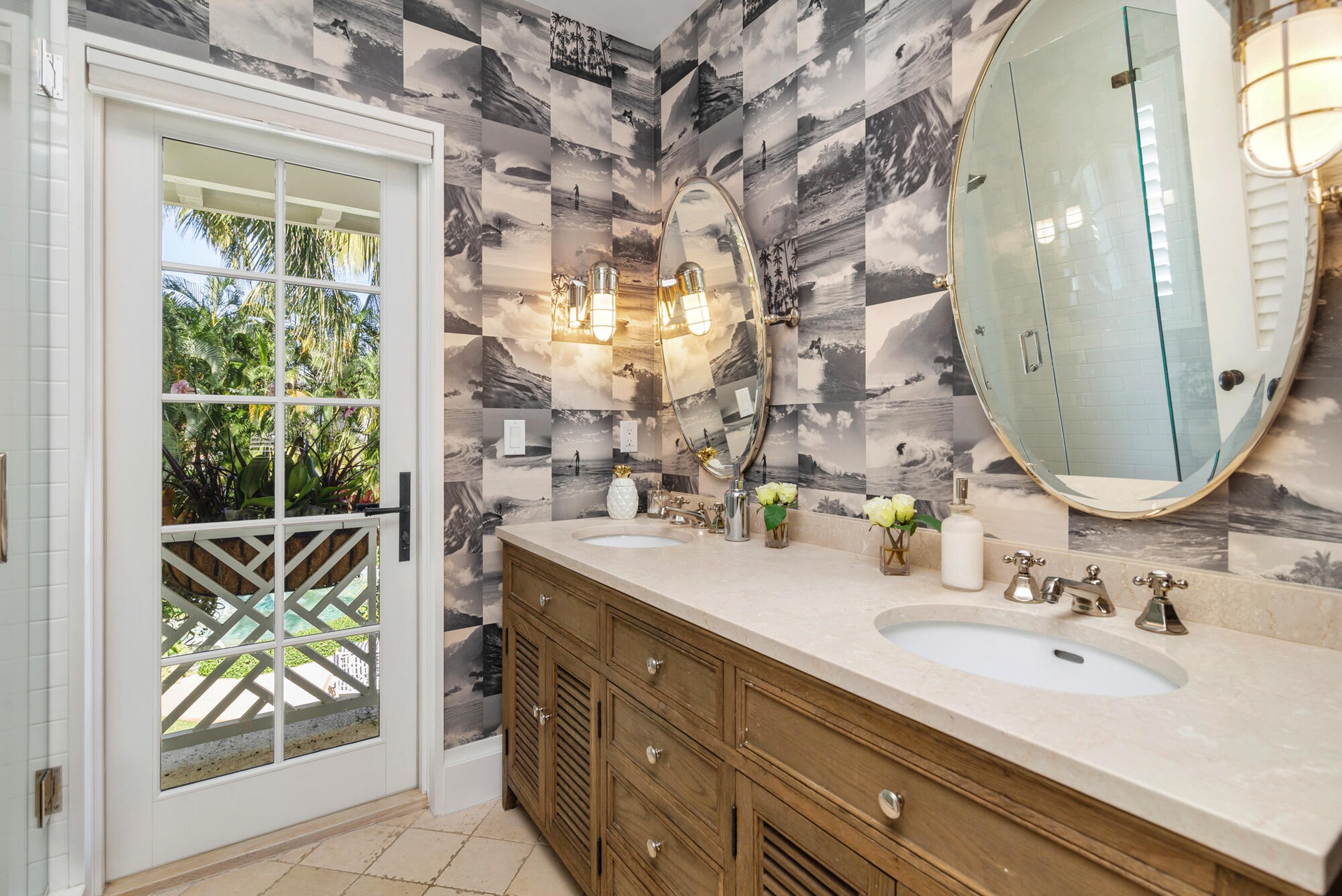 Outdoors, the property lives as a private resort, with a heated pool and spa, generous terraces for lounging and dining, and a backyard oasis highlighted by an artistic living wall. The private dock includes a 50,000-pound boat lift, accommodating substantial vessels with ease.