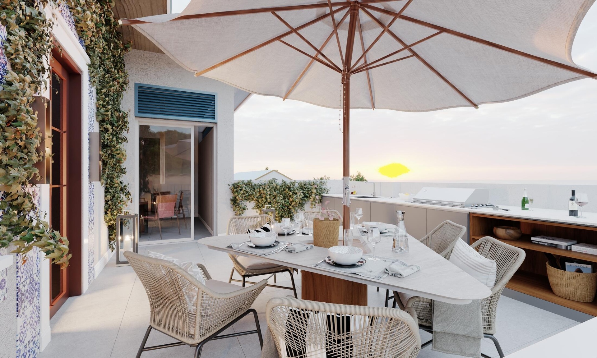 Each residence features floor-to-ceiling windows and dual private terraces, and an in-unit private elevator, maximizing convenience, natural light and outdoor living. The second-floor garden terrace includes a cocktail pool with integrated seating, while the rooftop garden deck offers an outdoor summer kitchen and optional fourth bedroom or lanaiperfect for entertaining or retreating in peace.