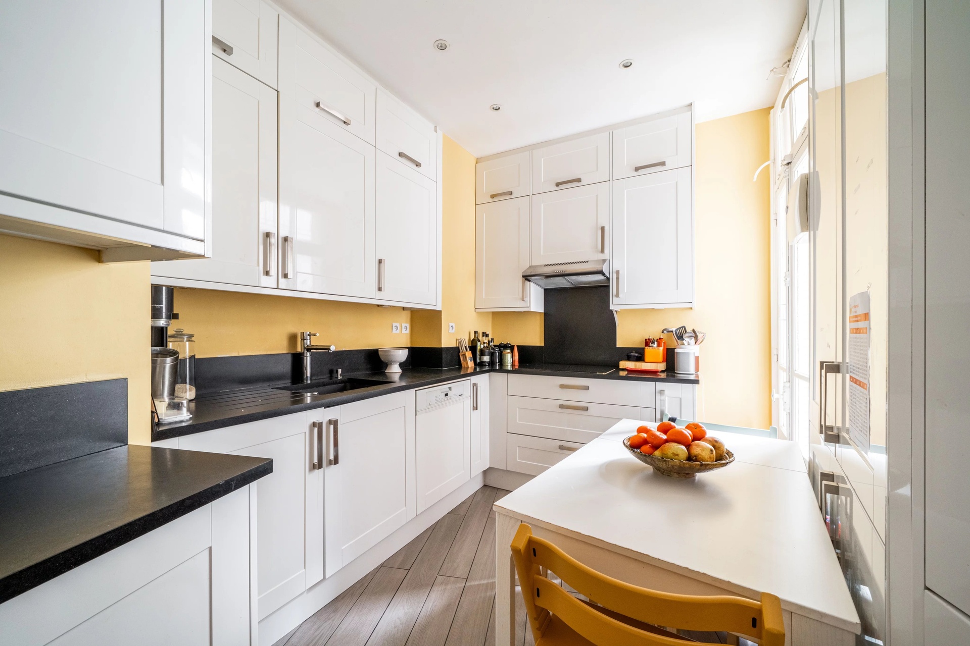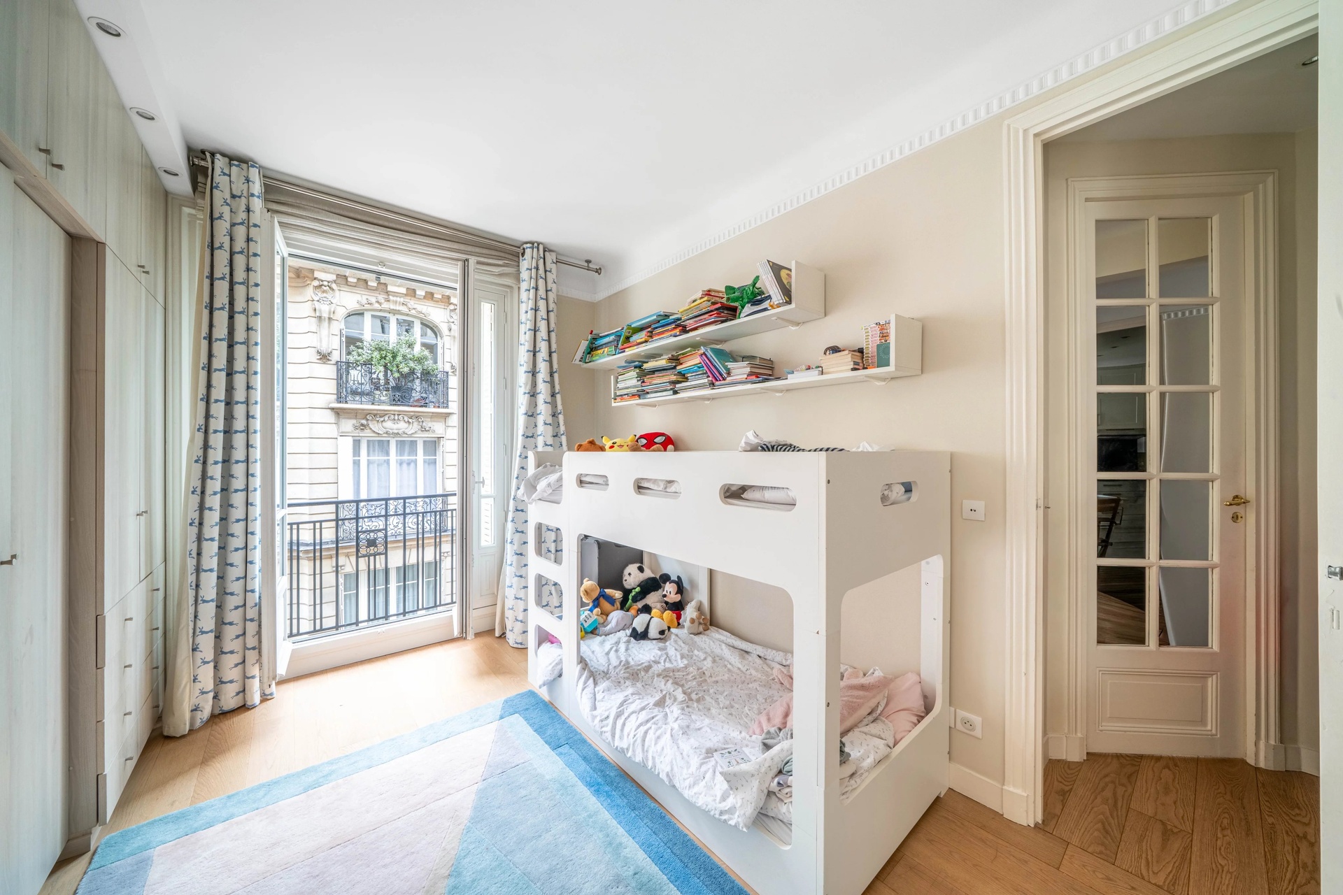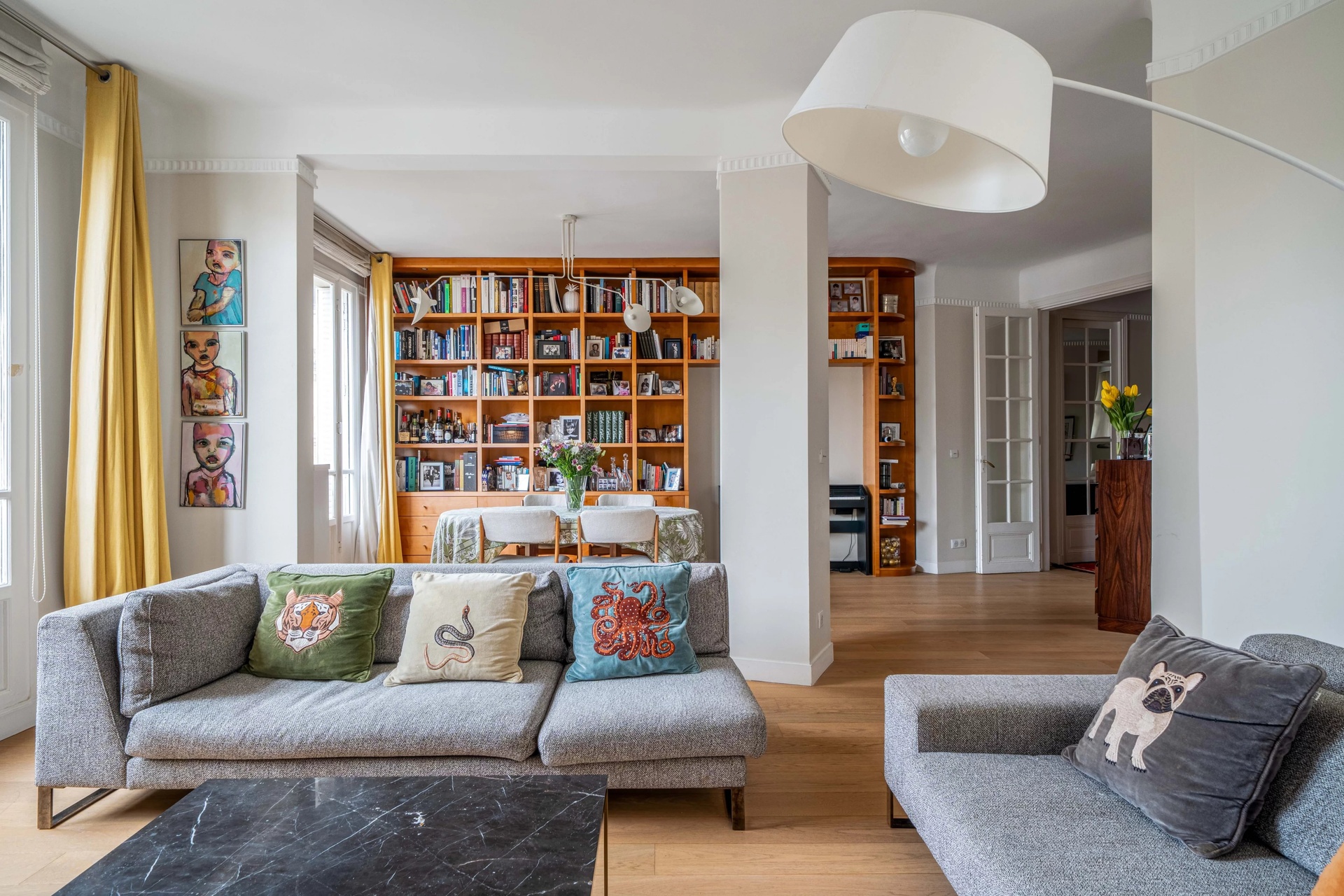 In a luxury condominium with janitor, built in the 20's, located rue Paul Séjourné, on the 3rd floor above the entresol (equivalent to 4th floor) with elevator, a 5-room apartment of 106.91 m2 loi Carrez comprising: an entrance gallery, a vast double corner living room of over 43 m2, a large kitchen, three bedrooms, a bathroom with toilet and plenty of storage space.