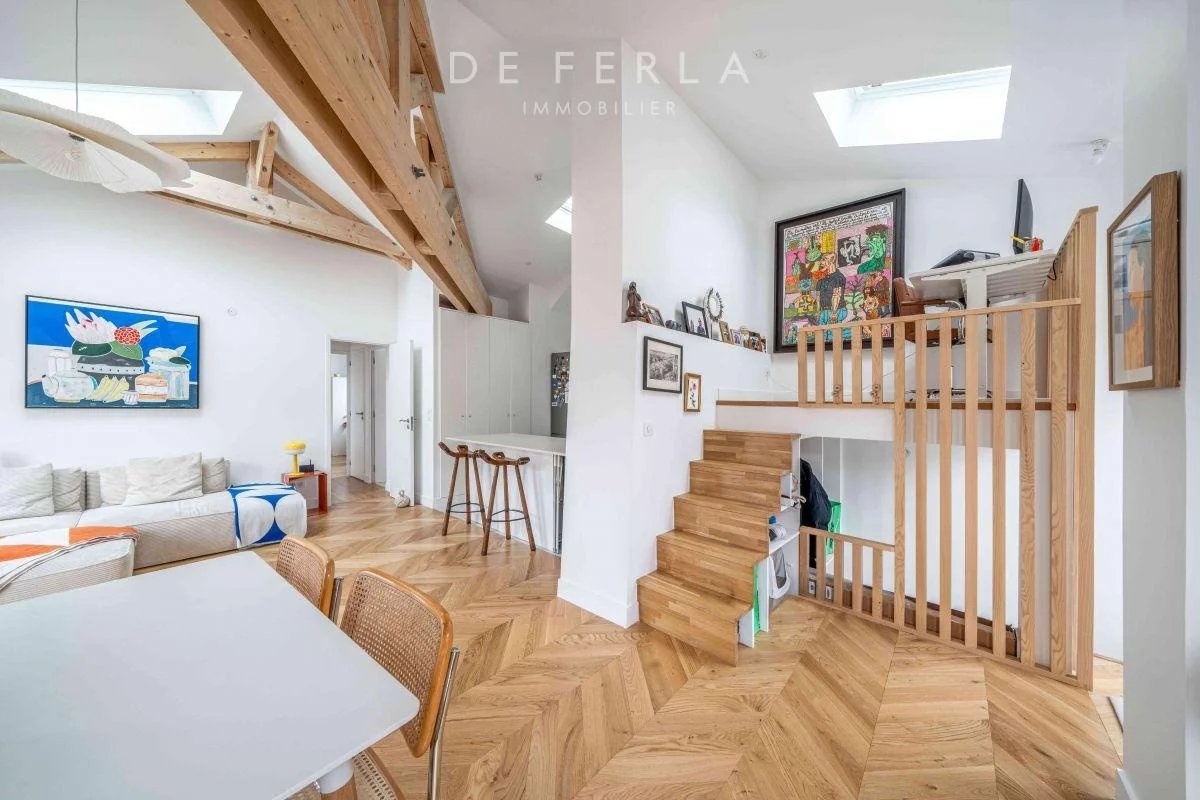 Magnifique appartement duplex de 105 m2 avec 30 m2 d’espaces extérieurs Situé en dernier étage, cet appartement lumineux et calme offre une superficie totale de 105 m2, agrémentée de deux superbes balcons filants. Le premier niveau comprend un appartement de 34 m2 composé d’une entrée, d’un séjour avec cuisine ouverte, d’une chambre avec accès au balcon filant et d’une salle de bains avec WC. À l’étage supérieur, un vaste séjour baigné de lumière donne sur un grand balcon filant. Vous y trouverez également une salle à manger, un salon, une cuisine semi-ouverte aménagée et équipée, une suite parentale avec dressing et salle d’eau, une chambre supplémentaire, une salle de bains et un WC indépendant. Ce bien de charme, en excellent état, allie prestations modernes, beaux volumes et un agencement atypique. Avec sa luminosité exceptionnelle et son calme absolu, cet appartement unique saura vous séduire.