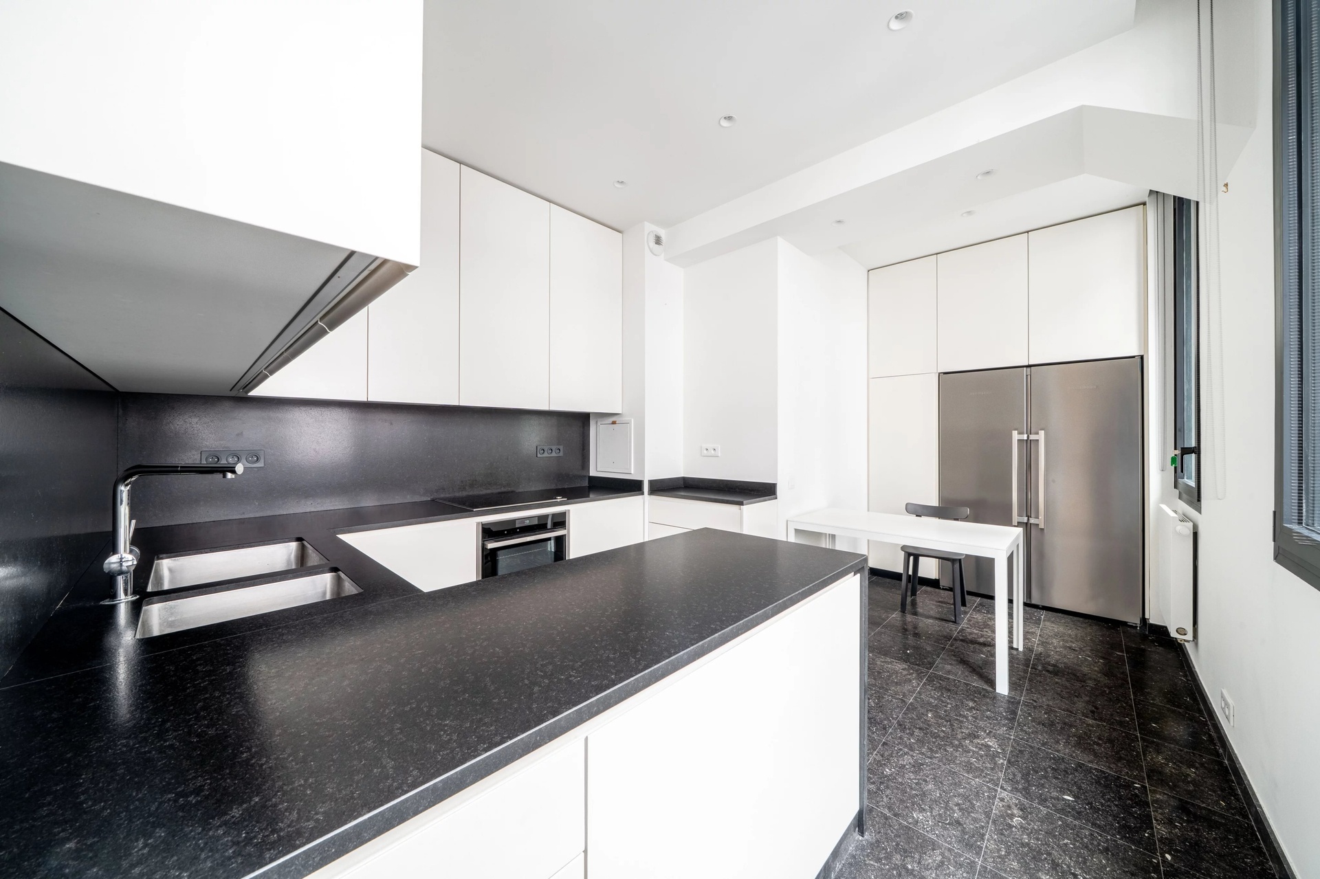 The fully fitted and equipped galley kitchen has been custom-built with top-of-the-range materials, combining design and functionality.