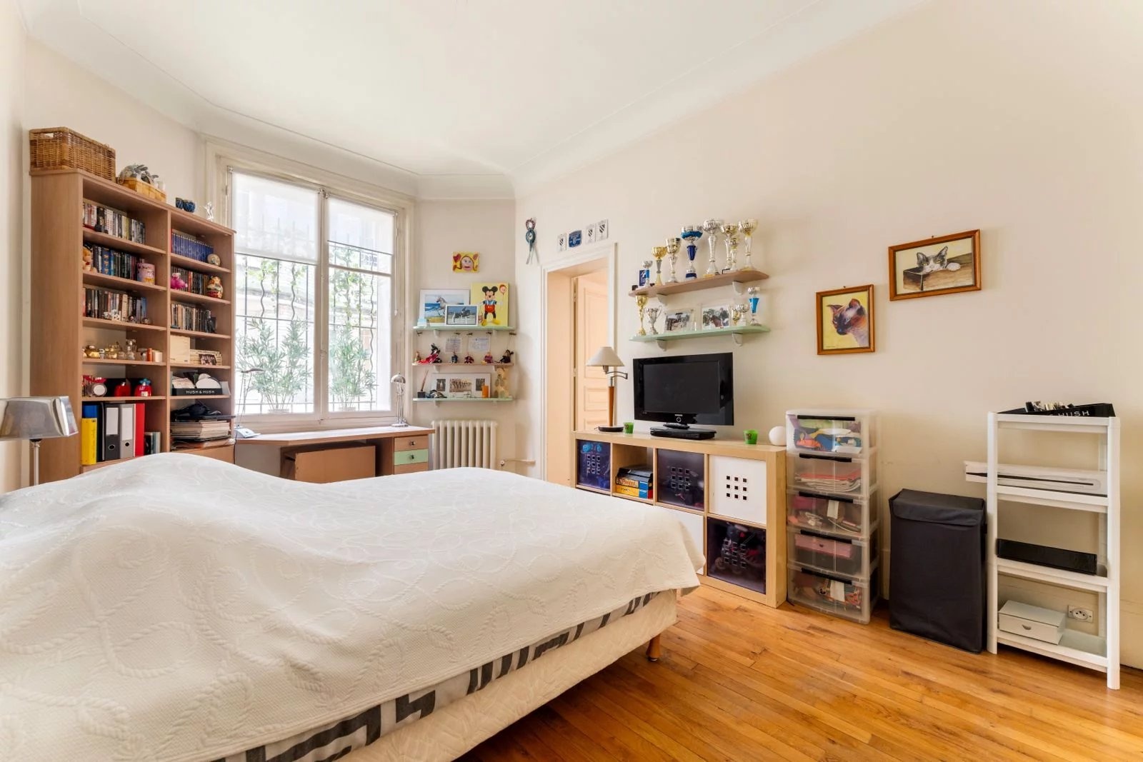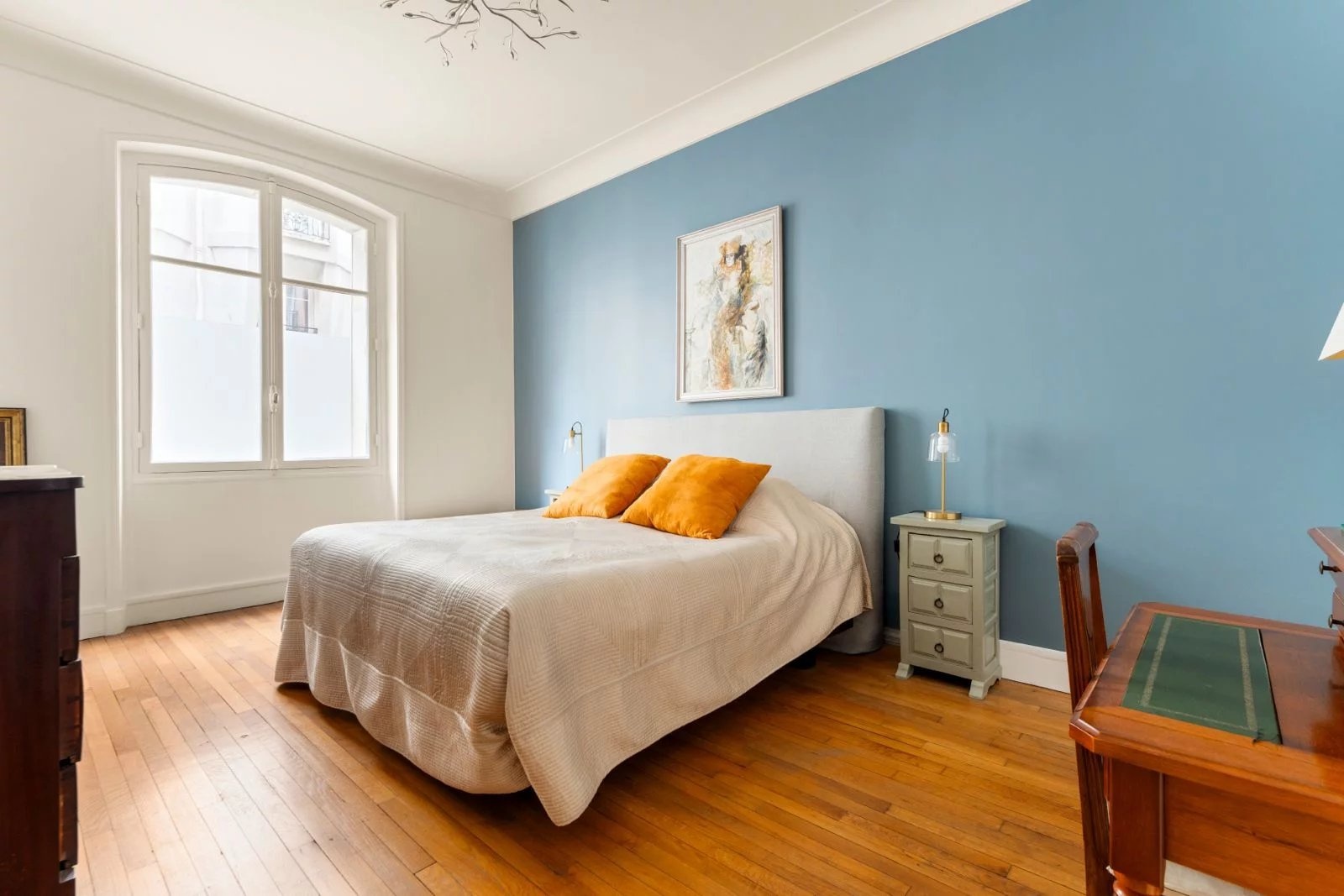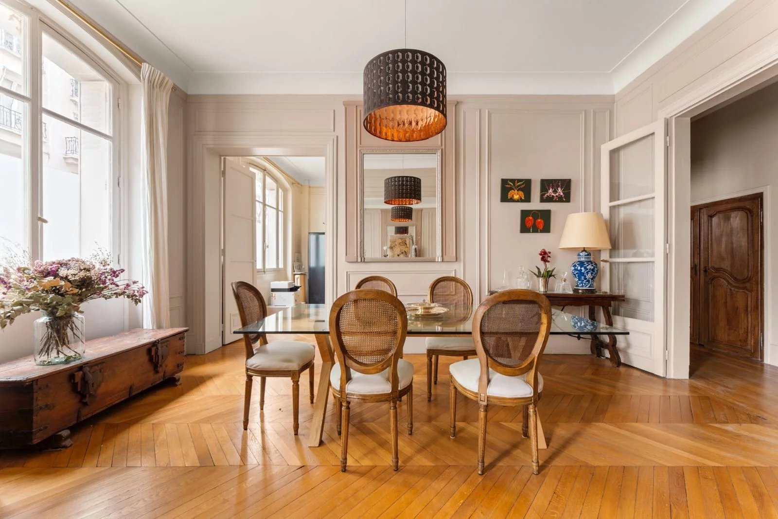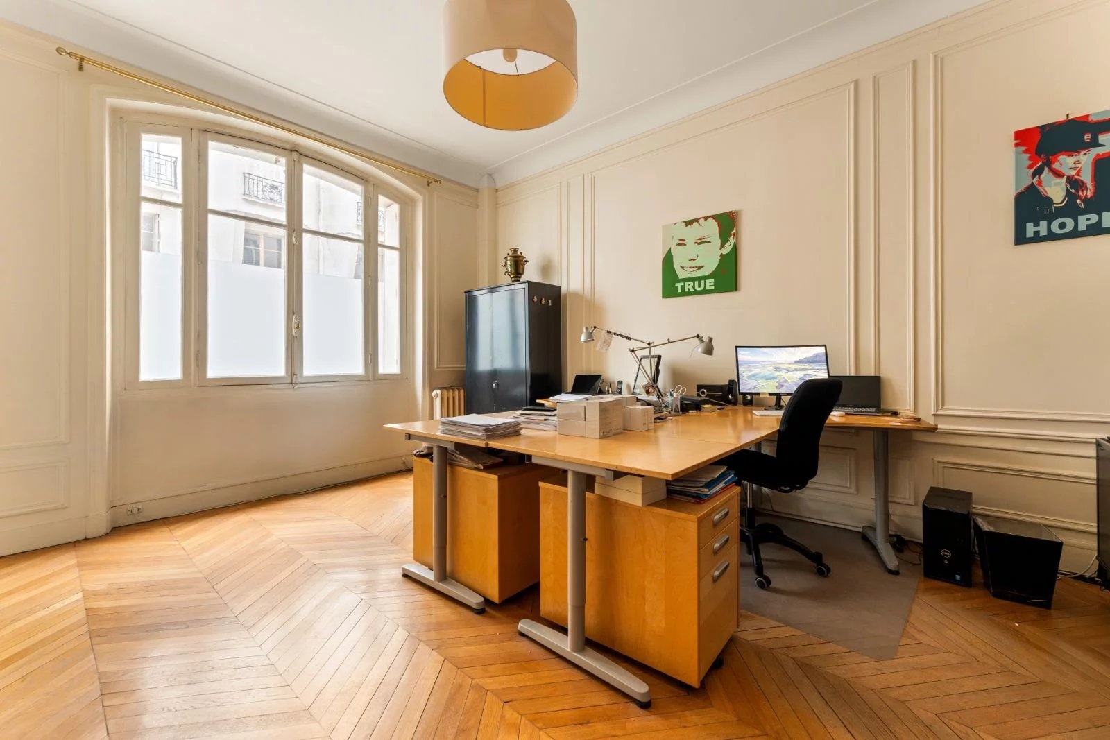 L’agencement, propose une double réception, quatre chambres dont une suite avec salle de douche privative, une grande cuisine dînatoire, une salle de bains, une seconde salle de douche et des WC séparés, avec une distinction agréable entre les espaces de réception sur rue et l’espace nuit au calme sur cour. Une chambre de service de 9 m2 est disponible en option, deux caves complètent le bien, et l’exercice des professions libérales est autorisé, offrant une réelle possibilité d’usage mixte.