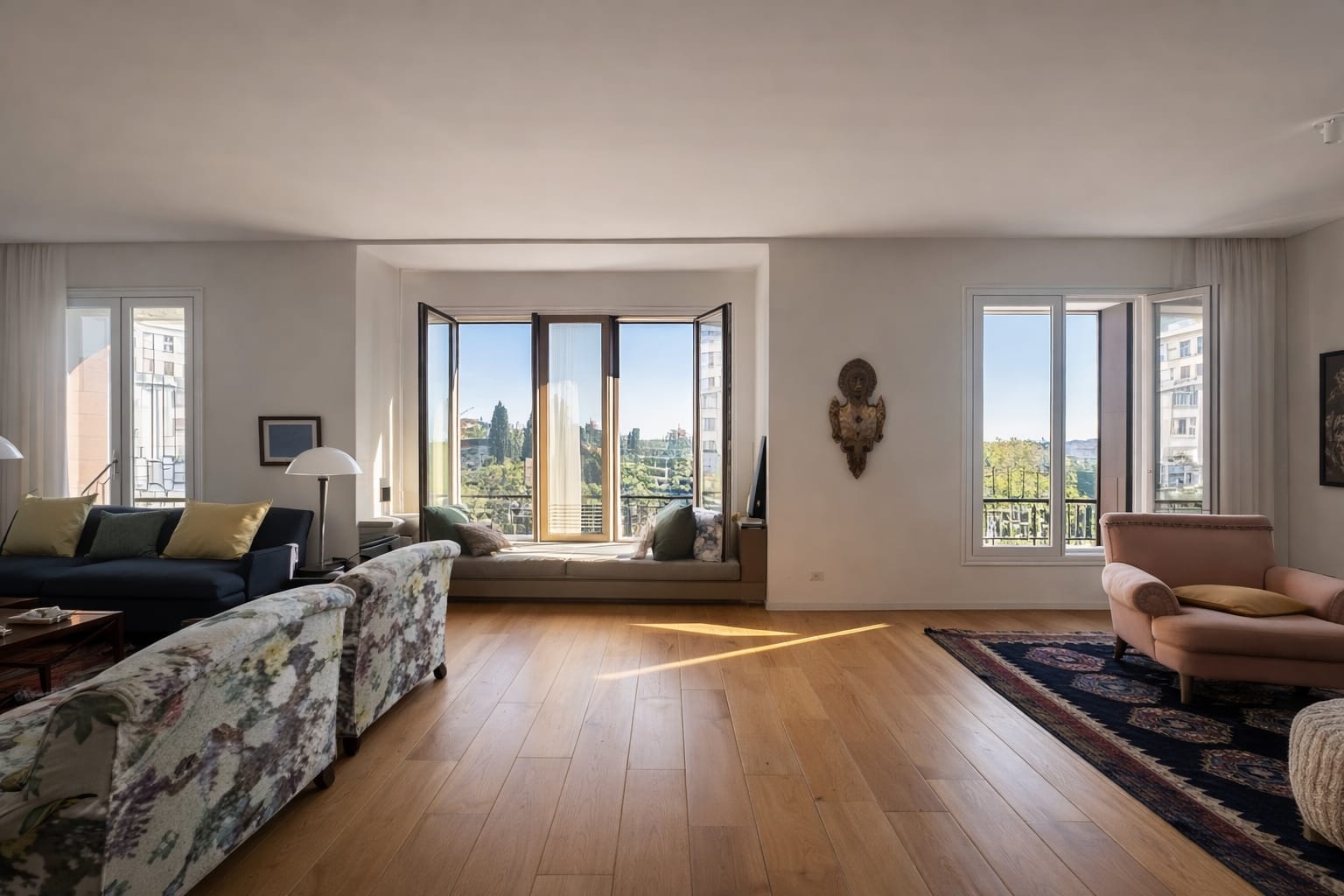 An exceptional fourth-floor residence available for rent, offering breathtaking south-facing views over the Botanical Garden, set within an elegant 1930s landmark building with high ceilings, concierge service, and a classic lift.