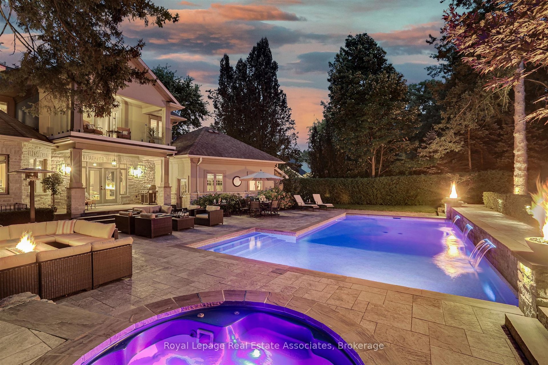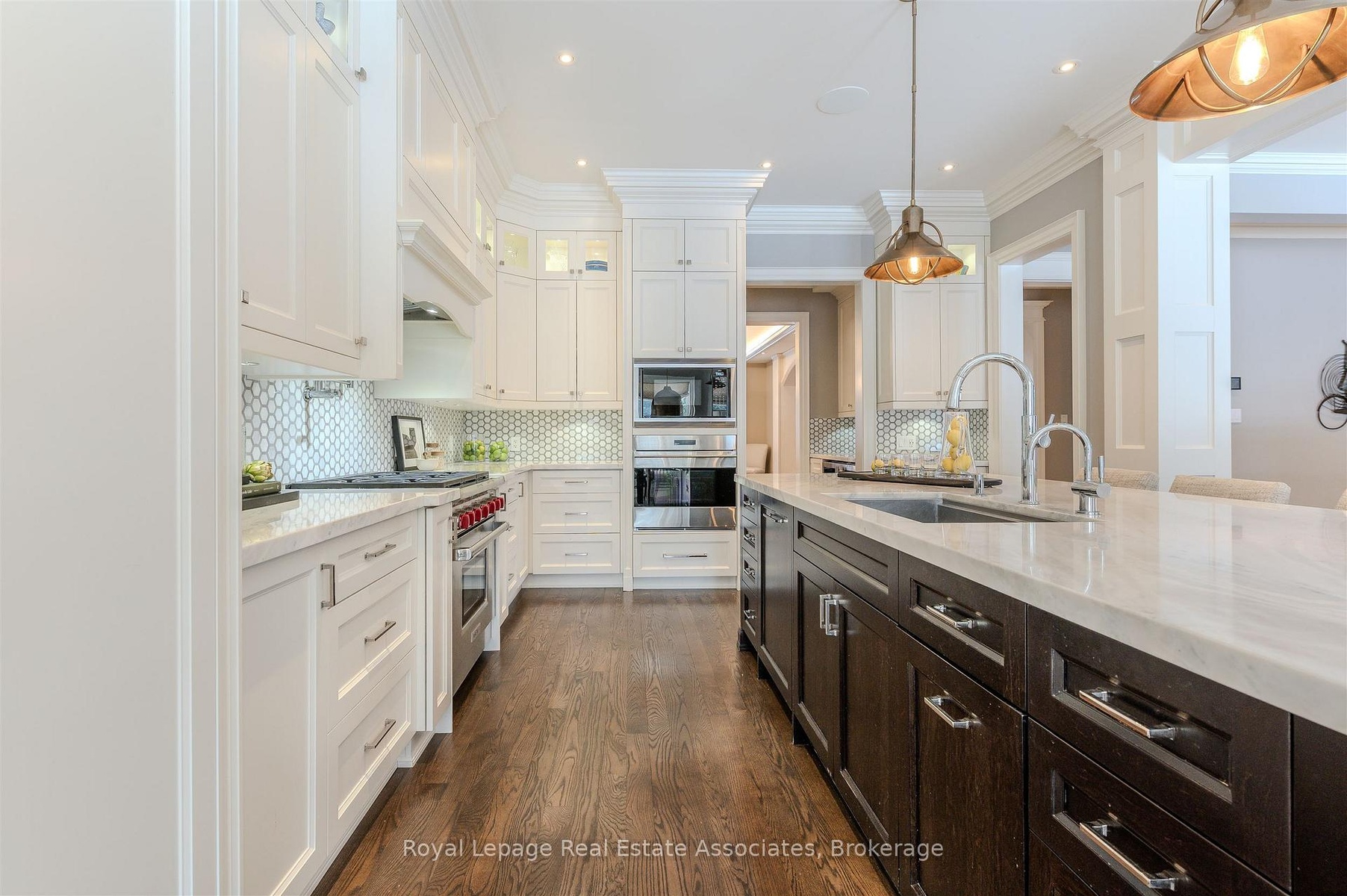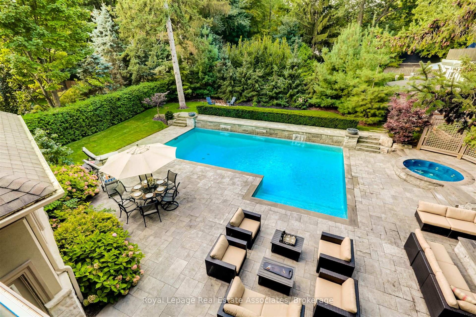 Welcome to 1456 Glenburnie Road, offering approximately 6700 square feet of luxurious custom finishes on one of the top streets in prestigious Mineola West. Over $1.0M has been thoughtfully invested in recent upgrades. This move-in-ready residence offers an open, light-filled layout that's perfect for everyday living and entertaining. The open-concept kitchen was redesigned with high-end appliances (Wolf, Sub-Zero, Miele), custom cabinetry, stone countertops and a large island for casual dining. A generous dining room provides ample space for entertaining, and a stunning butler's pantry adds convenience and storage. The family room features a gas fireplace and coffered ceiling and opens to a private backyard oasis with an inground saltwater pool, hot tub, fire pit, decorative fire bowls and multiple outdoor entertaining areas. There is even a large grass area ideal for a playset or badminton net. Upstairs, the primary suite is a peaceful retreat with an updated ensuite bathroom, an oversized walk-in closet, and a serene balcony/terrace overlooking the stunning backyard and wooded area. Four additional, well-sized bedrooms offer privacy and comfort for family or guests. The fully finished lower level features in-floor hydronic heating, a wine cellar, theatre room, bedroom, 4-piece bath, and a large rec room with a custom kitchenette, wet bar, and pool table. Situated steps from top-rated schools (Kenollie Public School District - tied for #1 public school in Ontario according to Fraser Institute 2025/2026 report), GO transit, Lake Ontario, parks, shopping and dining, this Mineola West masterpiece combines modern comfort with an unbeatable location. Thoughtfully updated and move-in ready, the home radiates warmth and charm. Schedule a private tour to experience it in person.