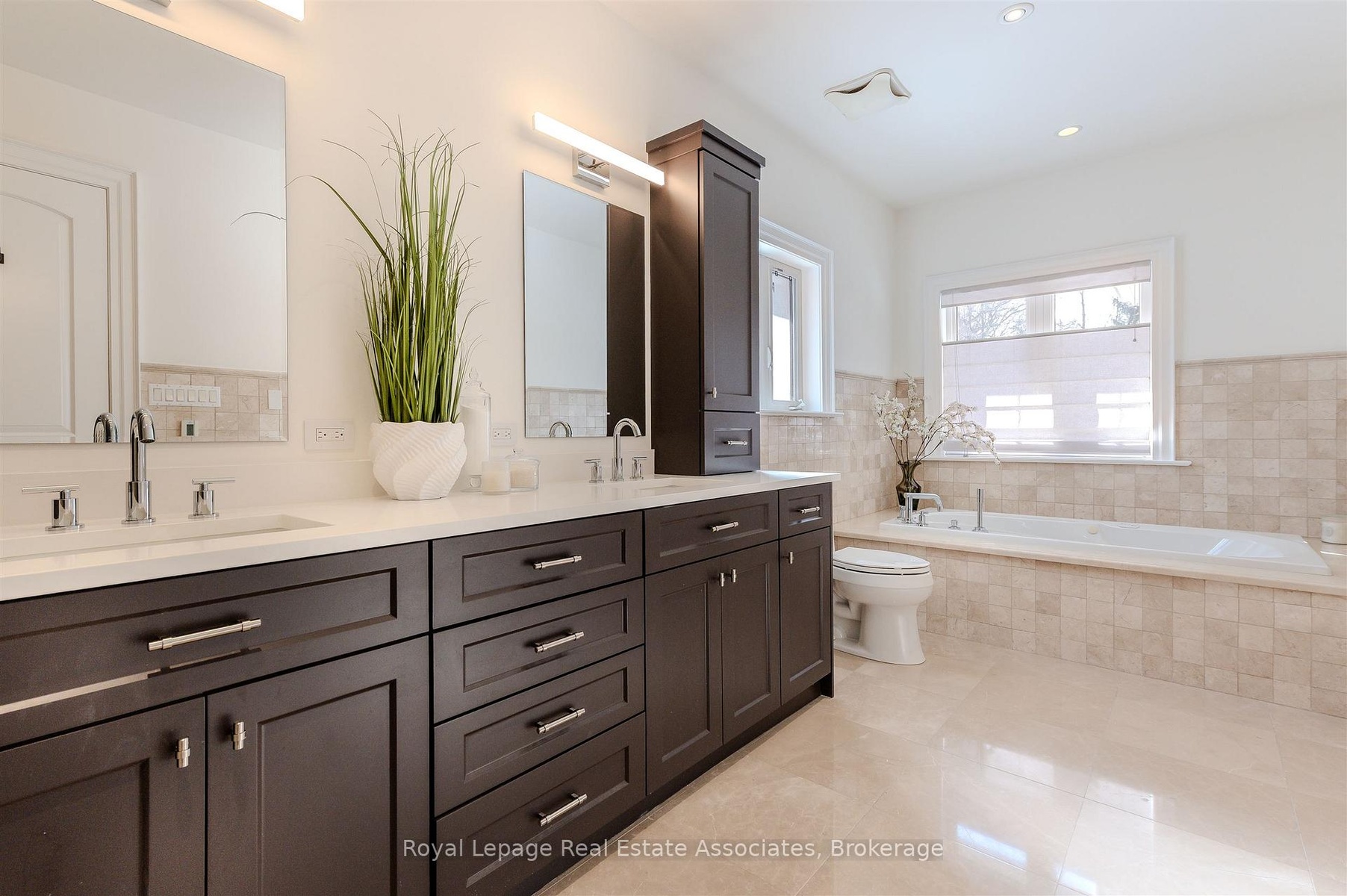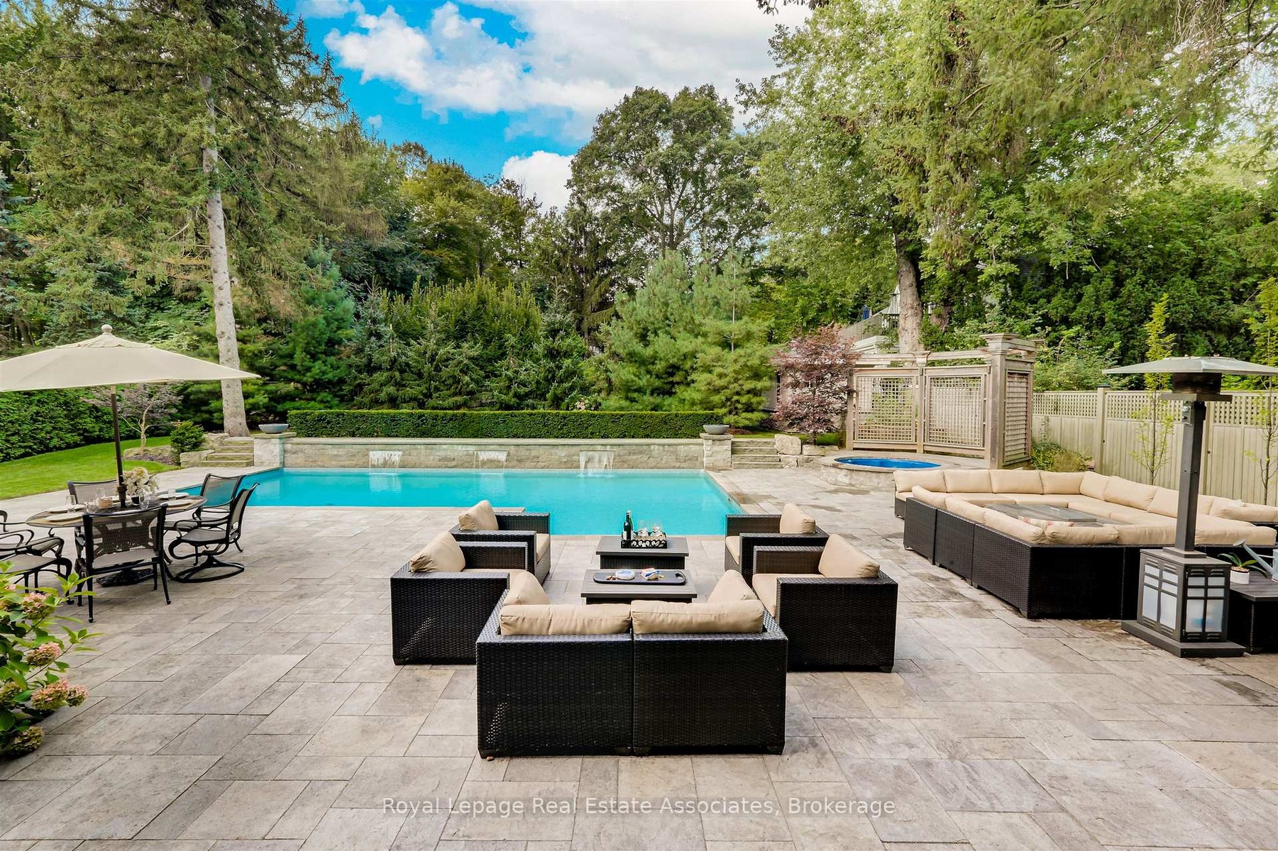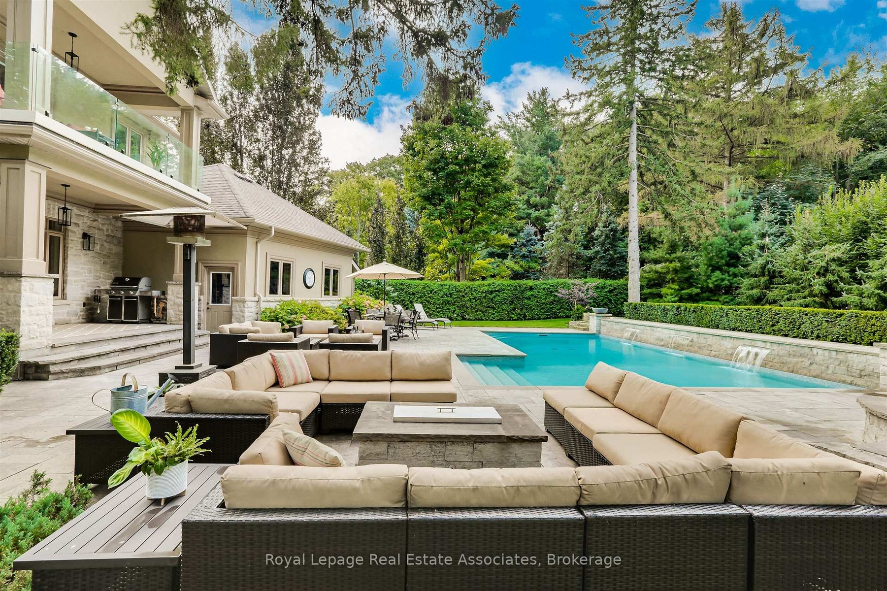 Welcome to 1456 Glenburnie Road, offering approximately 6700 square feet of luxurious custom finishes on one of the top streets in prestigious Mineola West. Over $1.0M has been thoughtfully invested in recent upgrades. This move-in-ready residence offers an open, light-filled layout that's perfect for everyday living and entertaining. The open-concept kitchen was redesigned with high-end appliances (Wolf, Sub-Zero, Miele), custom cabinetry, stone countertops and a large island for casual dining. A generous dining room provides ample space for entertaining, and a stunning butler's pantry adds convenience and storage. The family room features a gas fireplace and coffered ceiling and opens to a private backyard oasis with an inground saltwater pool, hot tub, fire pit, decorative fire bowls and multiple outdoor entertaining areas. There is even a large grass area ideal for a playset or badminton net. Upstairs, the primary suite is a peaceful retreat with an updated ensuite bathroom, an oversized walk-in closet, and a serene balcony/terrace overlooking the stunning backyard and wooded area. Four additional, well-sized bedrooms offer privacy and comfort for family or guests. The fully finished lower level features in-floor hydronic heating, a wine cellar, theatre room, bedroom, 4-piece bath, and a large rec room with a custom kitchenette, wet bar, and pool table. Situated steps from top-rated schools (Kenollie Public School District - tied for #1 public school in Ontario according to Fraser Institute 2025/2026 report), GO transit, Lake Ontario, parks, shopping and dining, this Mineola West masterpiece combines modern comfort with an unbeatable location. Thoughtfully updated and move-in ready, the home radiates warmth and charm. Schedule a private tour to experience it in person.
