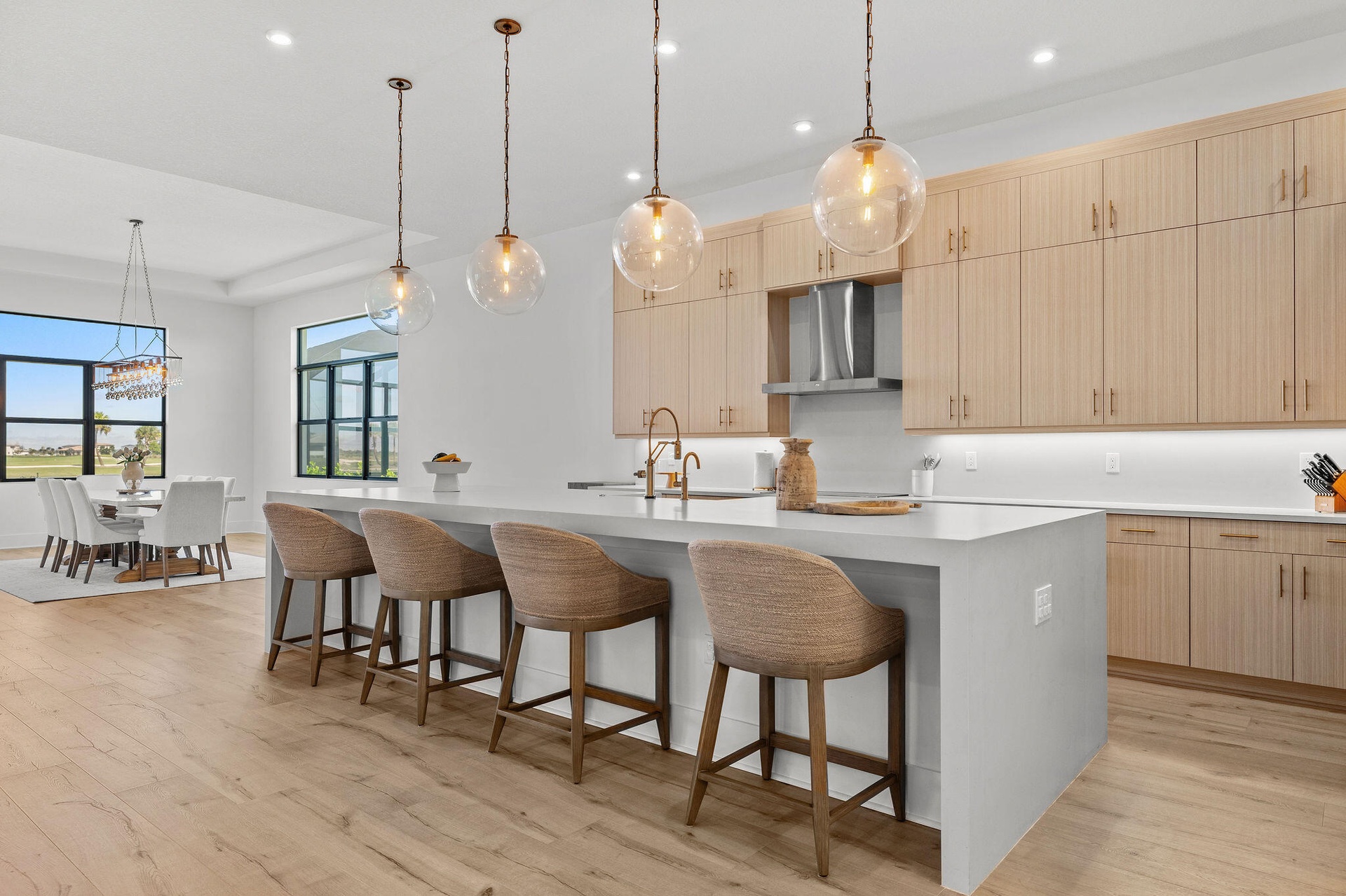 No wait to build—move right in and start enjoying Astor Creek's premier lifestyle. The gourmet chef's kitchen is a true centerpiece, featuring a 36'' cooktop and hood, double wall ovens, second-tier cabinetry, sleek quartz surfaces, and a bar area with wine fridge. A flexible bonus room offers the ideal space for a home office, gym, or media room. Each bedroom includes a walk-in closet and private full bath, enhanced by abundant natural light throughout. With two separate 2-car garages, this turn-key home combines luxury, functionality, and comfort.