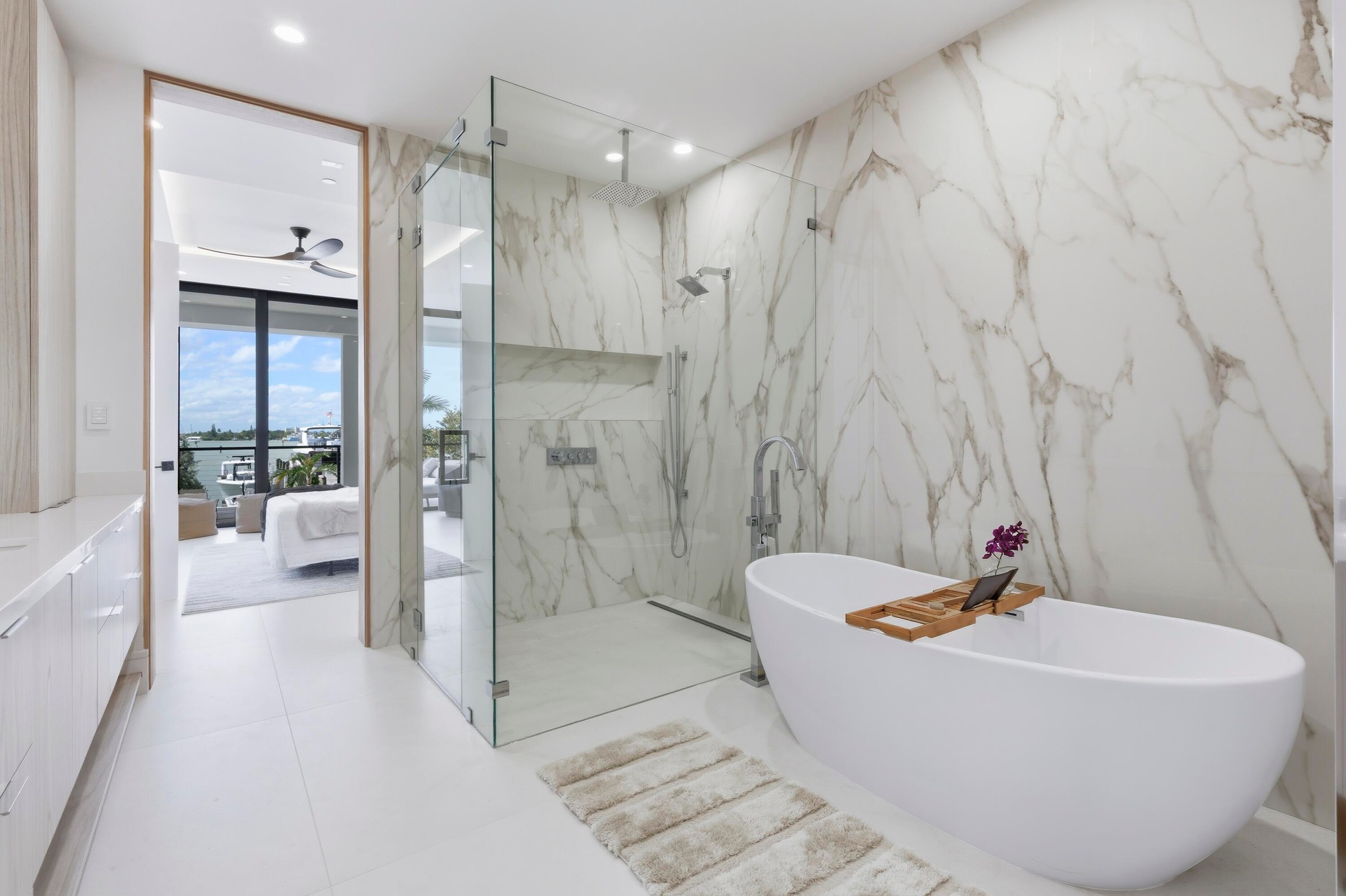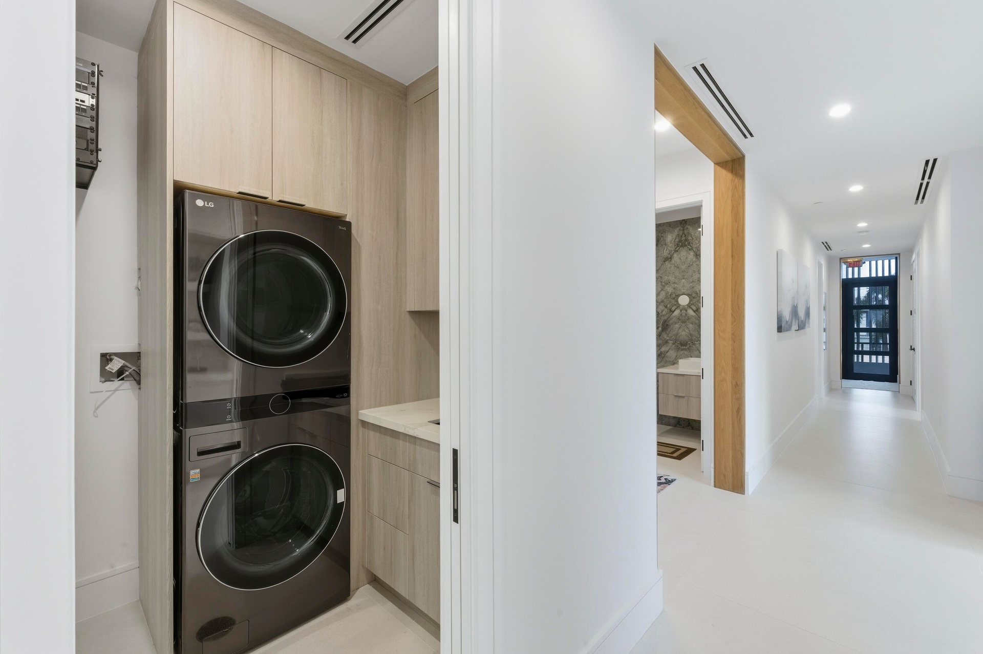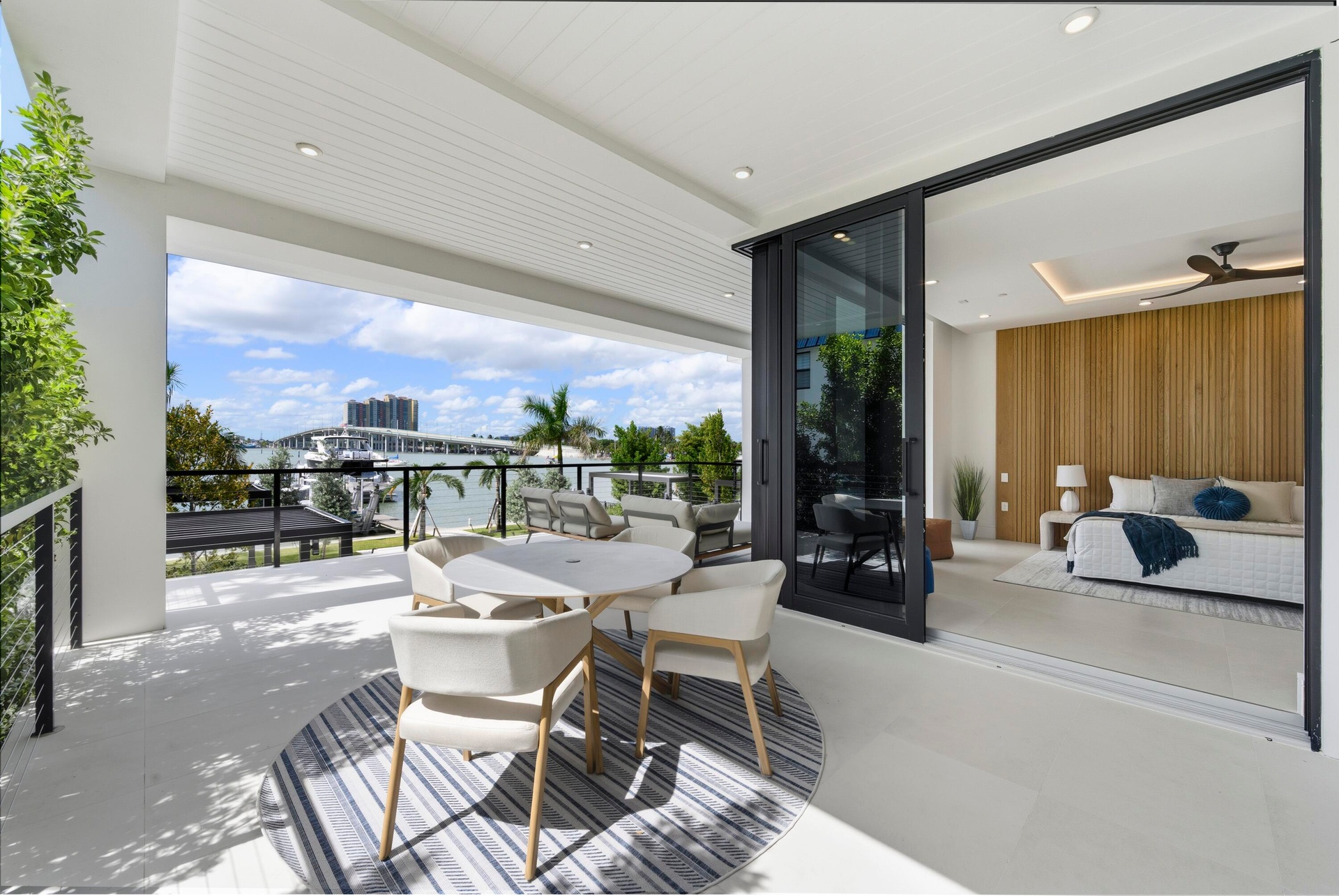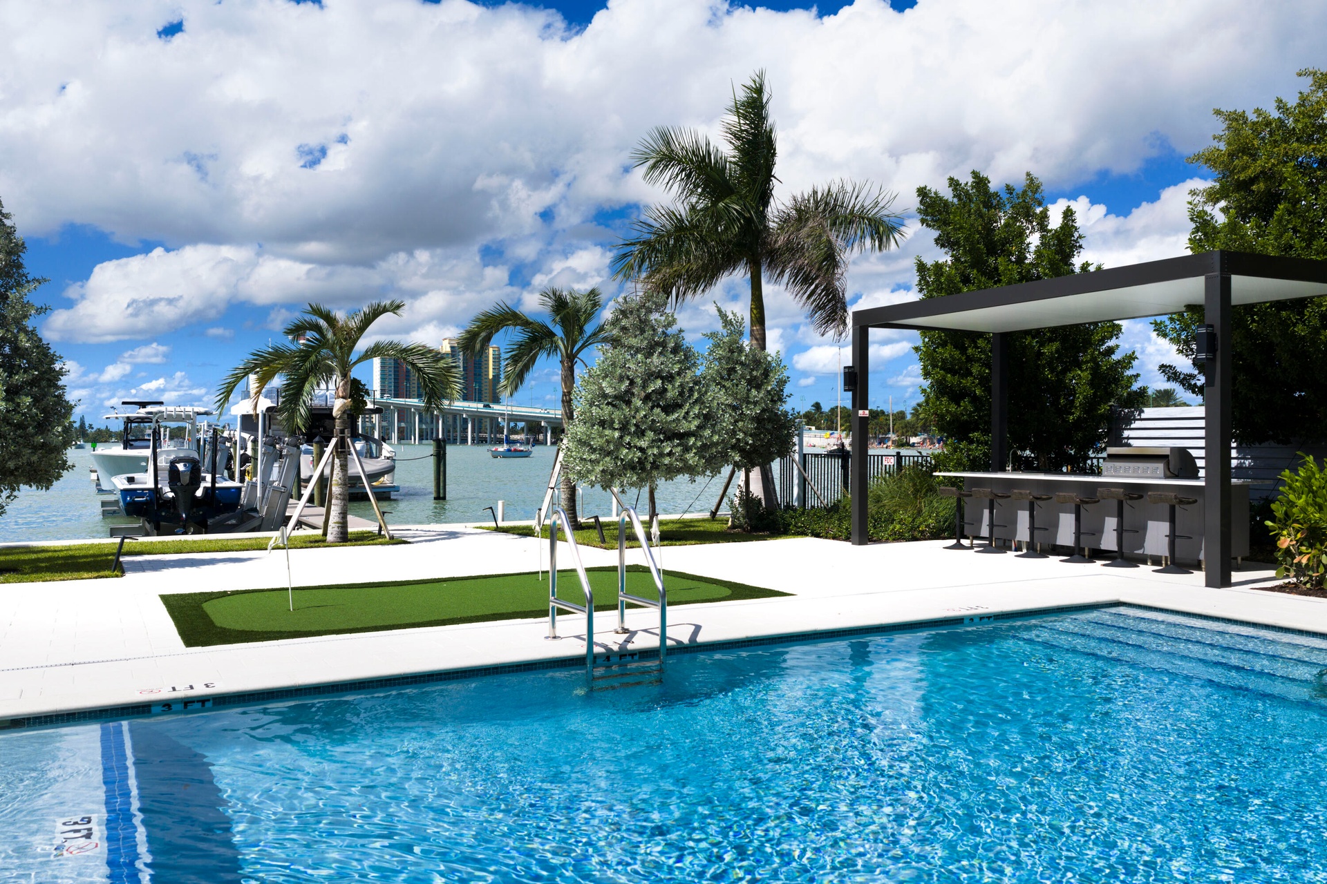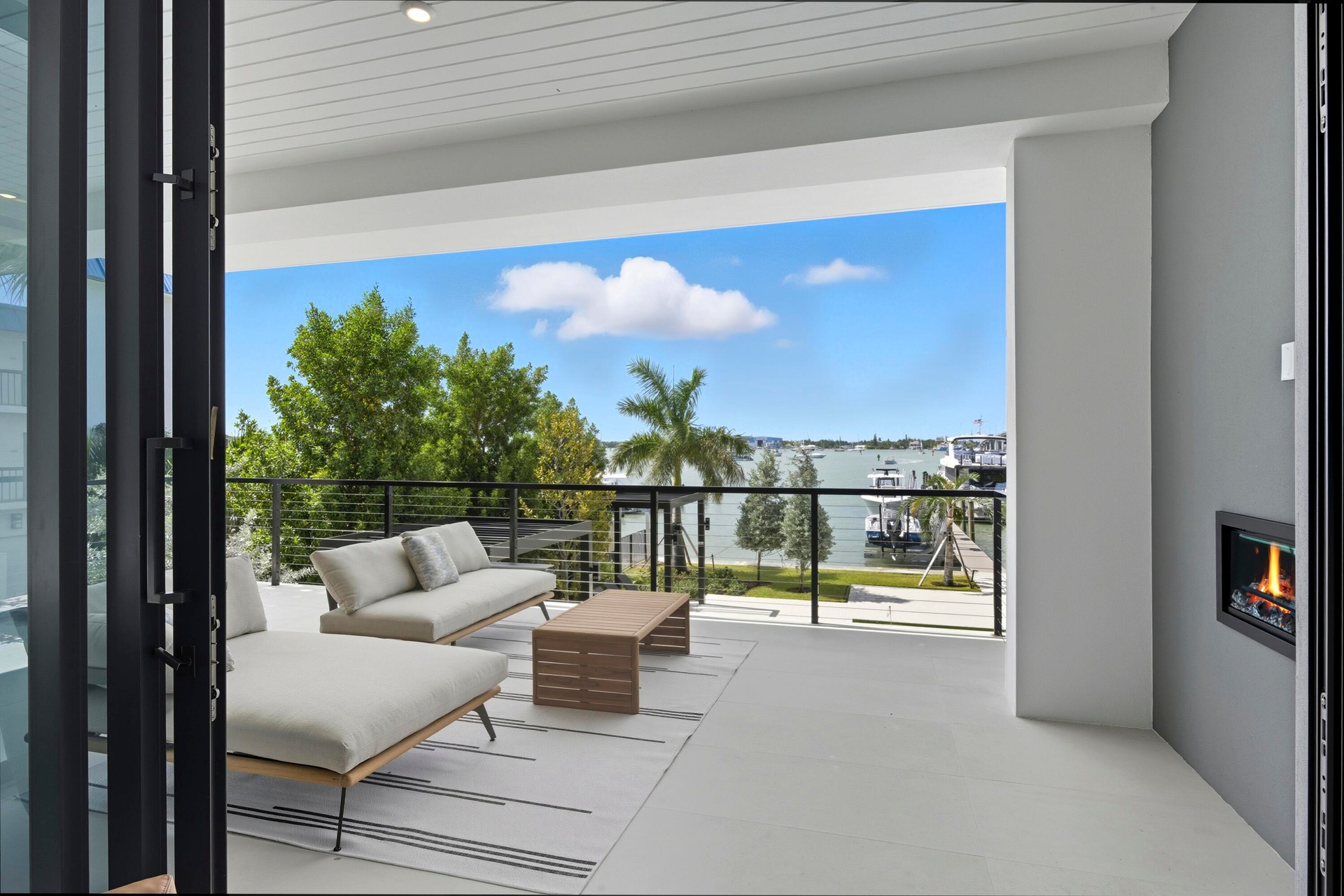 This brand-new 3-bedroom, 3.5-bathroom residence redefines waterfront living with unmatched construction integrity, security, and sophistication. Each bedroom features its own spa-inspired ensuite bath, while the spacious powder room adds convenience for guests. This is true lock-and-leave luxury, starting with your private, air-conditioned 2-car garage with epoxy floors and wired for an EV charger (SEE SUPPLEMENT)... Elevated seven feet above sea level and built atop 146 deep concrete pilings, The Driftwood is engineered for legacy living. It has 12.8'' solid concrete floors, whisper mat underlay, and no post-tension construction to ensure near-silent living with no sag or structural settling. All mechanical spaces, elevator shaft, control, and electric rooms are air-conditioned, further protecting your investment. Indulge in seamless indoor-outdoor living with over 600 sq ft of covered terrace space, complete with a fireplace and panoramic glass sliders. Inside, you'll find nearly 10-foot ceilings, a chef's kitchen with Wolf appliances and a Gaggenau refrigerator, a gas cooktop, dual washer/dryer sets, and an optional turnkey furniture package. Outdoors, enjoy a resort-style pool, hot tub, putting green, and outdoor kitchen, perfect for entertaining. The on-site floating dock offers kayak launch and private docks with water & electric also available, all just minutes from the inlet with no fixed bridges. Own your waterfront lifestyle. Tech-savvy and secure, each unit includes Crestron smart automation, video surveillance, and full access control with fobs, apps, and garage remotes. With low HOA fees, strong reserves & a whole-building water purification, The Driftwood is the most future-proof luxury condo on the market today.