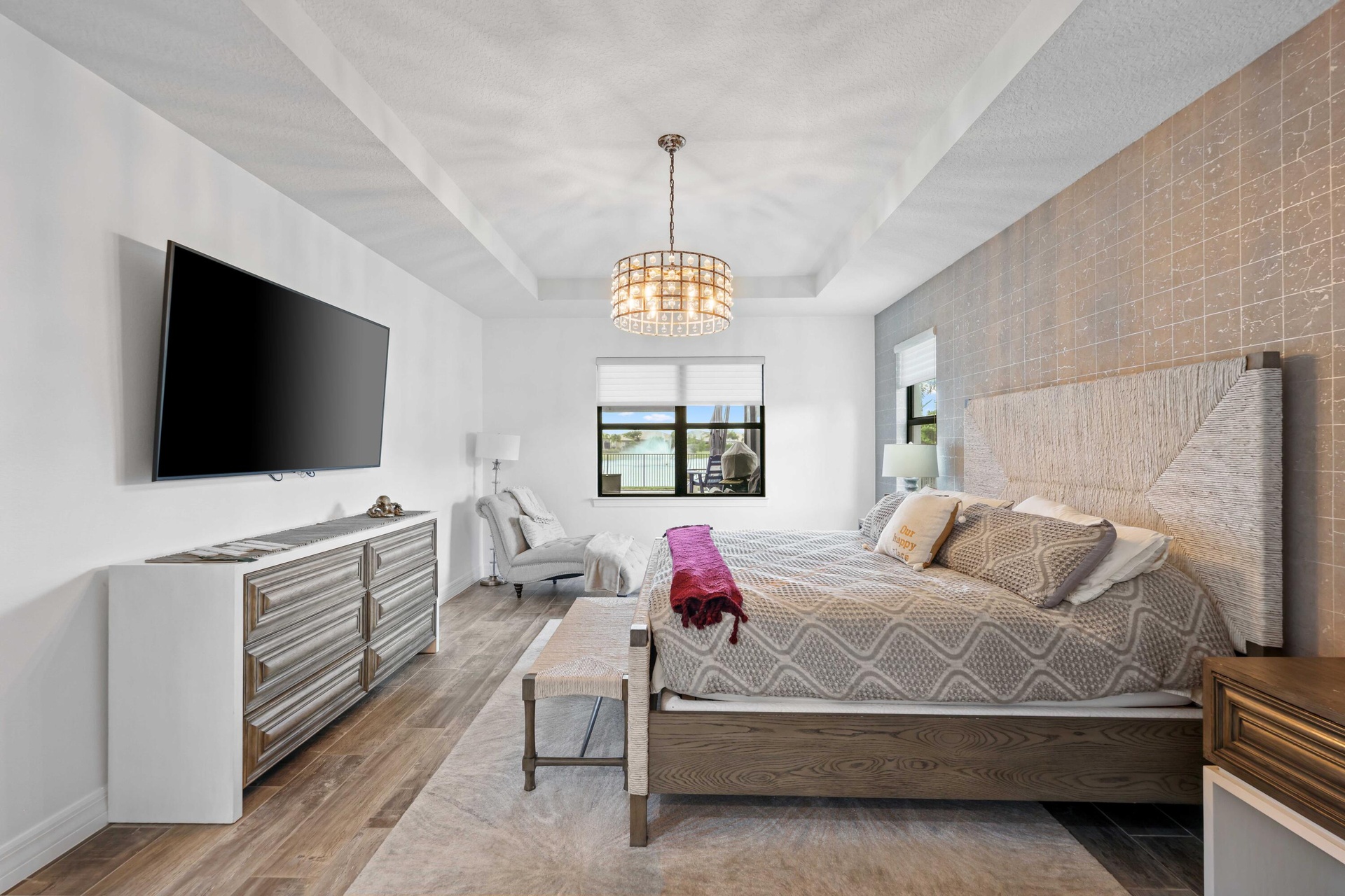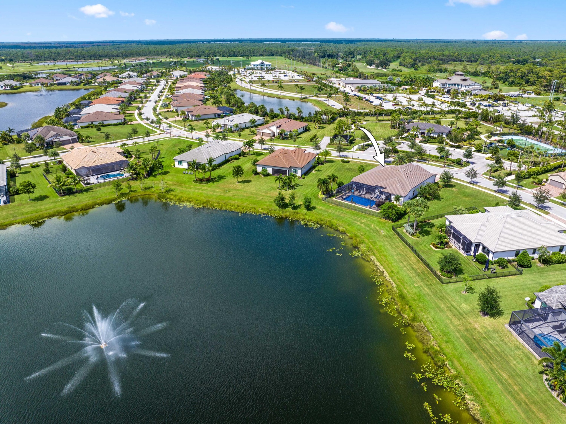 On one of the largest lots in Ancient Tree, this half acre lakefront home offers wide fountain views and a backyard built for enjoyment.
