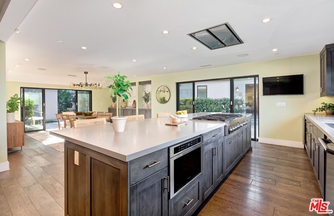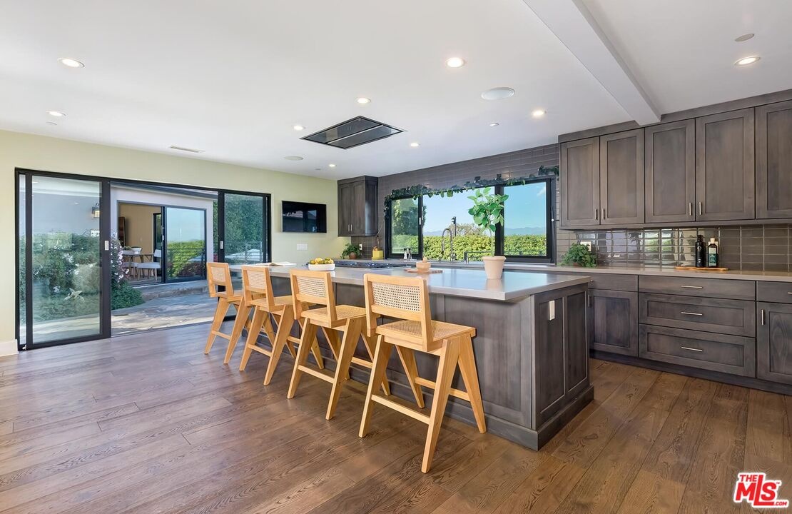 Welcome to a private gated home that combines exceptional design with smart home technology, rarely found at this price point. This is easily one of the best values currently offered in the Hollywood Hills. Built from the studs up with fire safety in mind, the home is designed with thoughtful room flow and seamless indoor-outdoor living, featuring beautiful natural light, expansive glass doors, and high-quality wide-plank wood floors.The spacious primary suite includes two closets and a spa-like bathroom with a soaking tub positioned to capture clear views of the Hollywood Sign, the Santa Monica Mountains, and Mount Baldy. Two additional guest bedrooms provide comfortable accommodations, while the detached fourth bedroom with kitchenette and bath is ideal for guests or extended family.Additional highlights include a 480-bottle wine cellar, Dolby Atmos home theater, upgraded gym, bar area, and a detached guest house. A range of tech-forward upgrades includes a Crestron smart home system with iPad controls, remote-controlled blinds, custom garage doors, fully paid solar panels, and a separate guardhouse with its own bathroom and more than 15 security cameras for added privacy and peace of mind.Thoughtful improvements such as earthquake retrofitting, new sewer lines, advanced water filtration, fire-retardant sprinklers, and instant-heat shower systems provide both comfort and efficiency, making this home a smart and secure investment.Entertain effortlessly with a saltwater heated pool, generous fire pit, built-in BBQ, retractable patio sunroof, and a 60-light landscape system that transforms the space at night. The grounds are primarily planted with long-lasting perennials, a major investment that enhances year-round beauty while reducing ongoing plant replacement costs. This hidden gem offers a sanctuary-like setting with layered landscaping, vibrant flowers, and fruit trees including avocado, guava, pomegranate, citrus, and more. The grounds are alive with butterflies, hummingbirds, and natural beauty throughout the year.Three tranquil water features, including a koi and turtle pond, a Buddha fountain, and a lush plant wall, create a peaceful and inspiring outdoor experience. Located just moments from Runyon Canyon's scenic trails and views of the Hollywood Sign, this unique home offers the perfect balance of privacy, convenience, and lifestyle. Luxury, location, and comfort all come together in a rare offering that truly stands out in today's market.