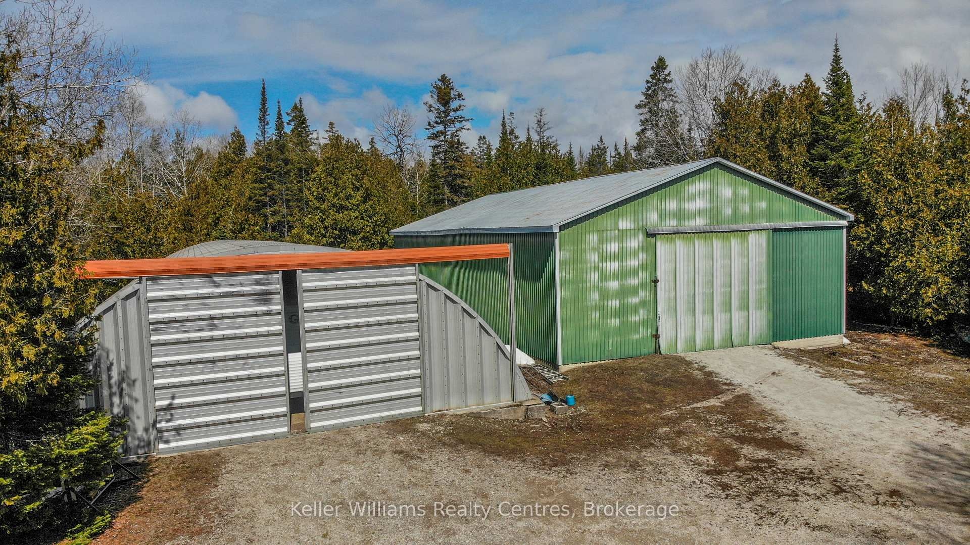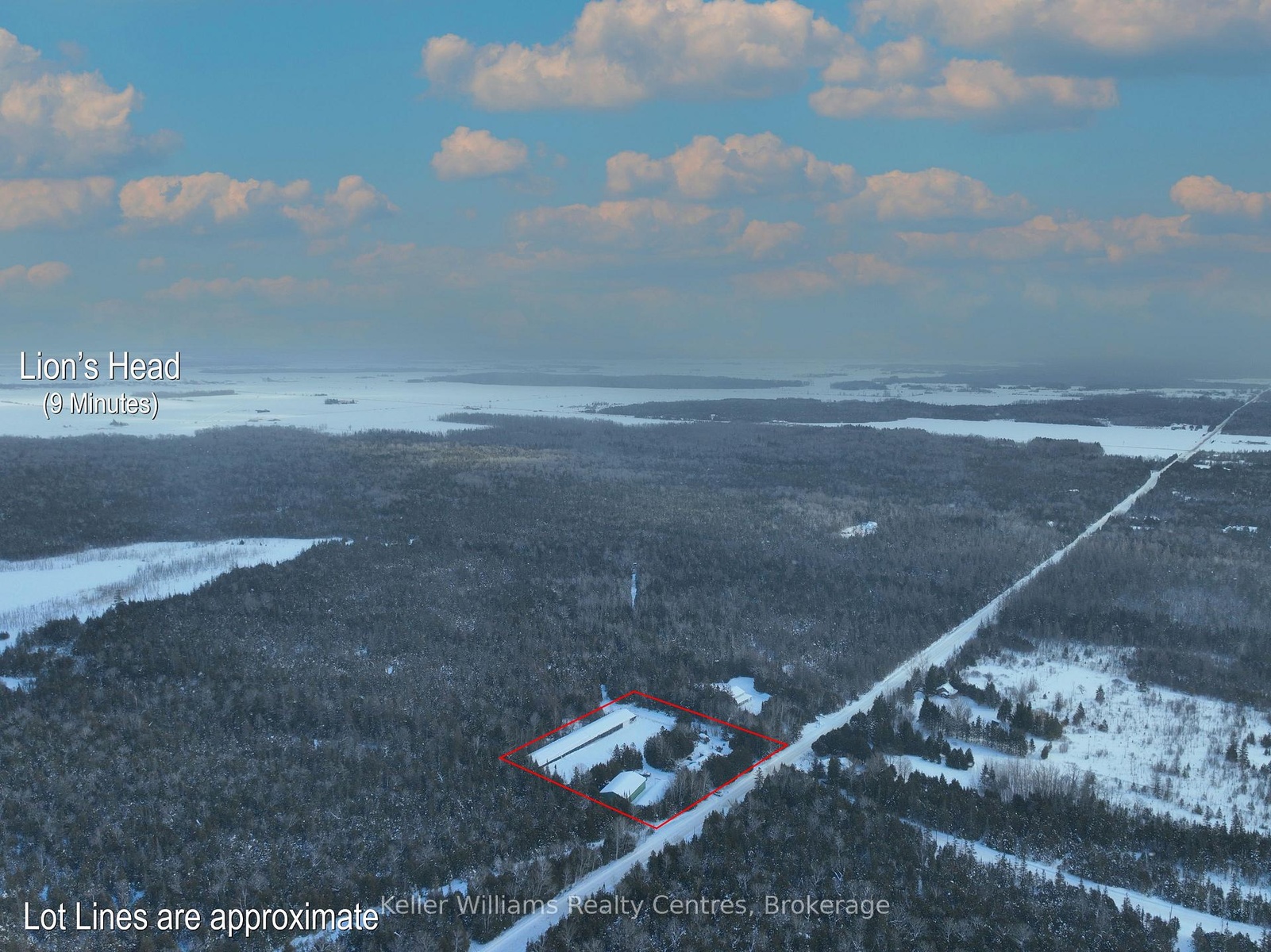 Introducing a truly unique offering that combines comfortable residential living with an established marine storage operation. Set in a peaceful Stokes Bay just minutes from Lions Head and close to Black Creek Provincial Park (Big Sandy Beach), this property delivers both lifestyle appeal and exceptional business potential, all near the warm waters of Lake Huron. The well-maintained 4-bedroom, 2-bathroom bungalow offers practical single-level living designed for ease and accessibility. Bringing warmth, ambiance, and flexible heating, this Ontario home features two propane fireplaces that elevate both everyday living and entertaining. Generously sized bedrooms provide flexibility for family living, guest accommodations, or conversion into a fitness room or creative space. Two bright and inviting living areas create the perfect setting for gatherings or quiet evenings at home. A dedicated office with its own separate entrance offers a professional workspace ideal for managing on-site operations or working remotely. Surrounding the home, thoughtfully landscaped grounds feature low-maintenance gardens, a tranquil pond, and a charming gazebo-an inviting spot to relax and enjoy the natural surroundings. What truly sets this property apart is the impressive marine infrastructure. Three substantial storage buildings-measuring 64' x 40', 80' x 40', and an expansive 244' x 40'-provide extensive capacity for boat storage, and equipment. Whether expanding an existing marine enterprise, launching a new venture, or simply securing dependable storage solutions, the scale and versatility of these facilities present significant passive income potential. This is a rare opportunity to secure a property that seamlessly blends home, business, and the sought-after lifestyle of the Bruce Peninsula.